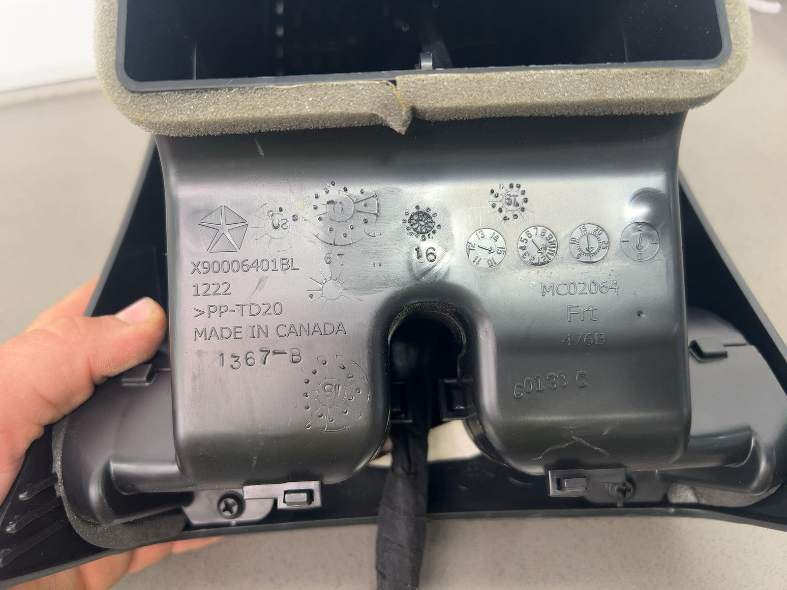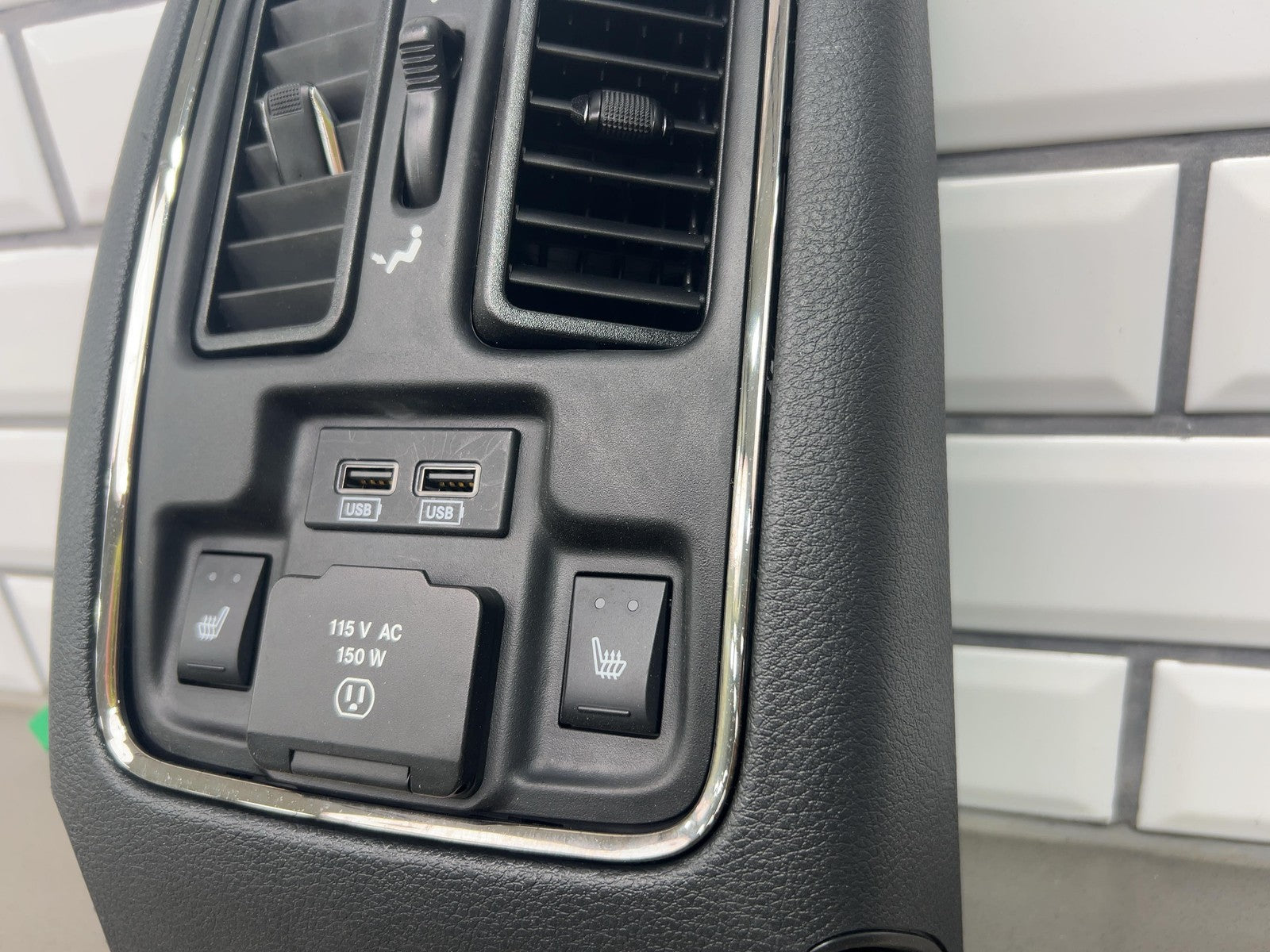 Floor Console Rear Trim, Black (x9), Rear Seat Heater Switches, Clean Lettering, Mild Scuffs/scratches