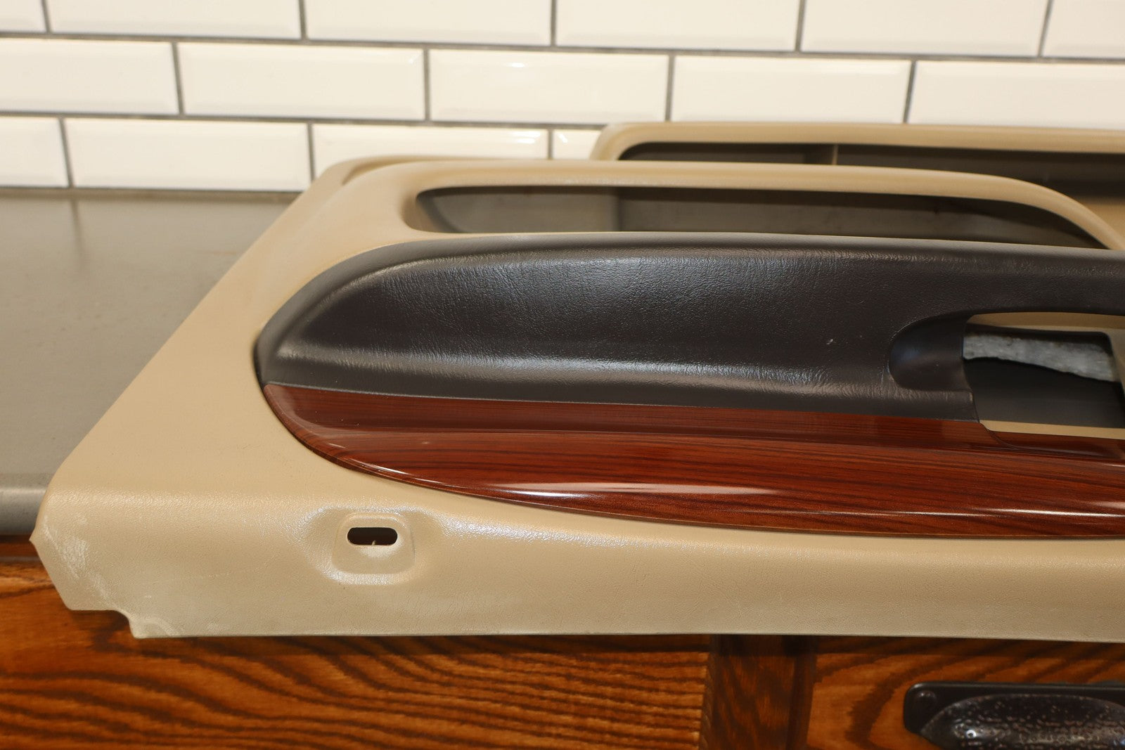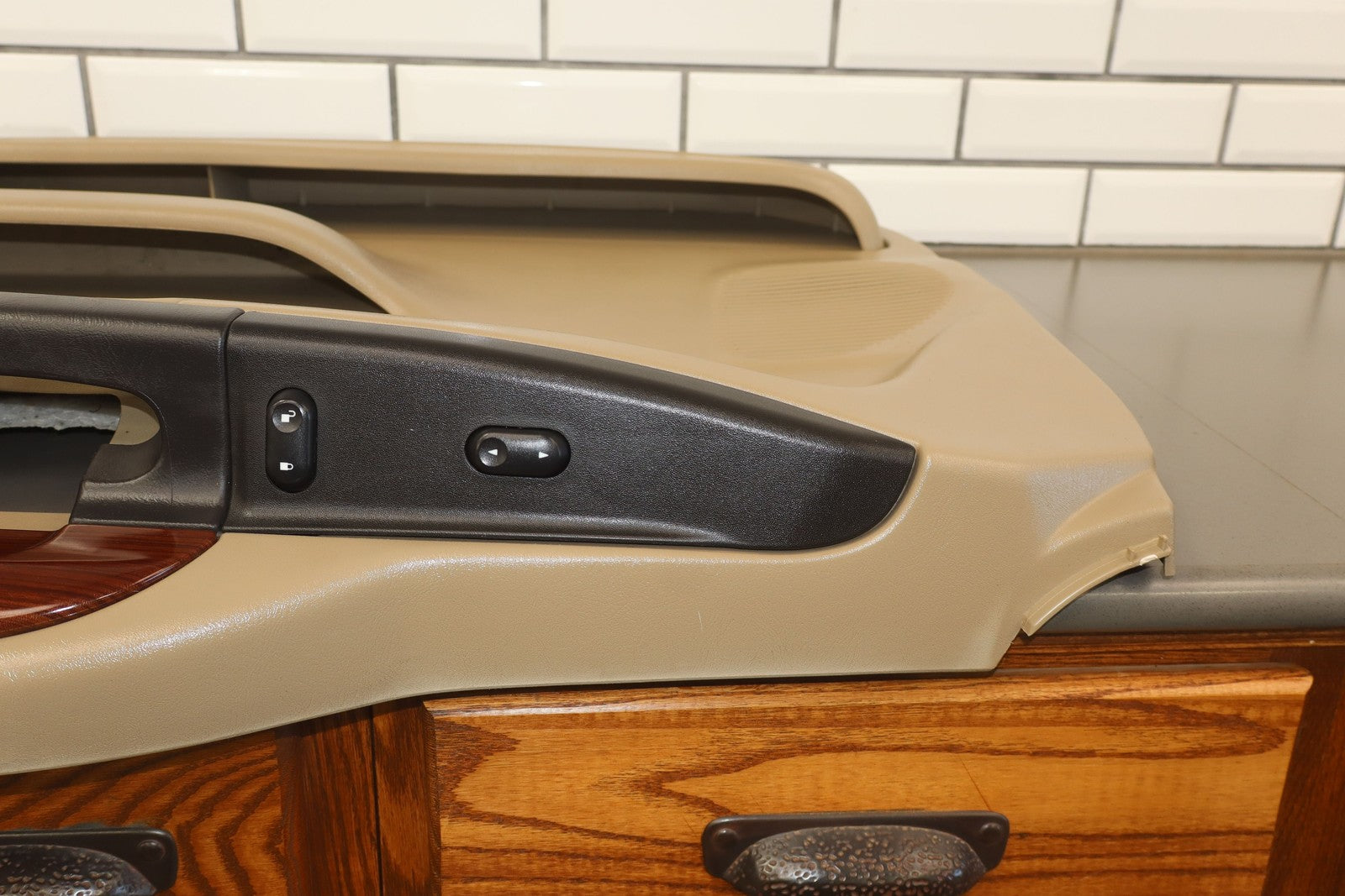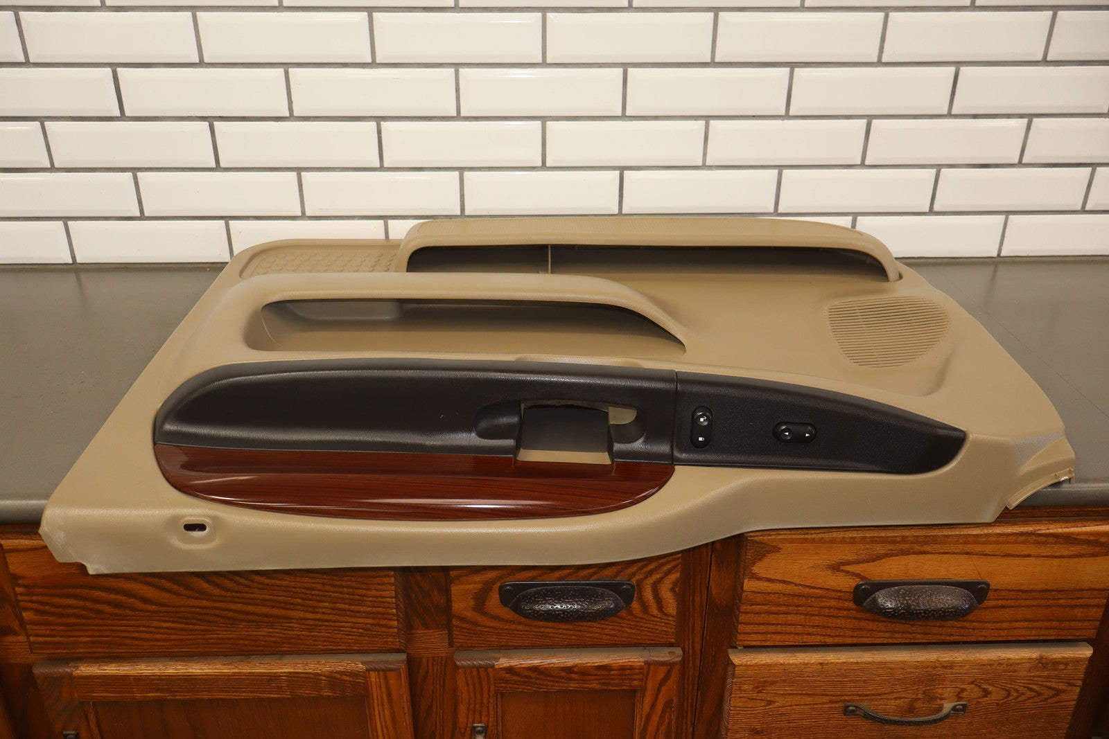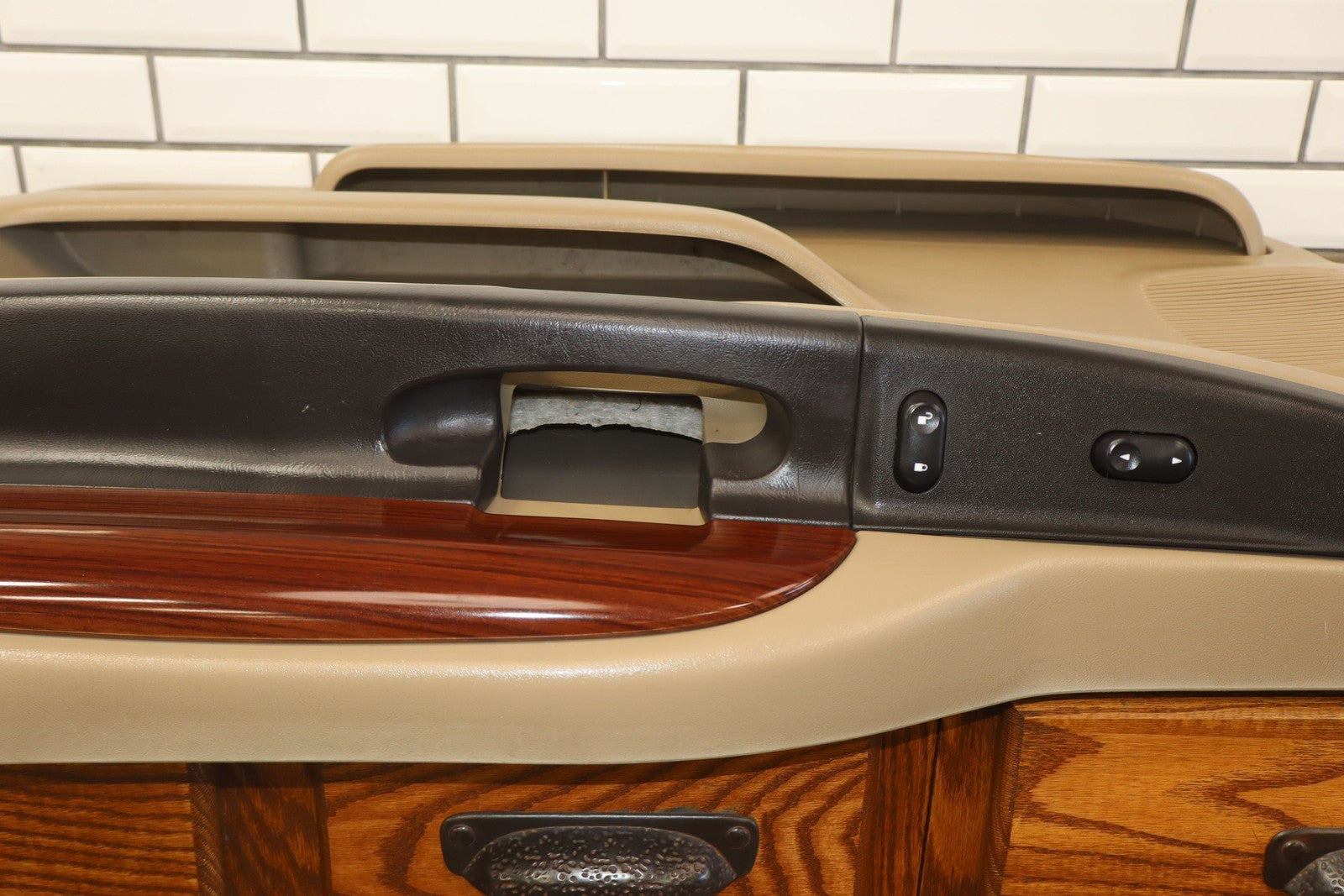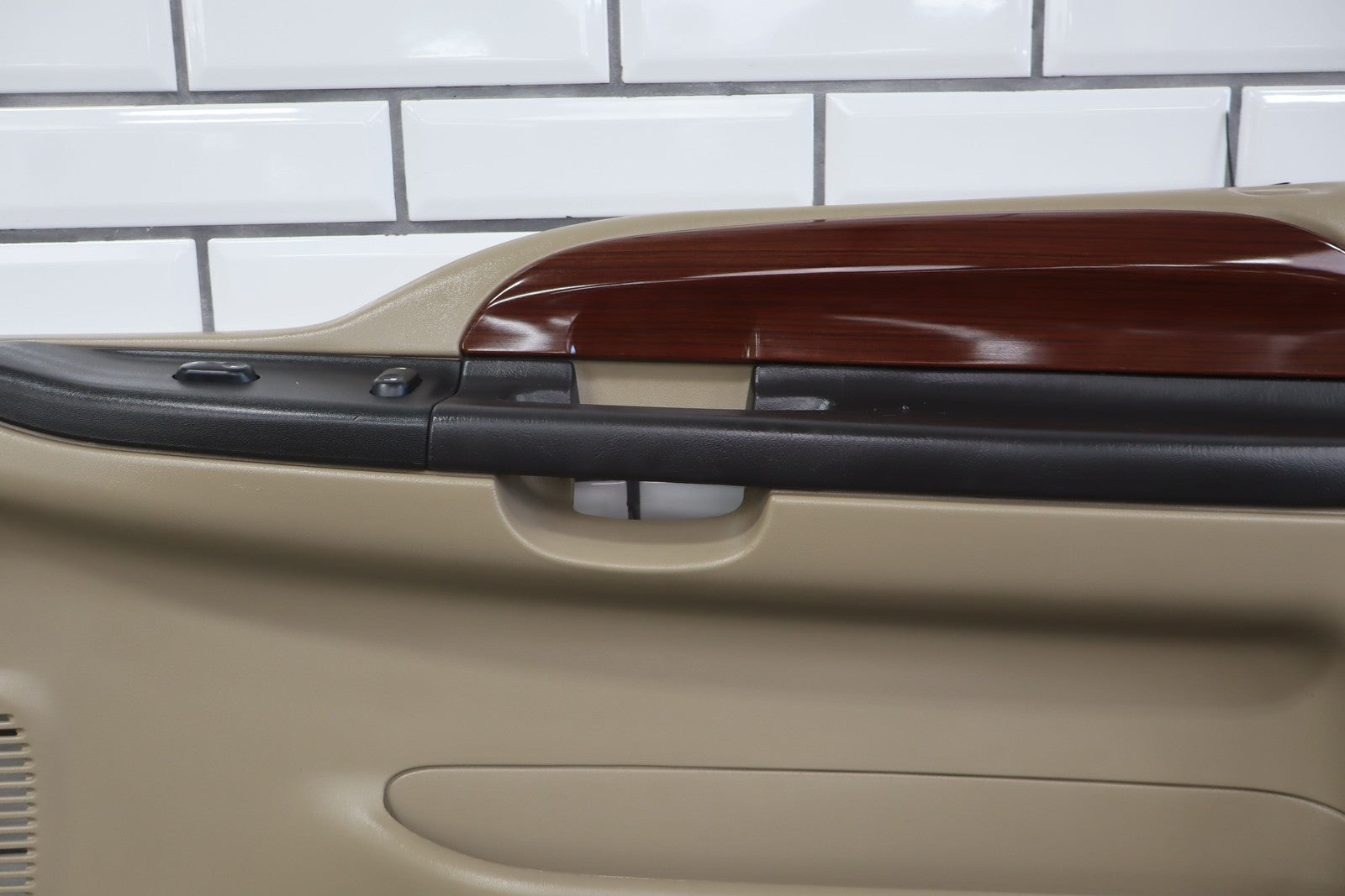 Rh Front (power), Tan (8h) W/woodgrain, Includes Window Switch, Mild Fade, Light Signs Of Wear