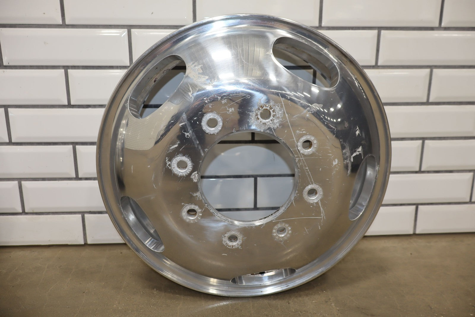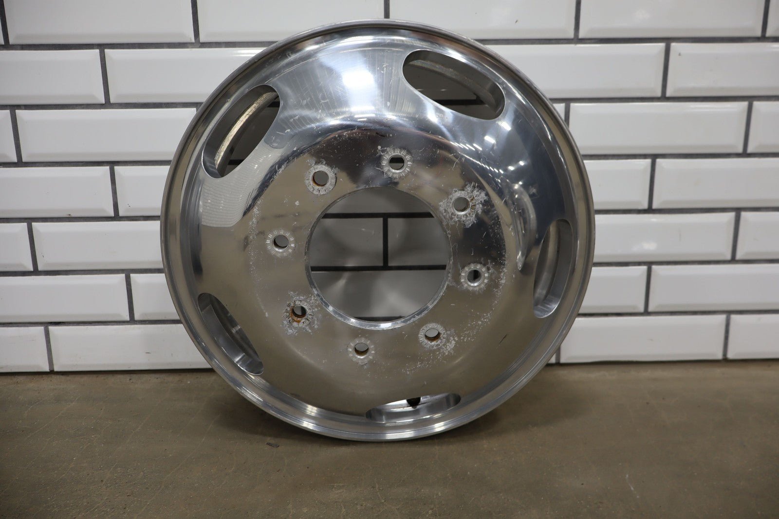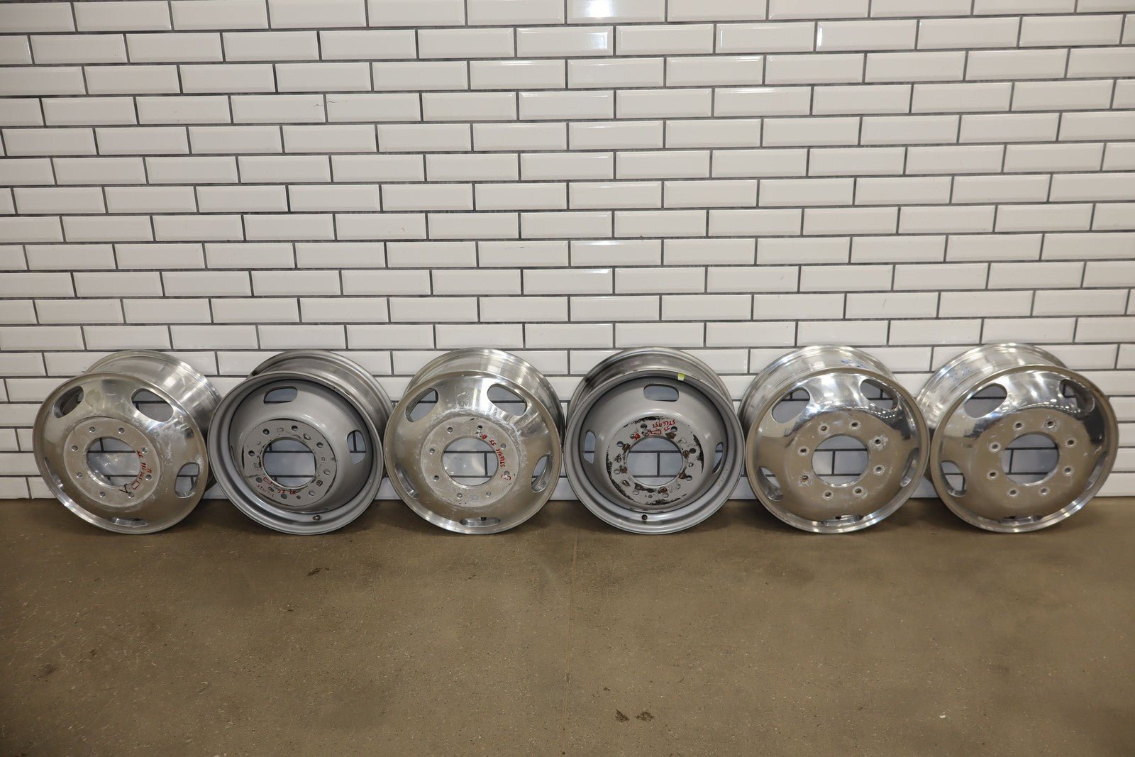 Set Of 6 Ford Dually Wheels, 4 Aluminum-2 Steel(all 17x6.5), Scuffs/scratches/knicks, All Spun True