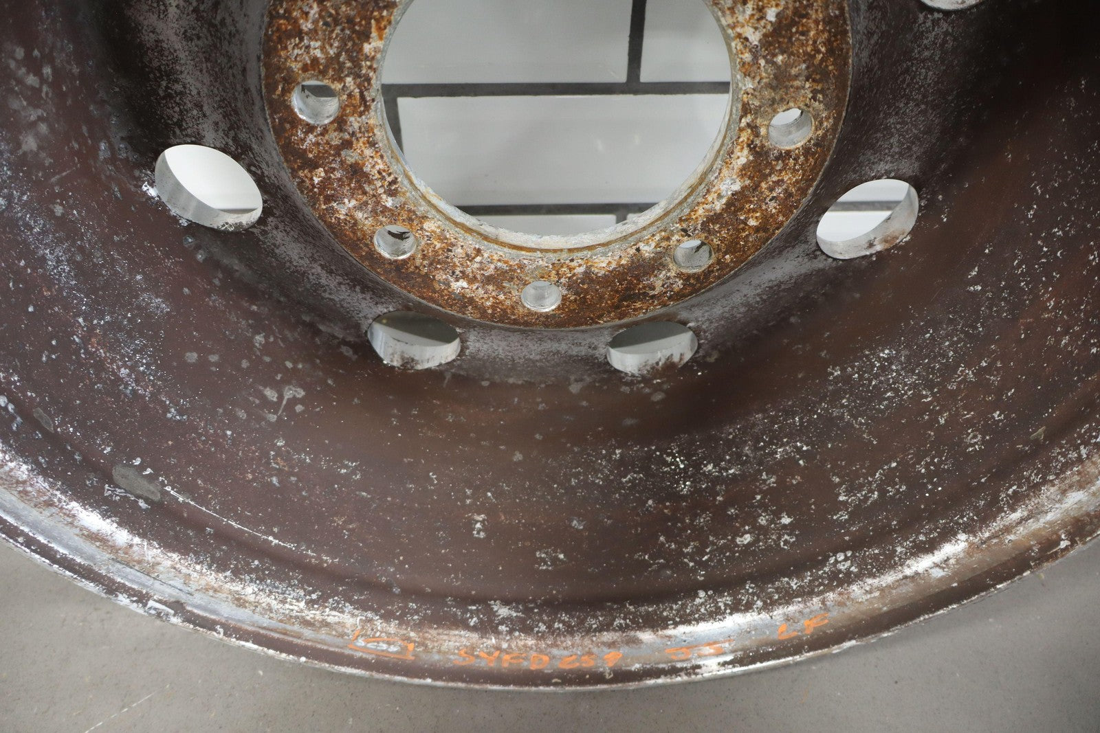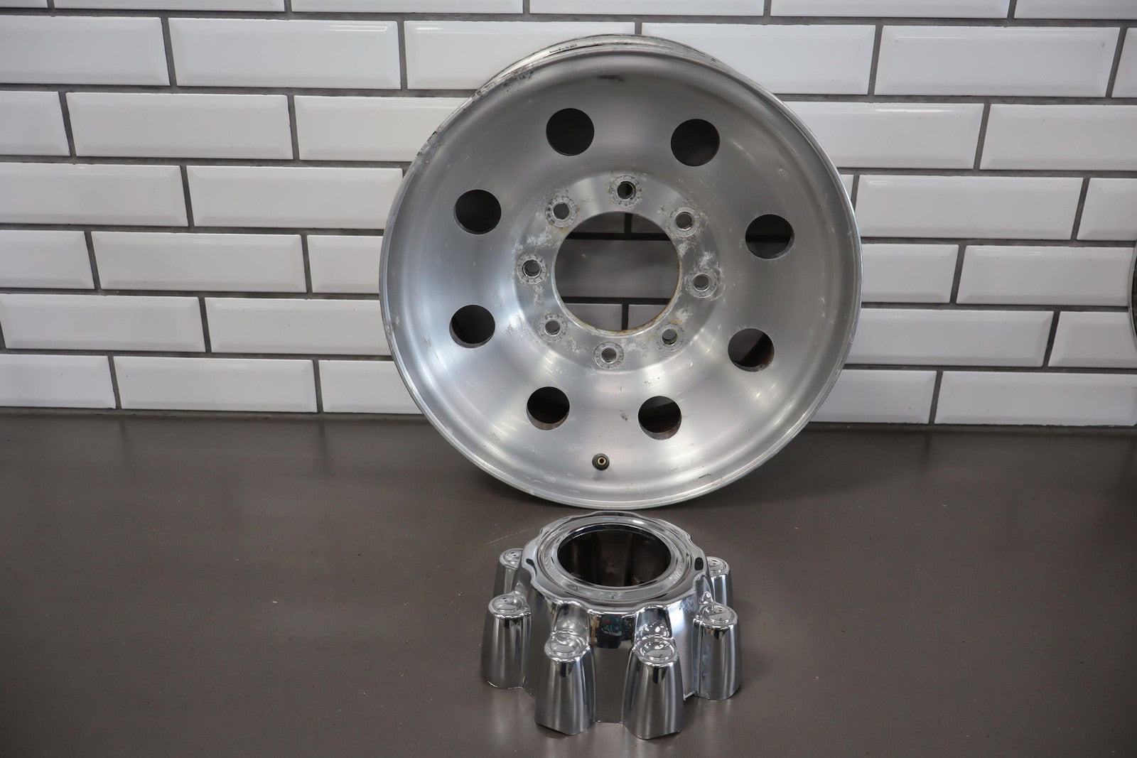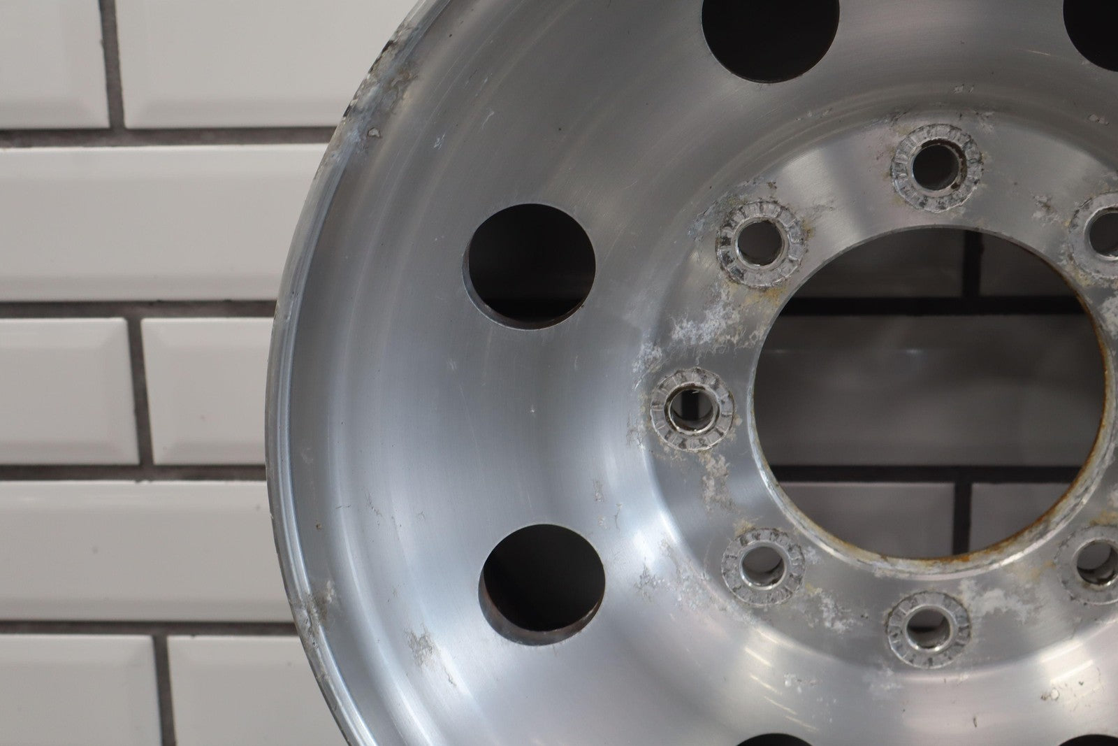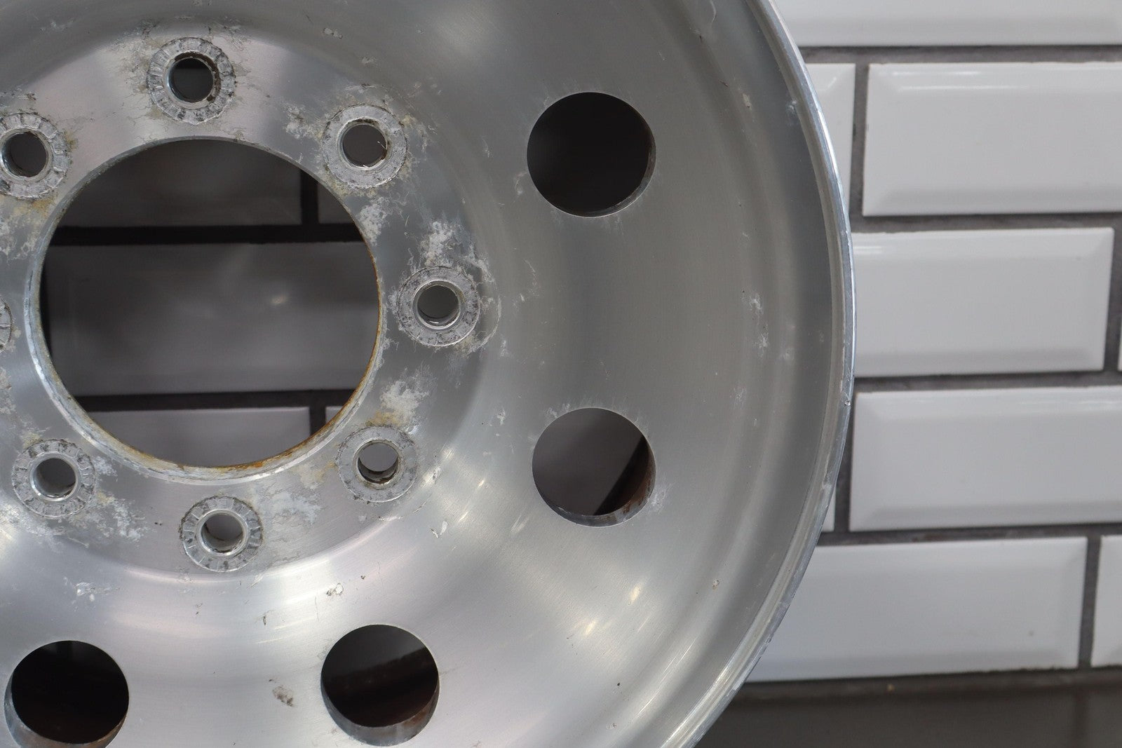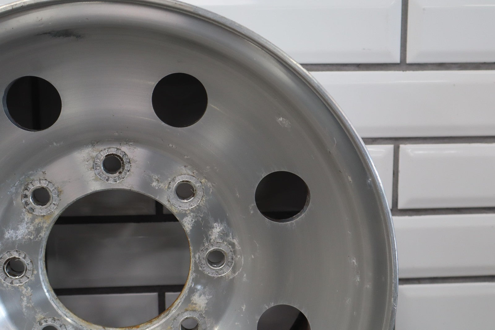 Lh Front, 16x7 8 Round Hole Wheel (satin), Decent Corrosion To Face, Spun True