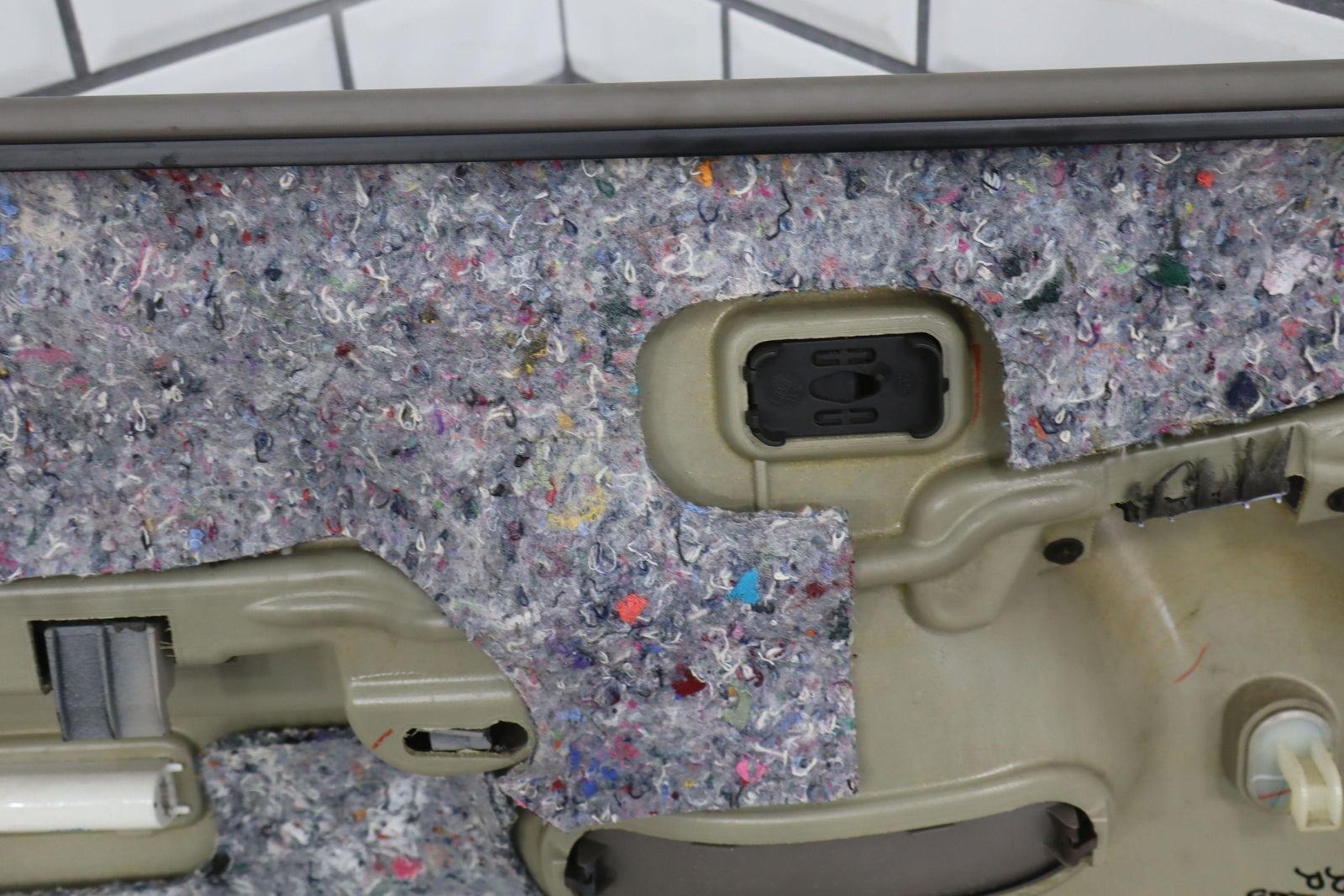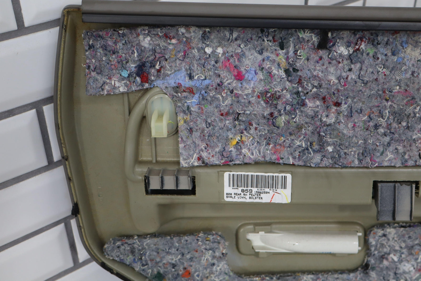 Important notes: Rh Rear Door Trim Panel, Pewter/shale(922)sold Less Door Switch, Broken Tab(marked Red)