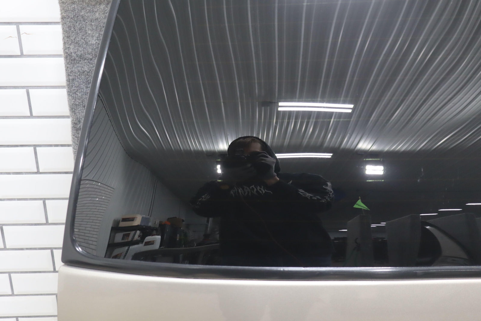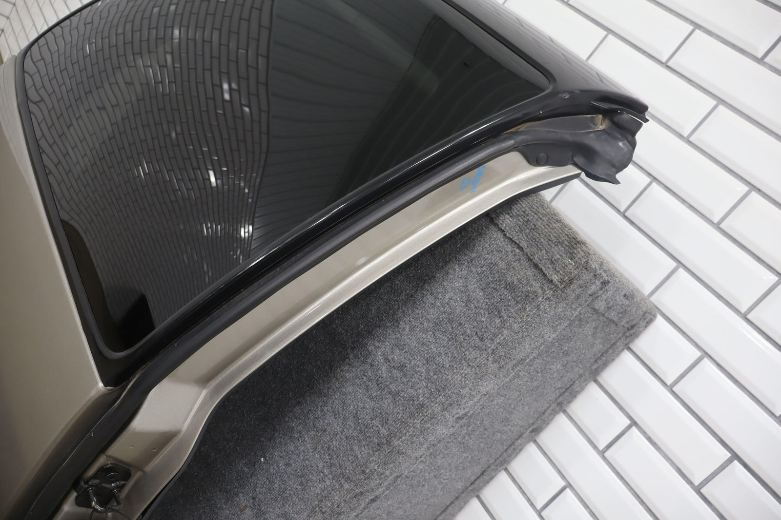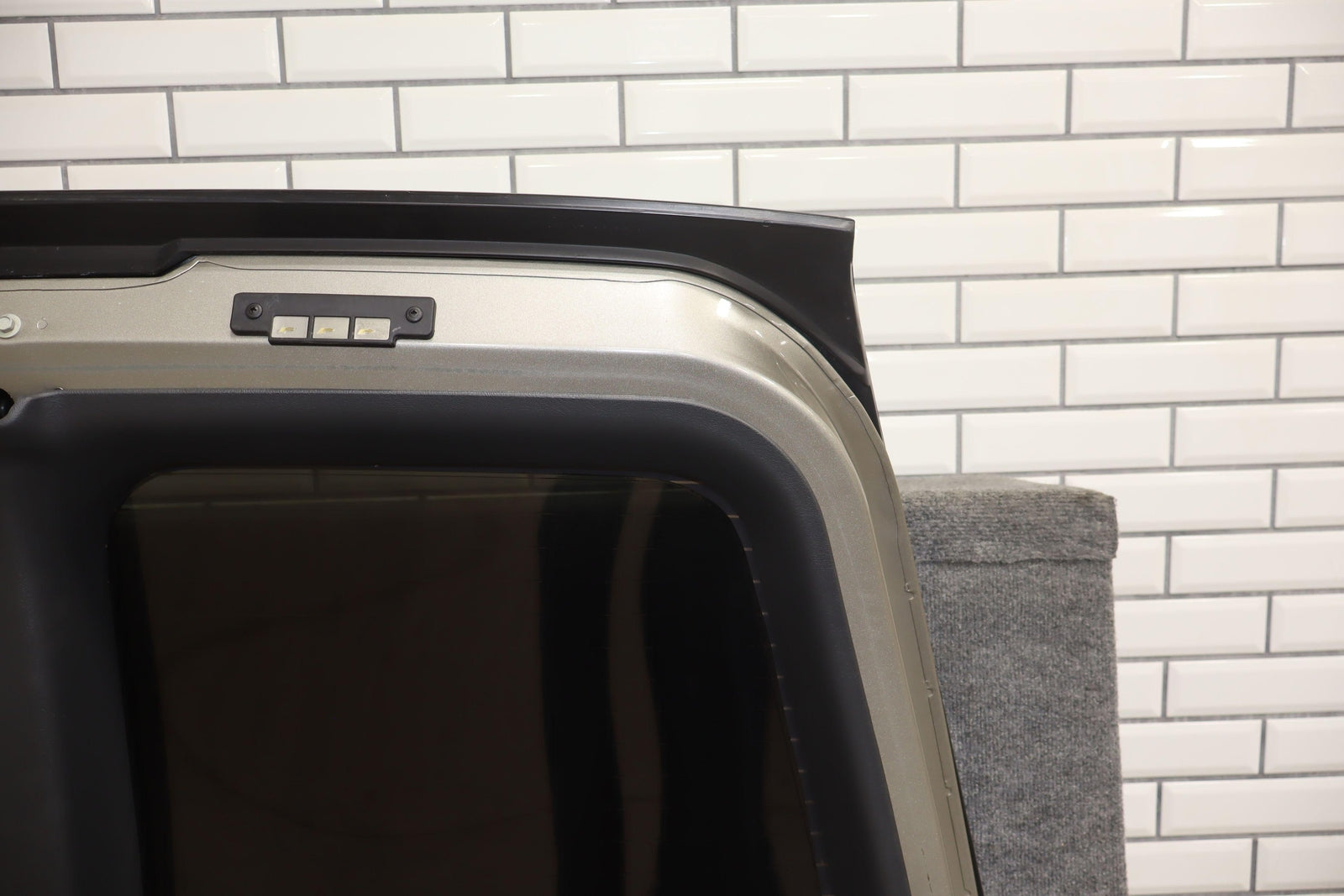 Lh Barn Door, Pewter Metallic (11u), Privacy Glass, 1 Visible Knick (yellow)