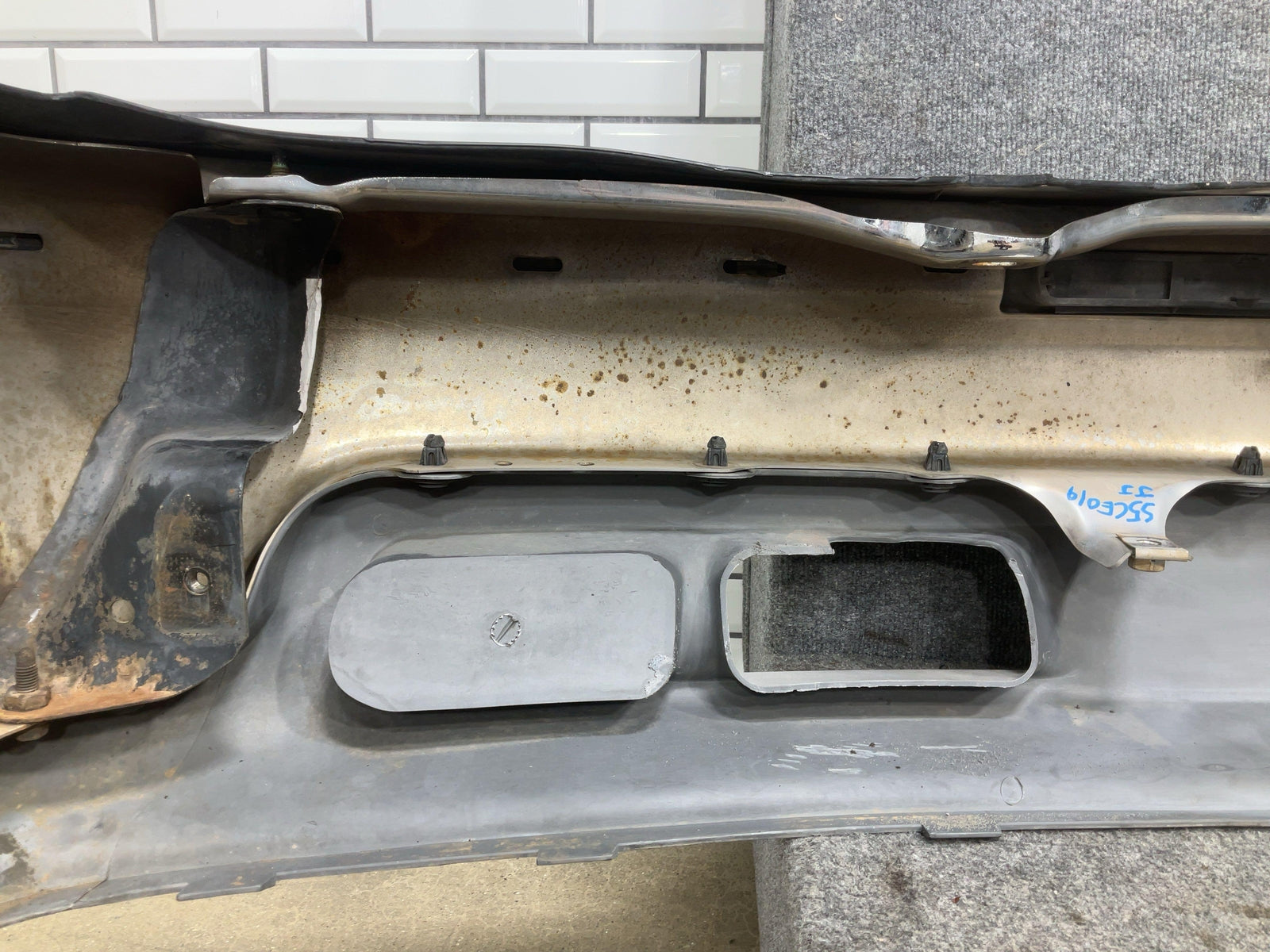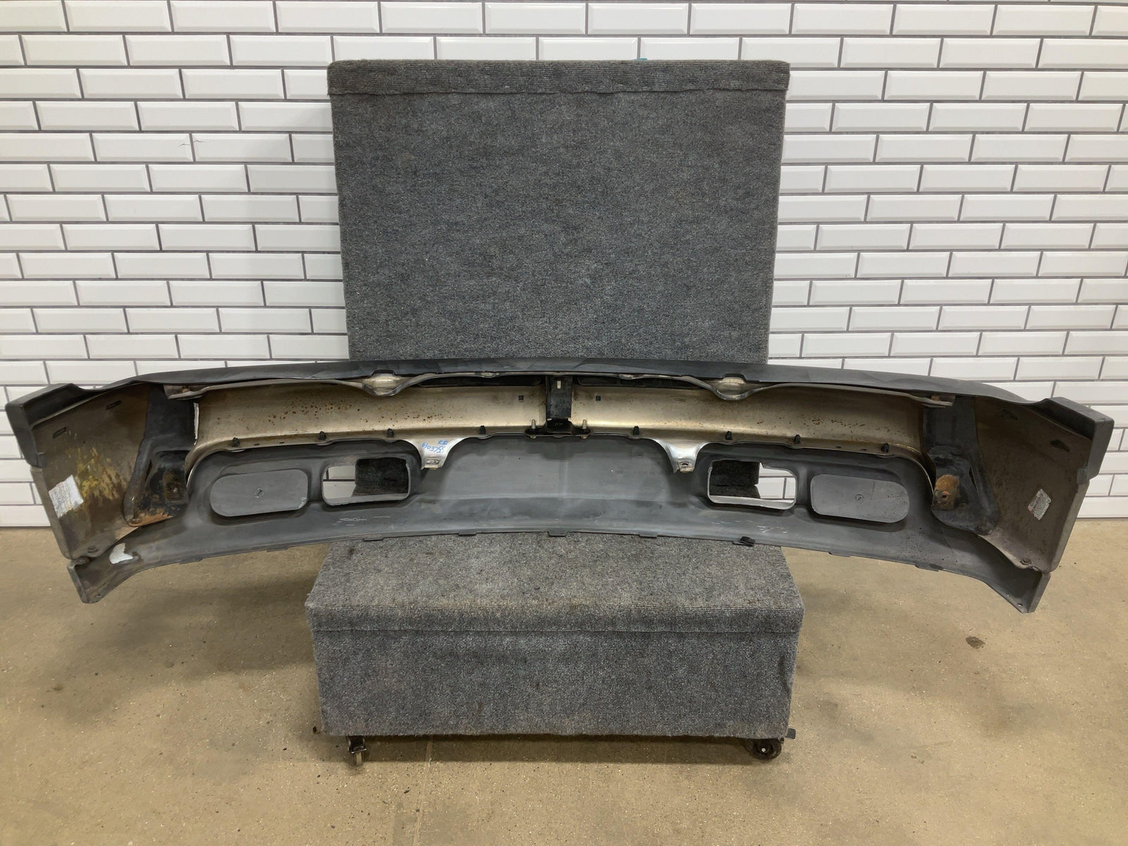 Chrome Front Bumper W/textured Cap, Heavy Scratches Throughout, Decent Sun Fade, Upper Trim Lifting