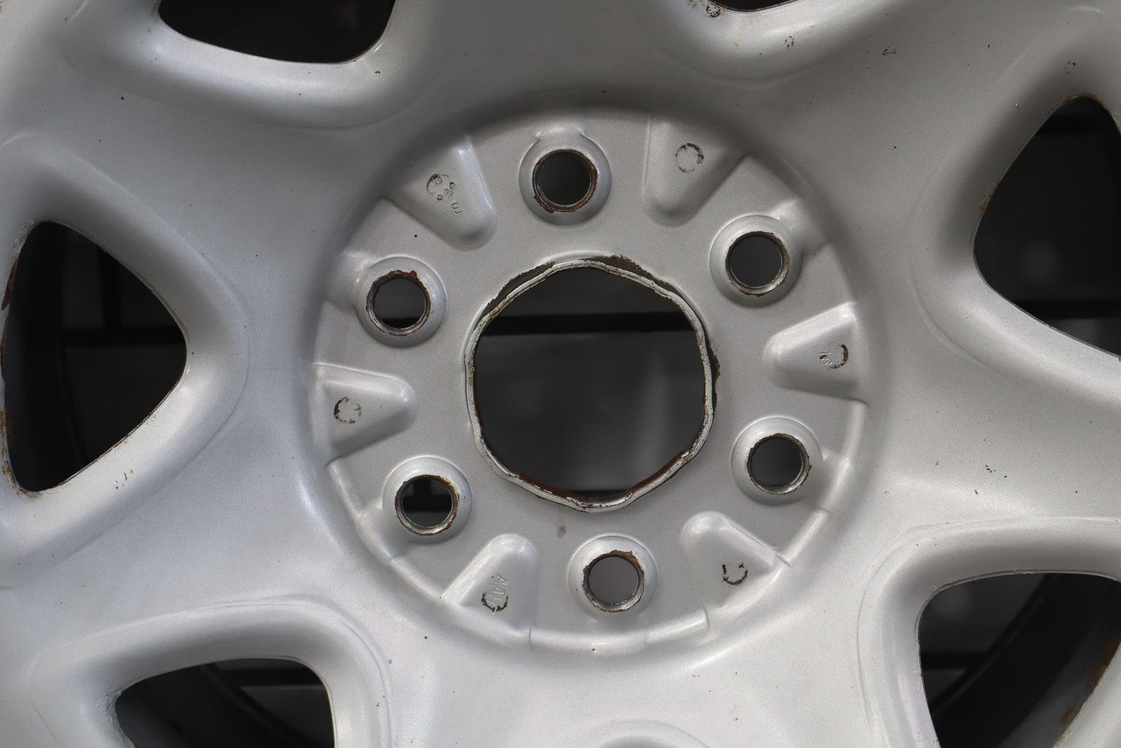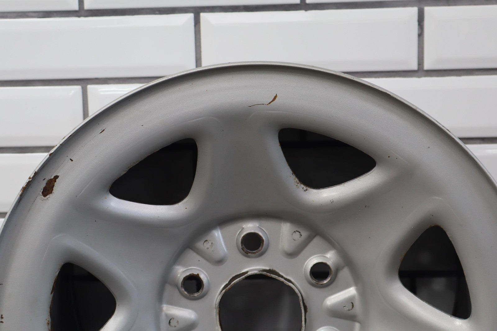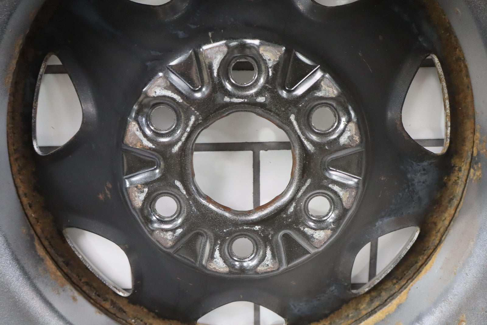 Rh Rear, 17x8 7 Spoke Painted Steel Wheel (opt Rd6), Includes Gmc Center Cap, Decent Surface Rust In Spots-in Barrel, Spun True