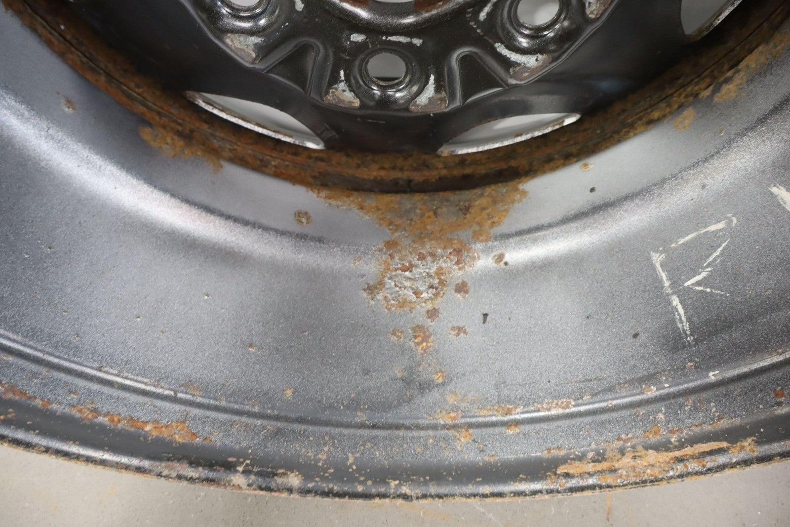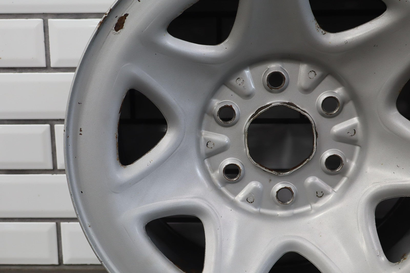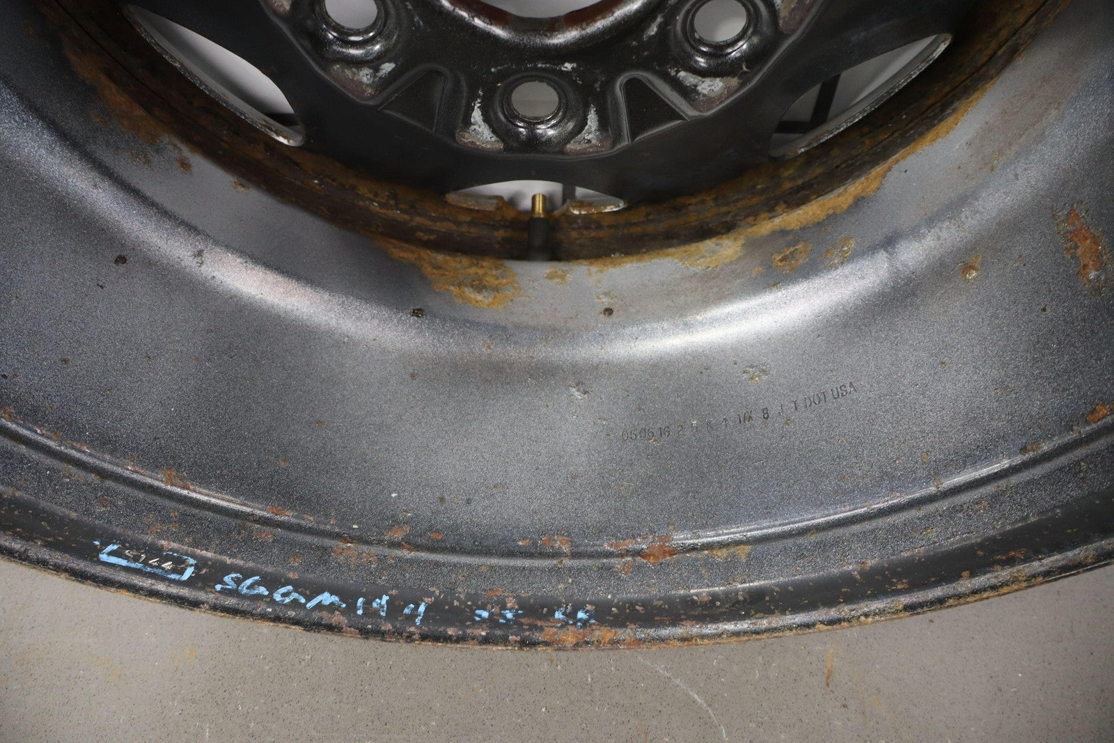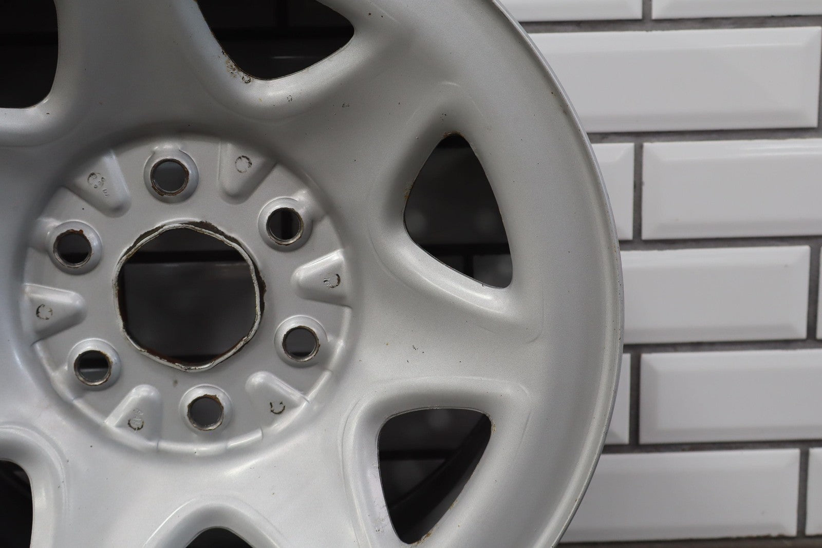 Rh Rear, 17x8 7 Spoke Painted Steel Wheel (opt Rd6), Includes Gmc Center Cap, Decent Surface Rust In Spots-in Barrel, Spun True