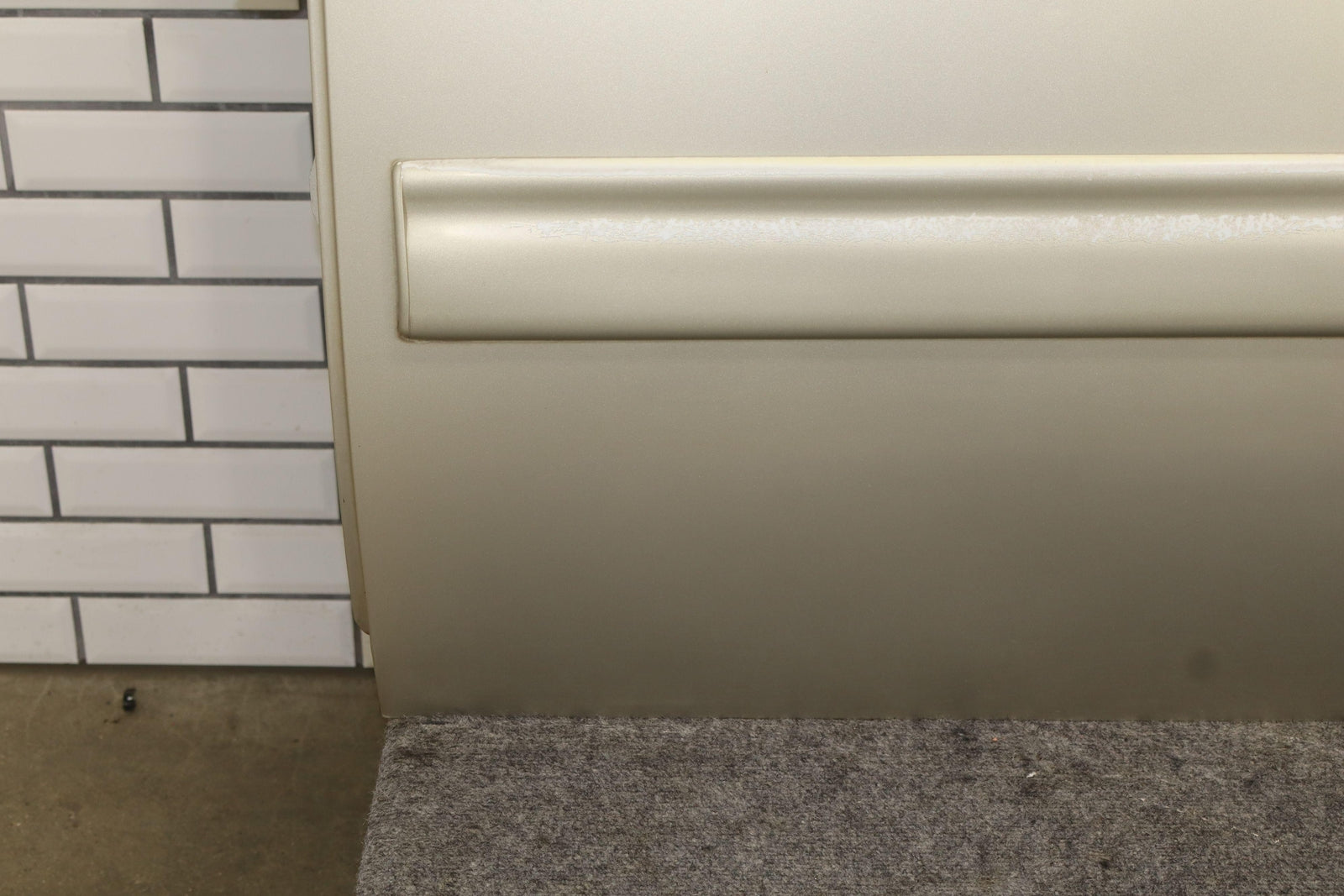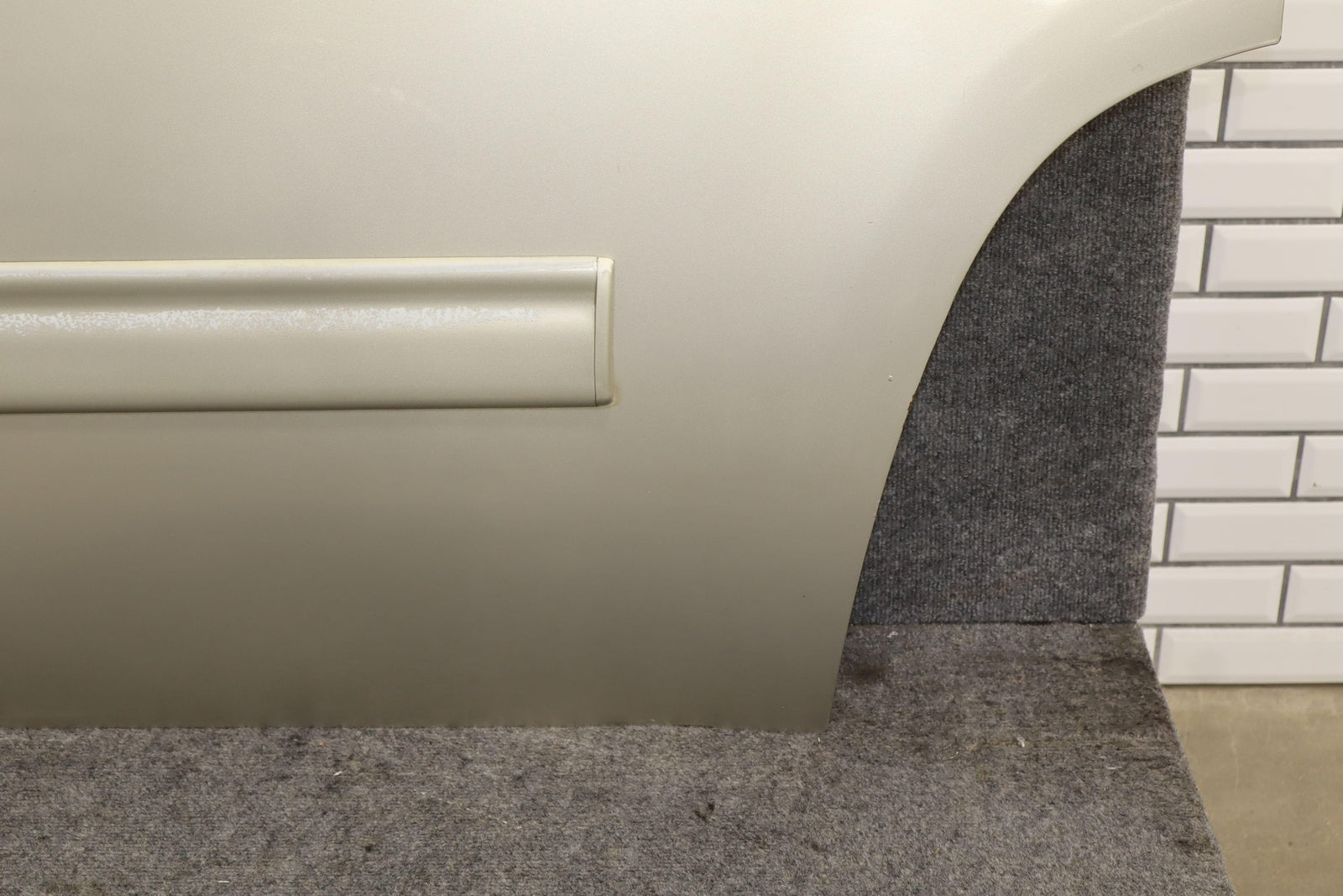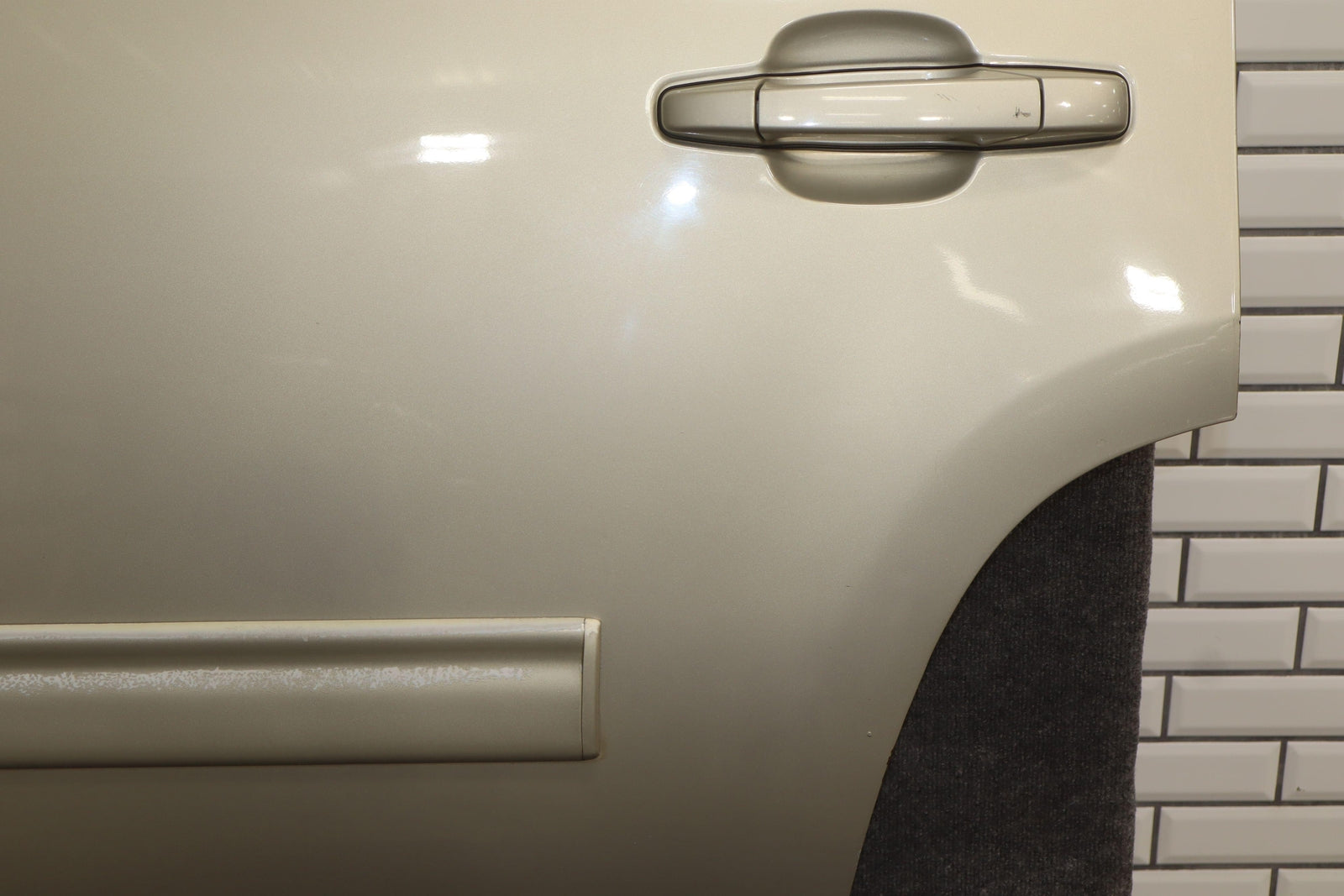 Lh Rear, Champagne Silver Metallic (gwt), Sold Less Trim Panel, Sun Faded Moulding, Multiple Chips Around Wheel Arch
