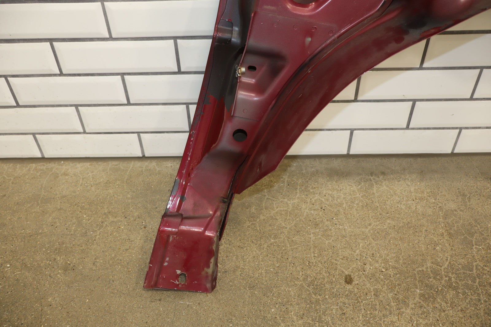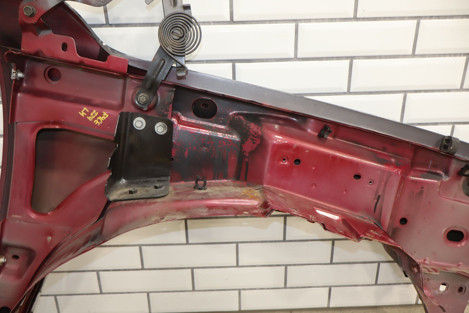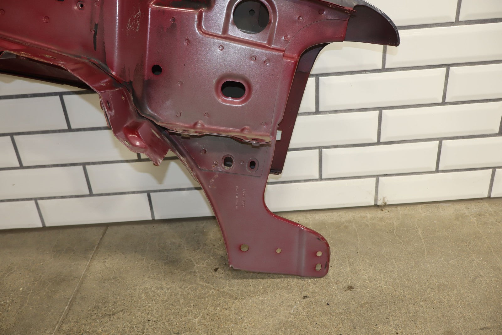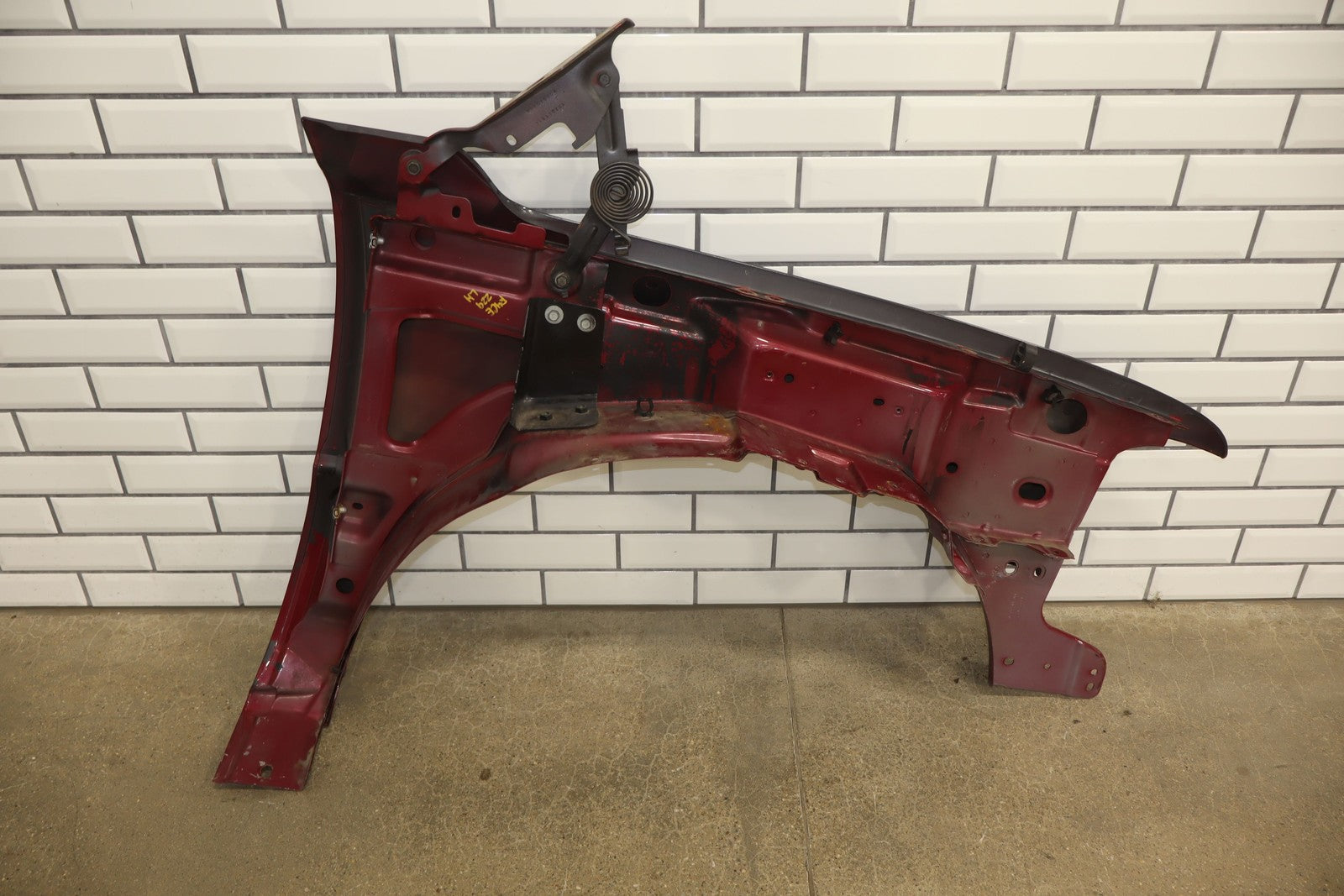 Important notes: Lh Front Fender W/ Flare, Repainted Blue, Includes Hood Hinges, Some Weathering To Underside, Mounted Solid