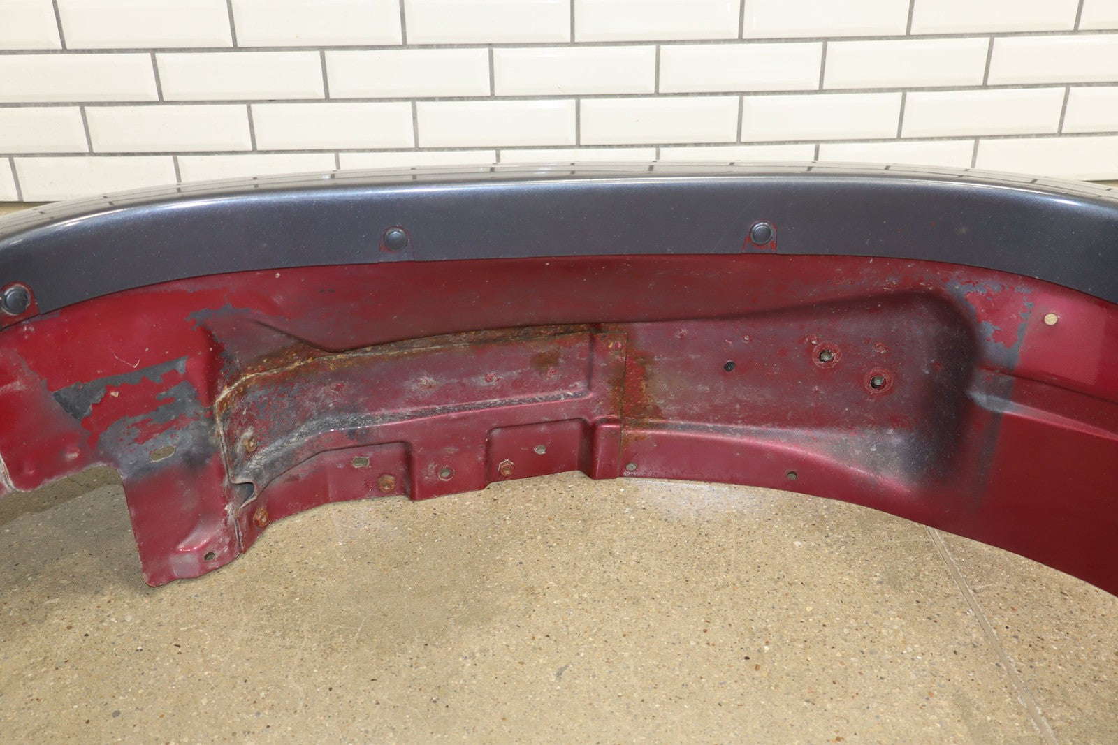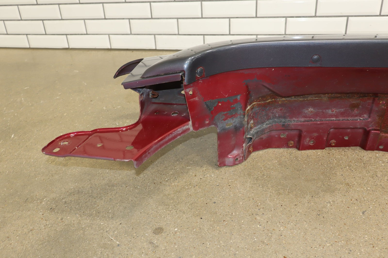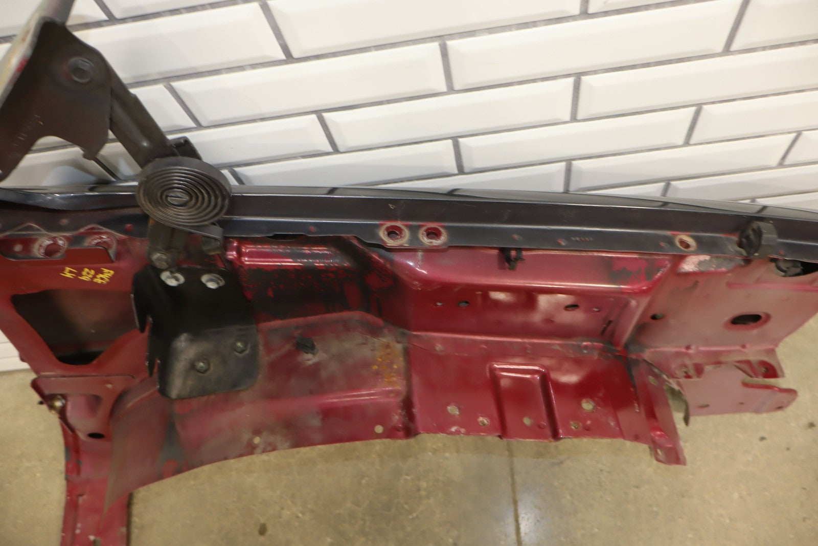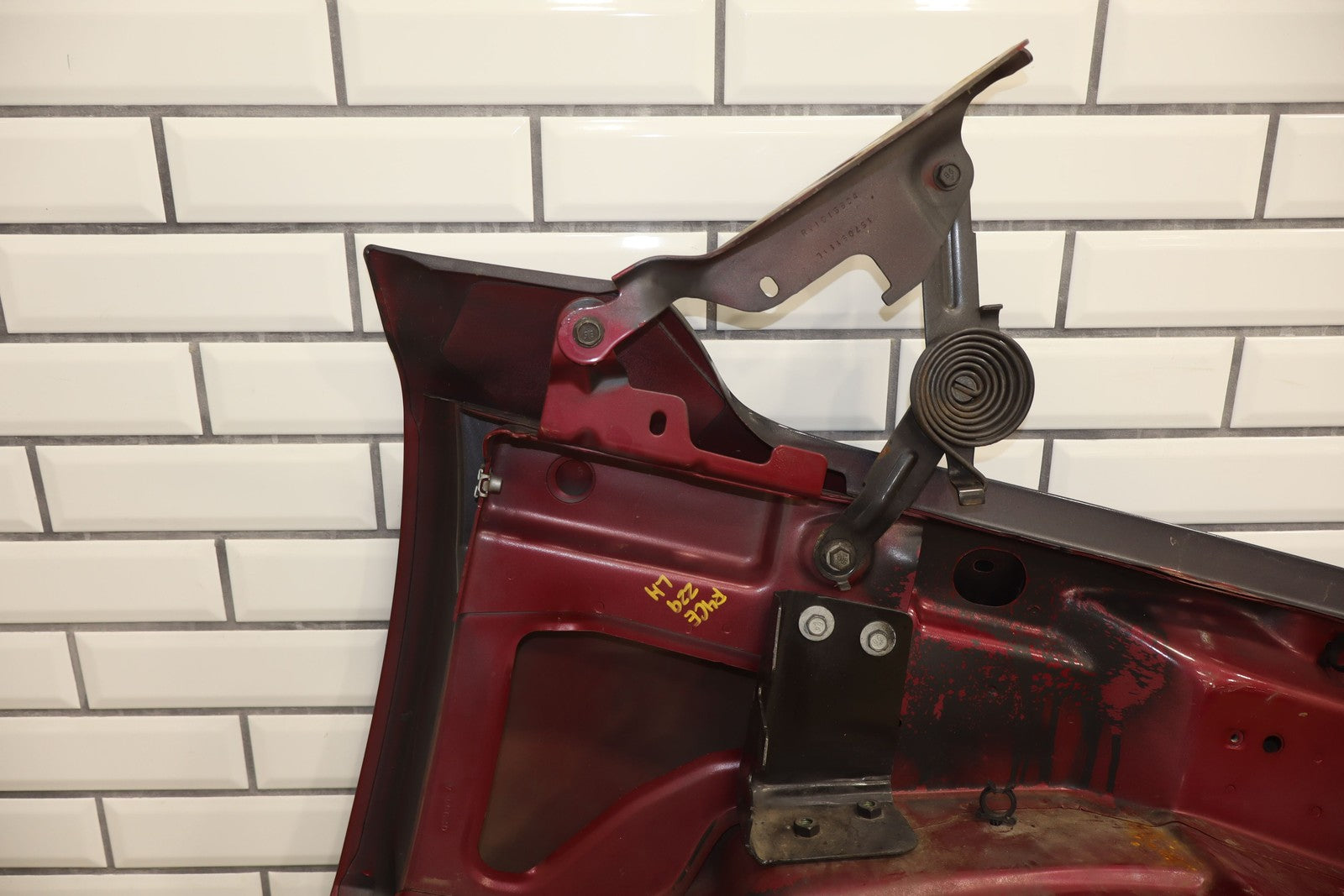 Important notes: Lh Front Fender W/ Flare, Repainted Blue, Includes Hood Hinges, Some Weathering To Underside, Mounted Solid