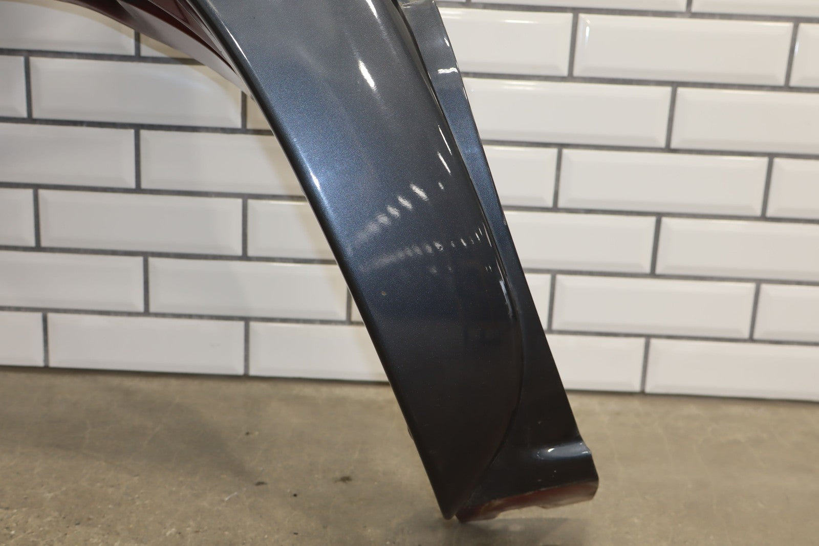 Lh Front Fender W/ Flare, Repainted Blue, Includes Hood Hinges, Some Weathering To Underside, Mounted Solid