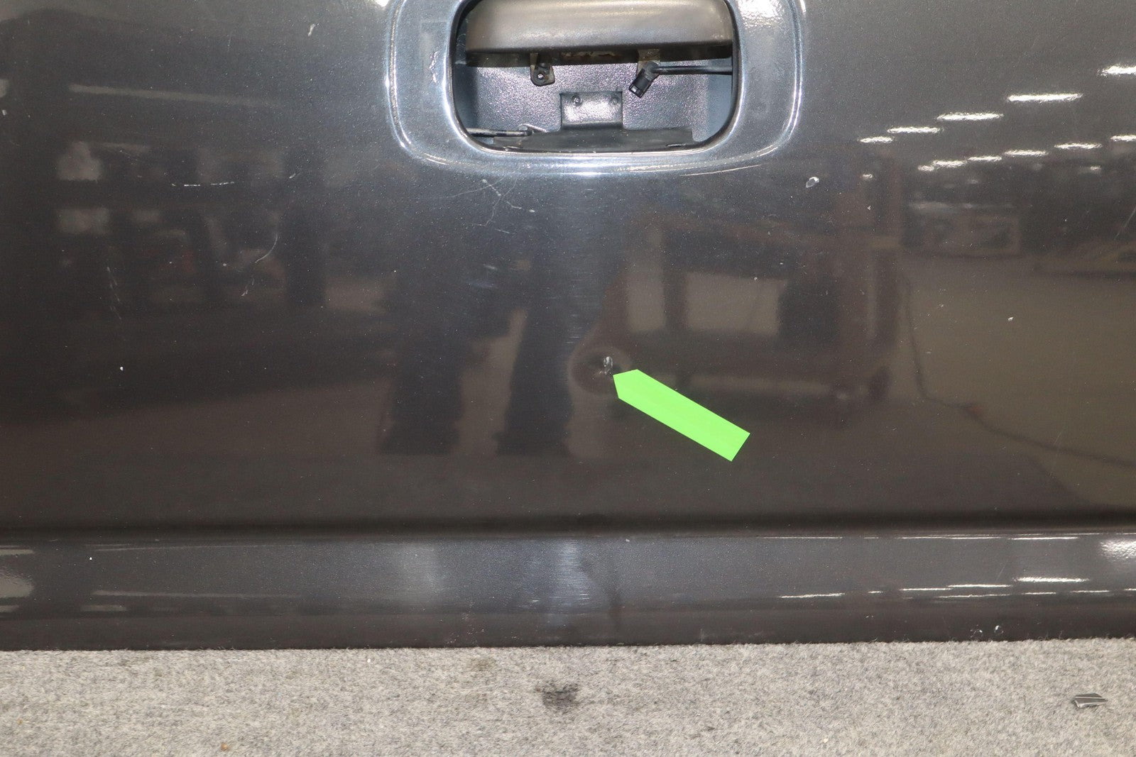 Dark Gray Metallic (62u), Couple Decent Scratches To Face, Missing Handle Trim, Light Fade/staining To Spoiler, Dent (green)