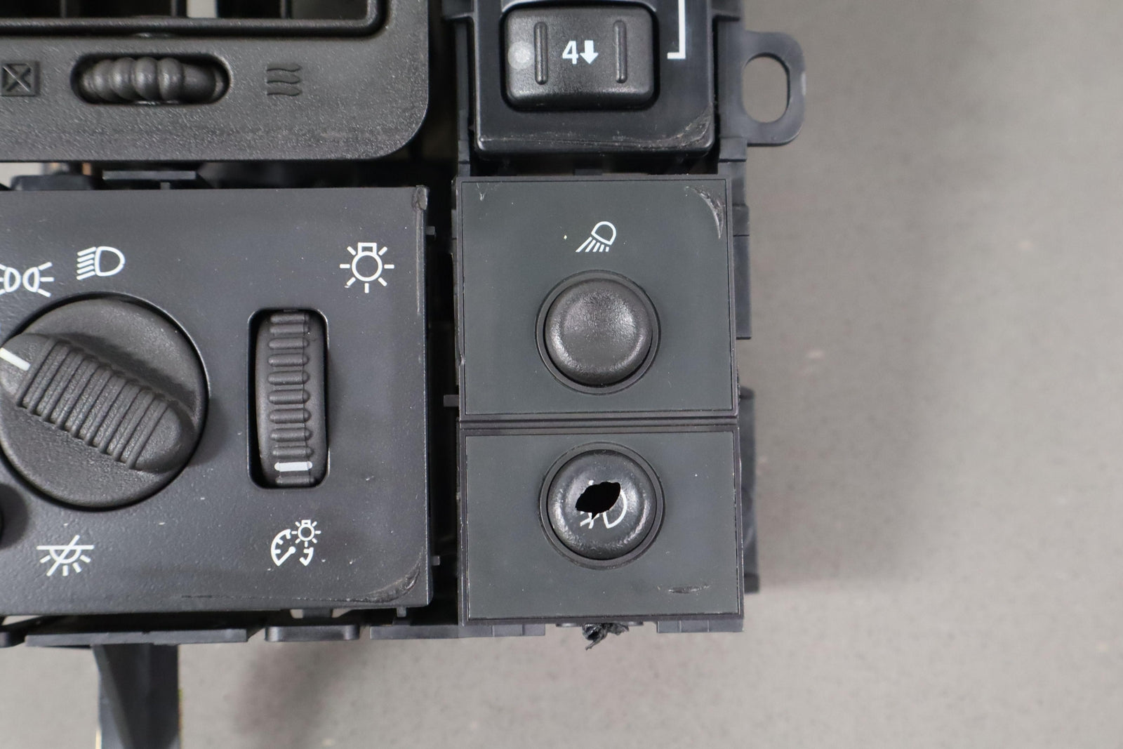 Important notes: Dash Mounted Headlight Switc, Includes Transfer Case-cargo-fog Light Switches, Clean Lettering, Works Well, Broken Fog Button
