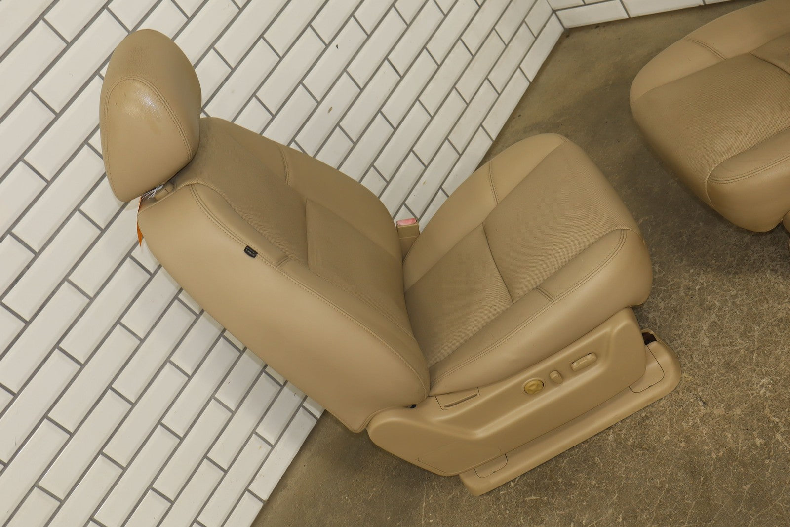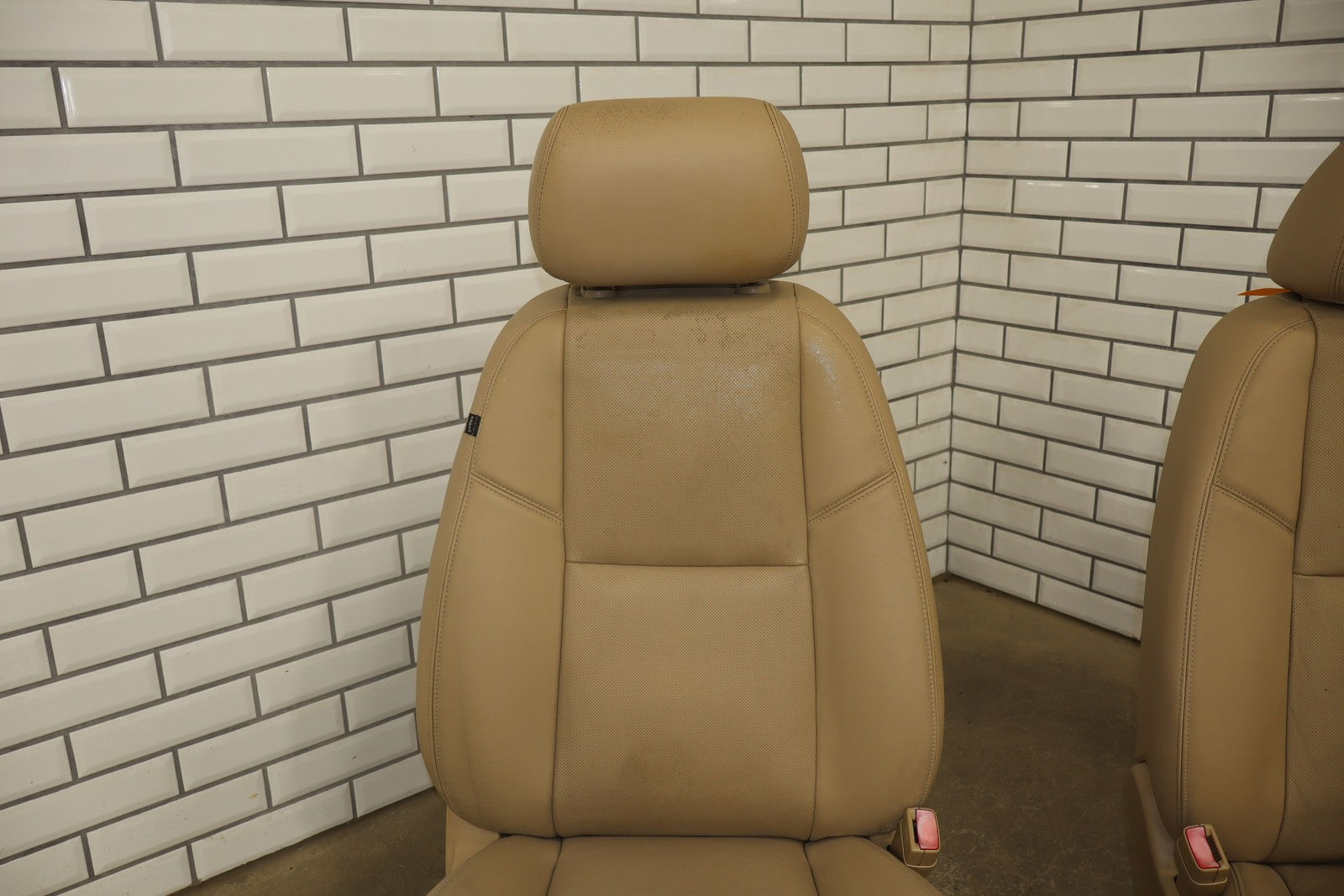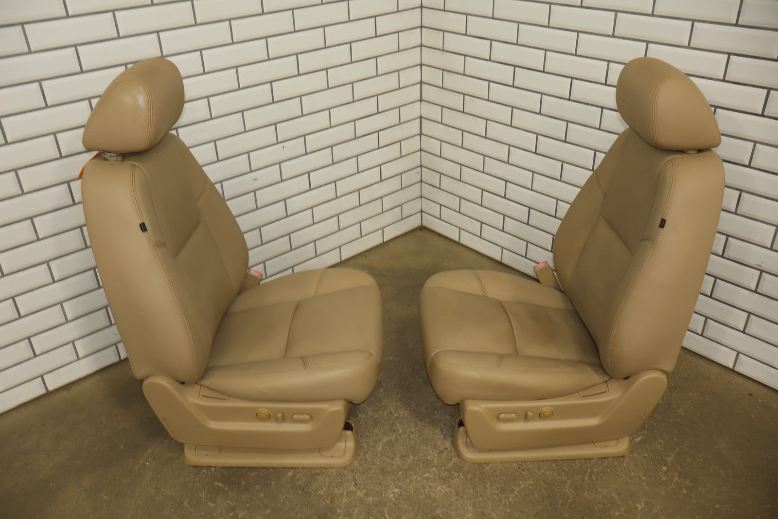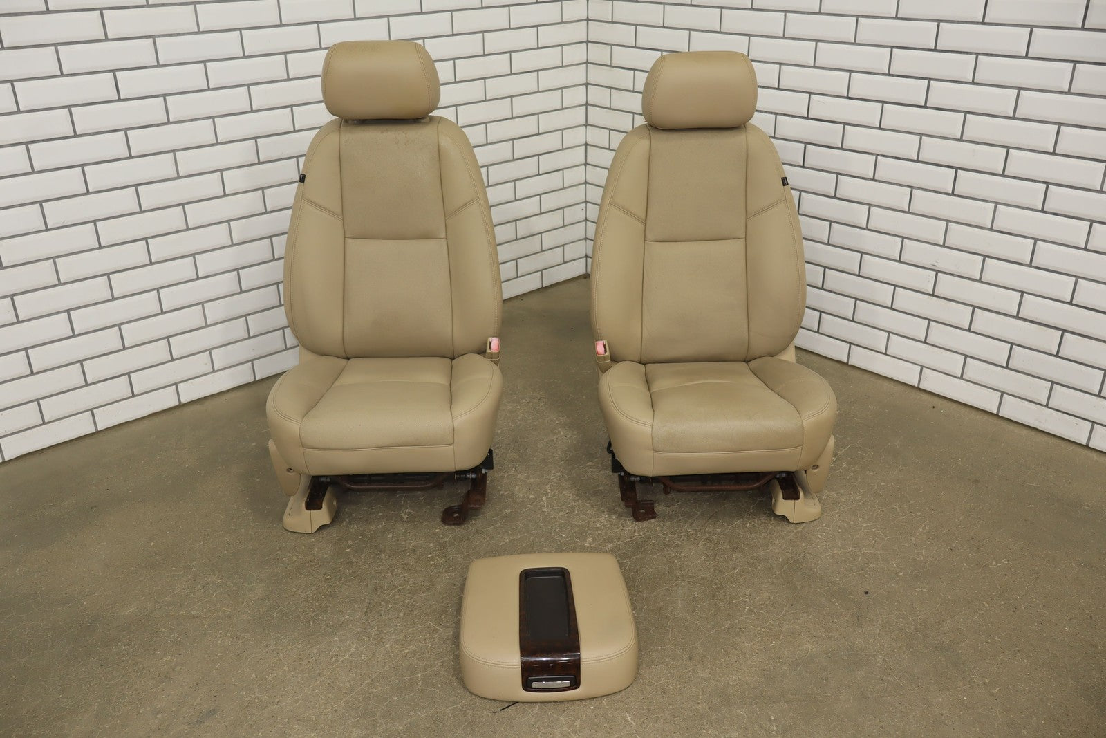 Lh Pair, Front Denali Leather Buckets, Cashmere (297), Includes Console Lid, Mild Staining, All Power Functions Work Properly