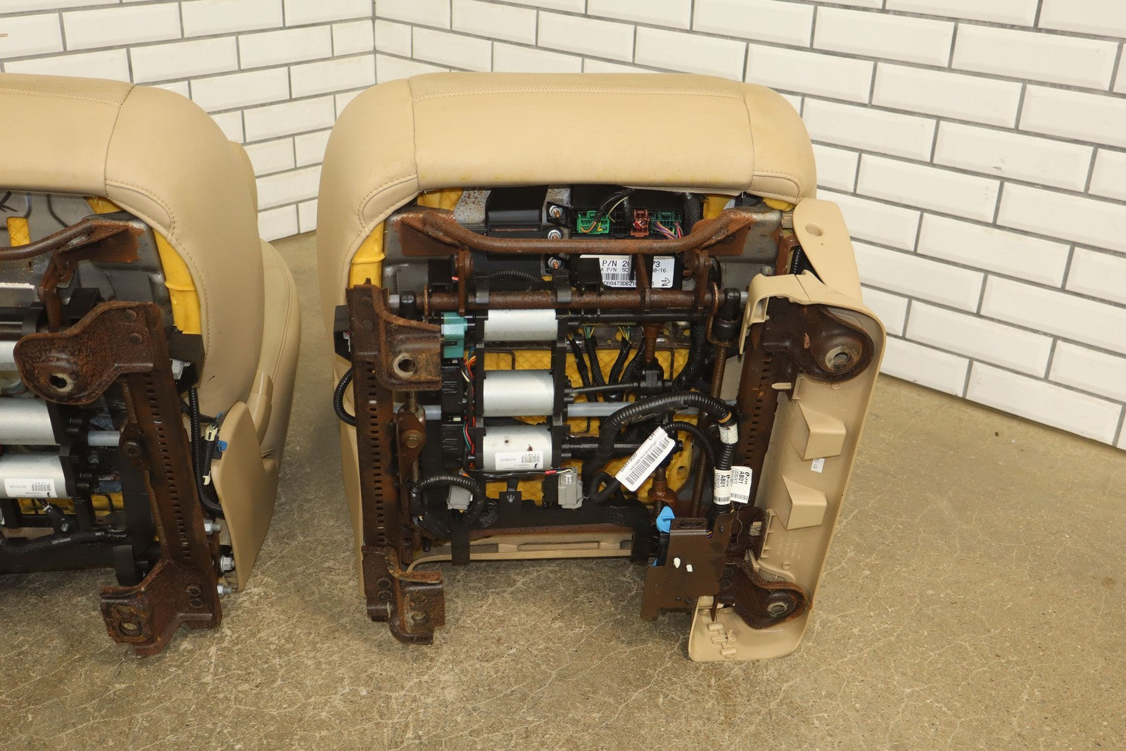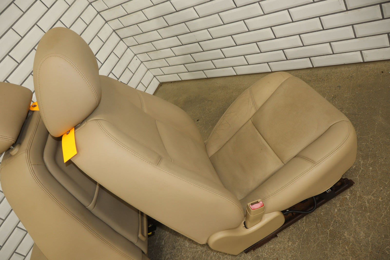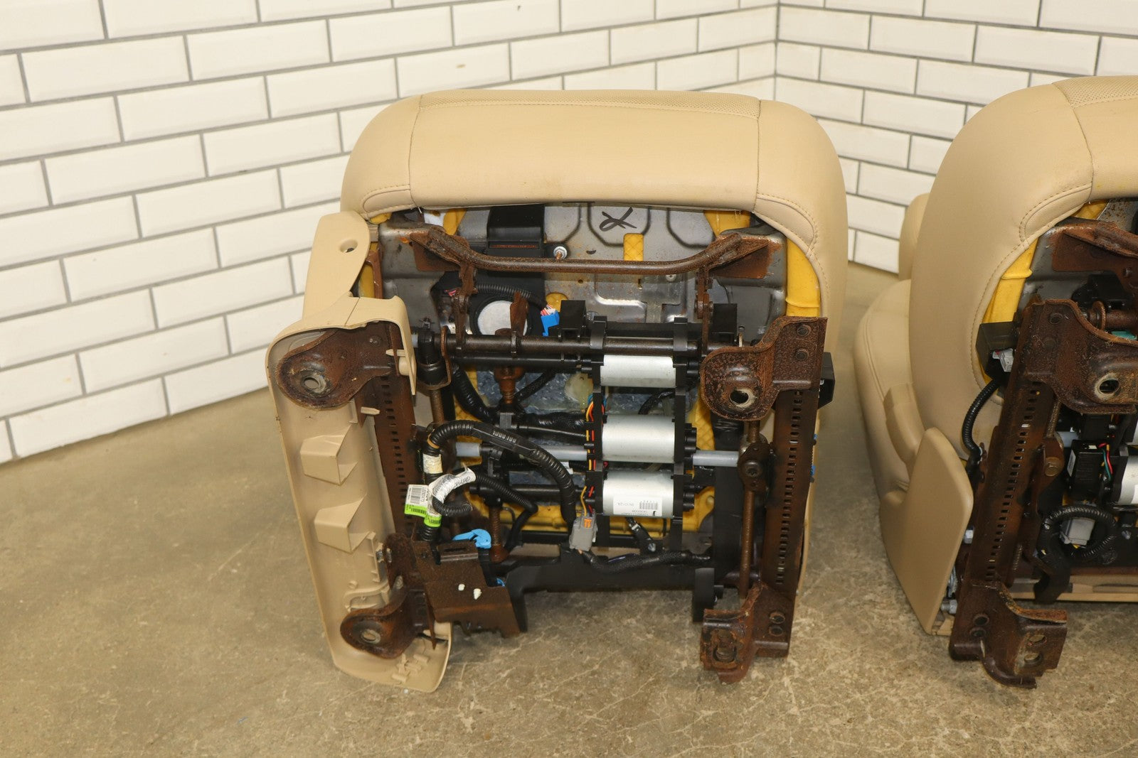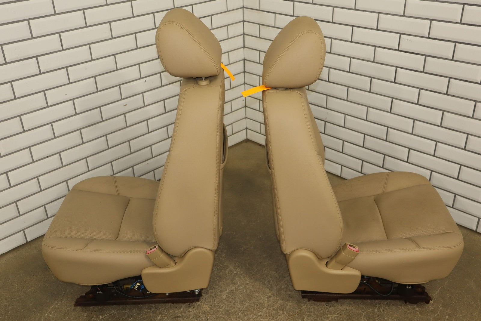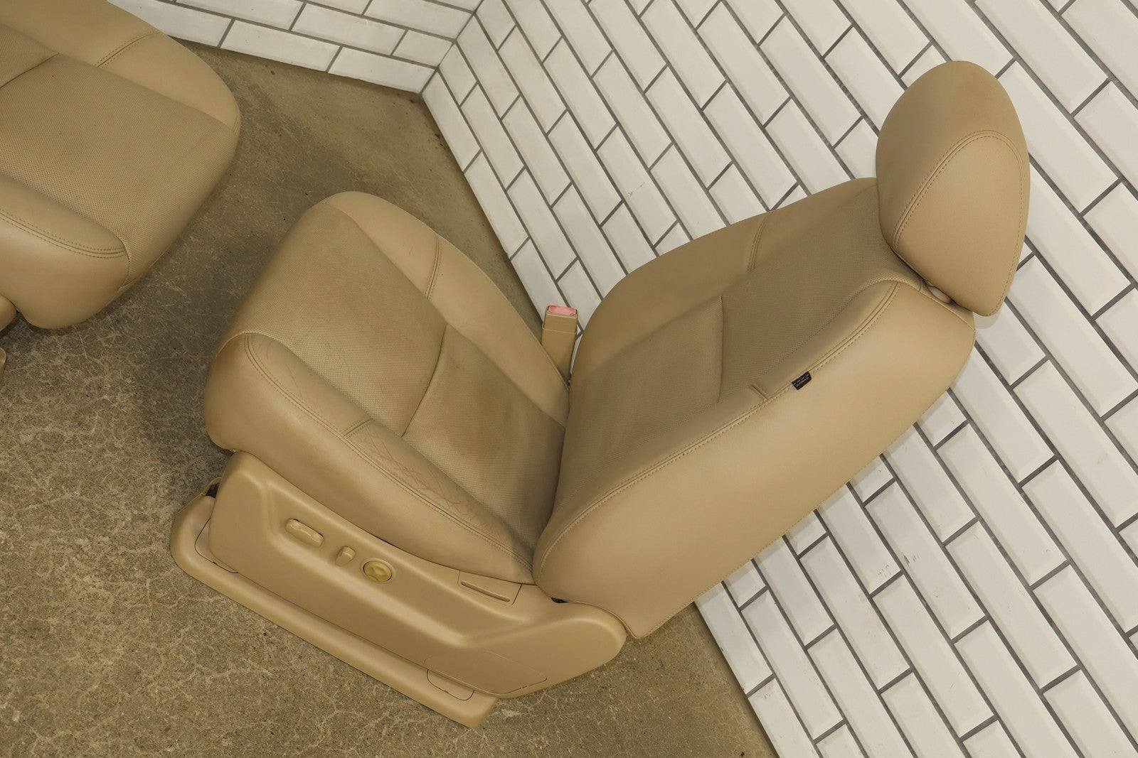 Lh Pair, Front Denali Leather Buckets, Cashmere (297), Includes Console Lid, Mild Staining, All Power Functions Work Properly