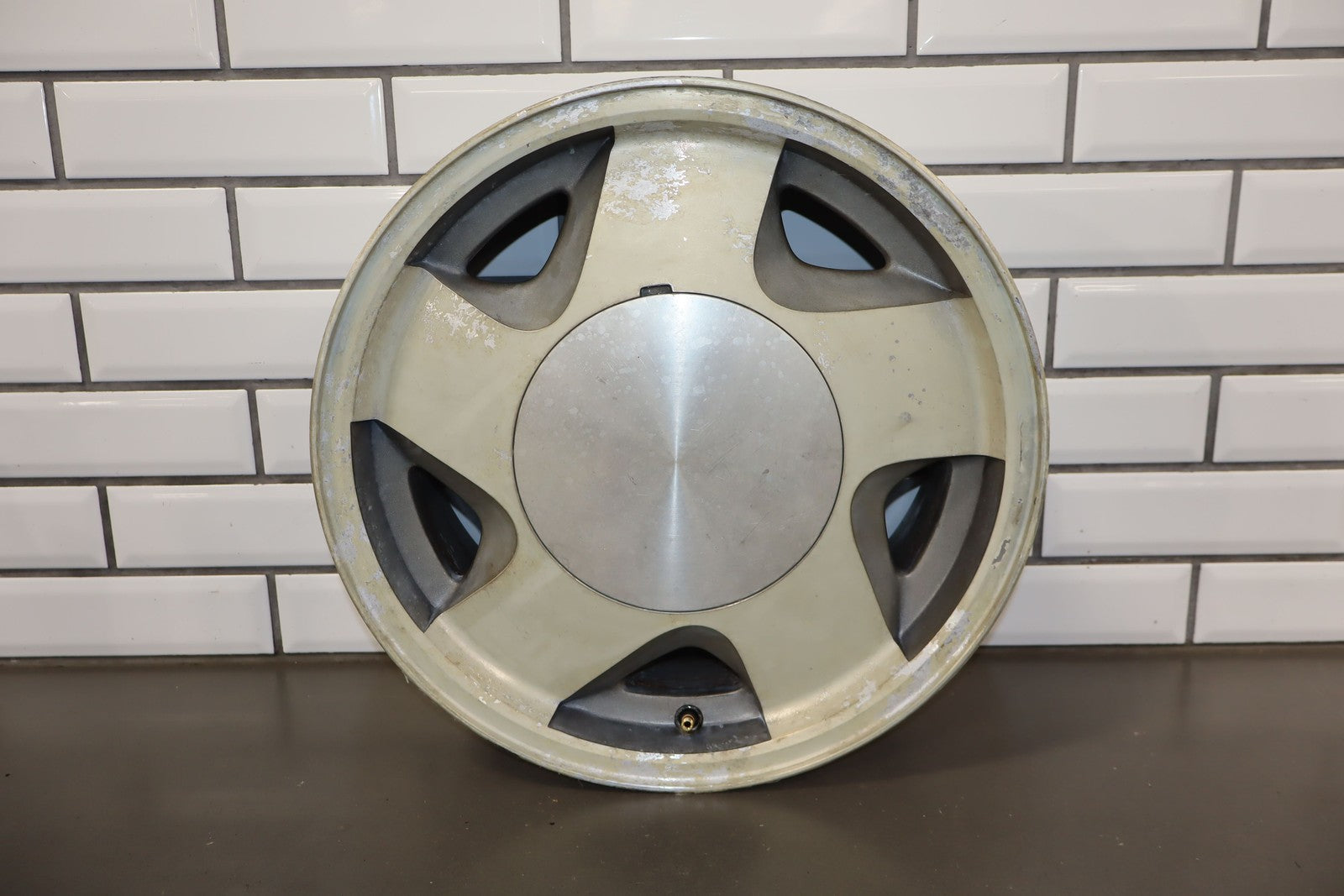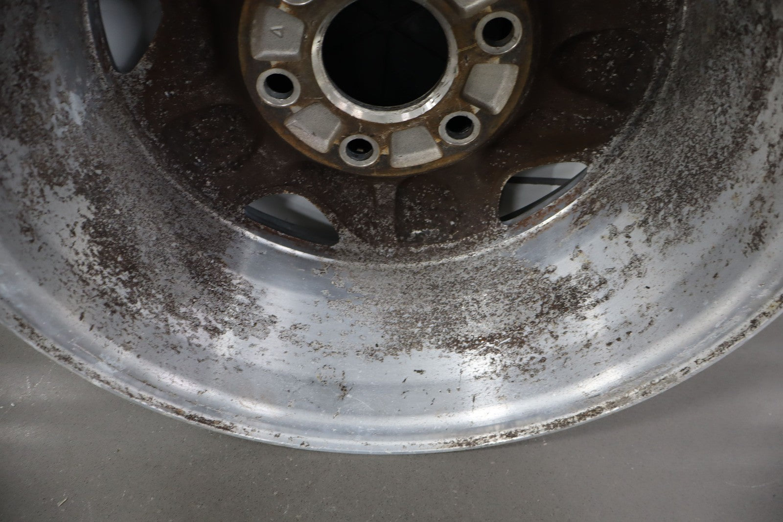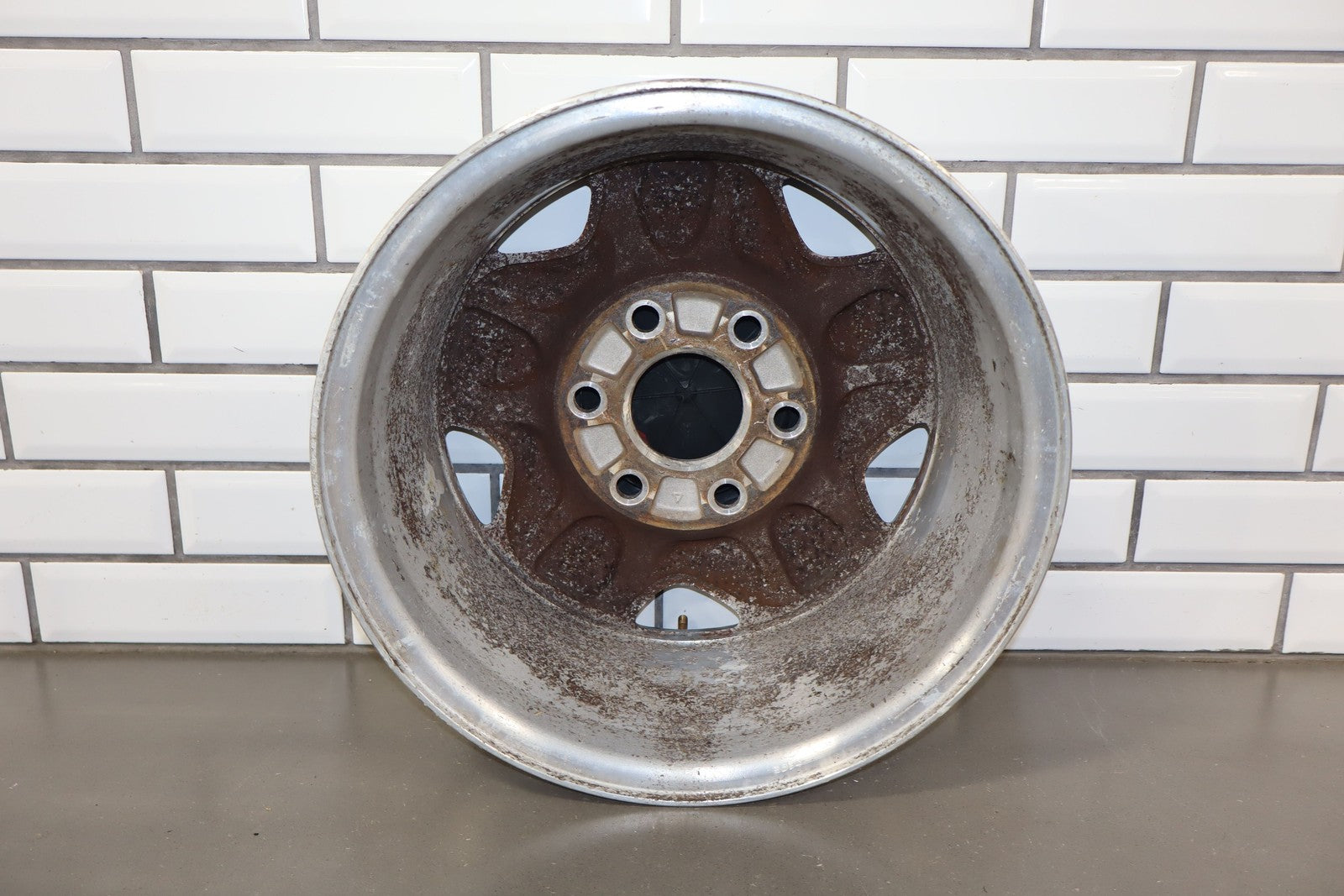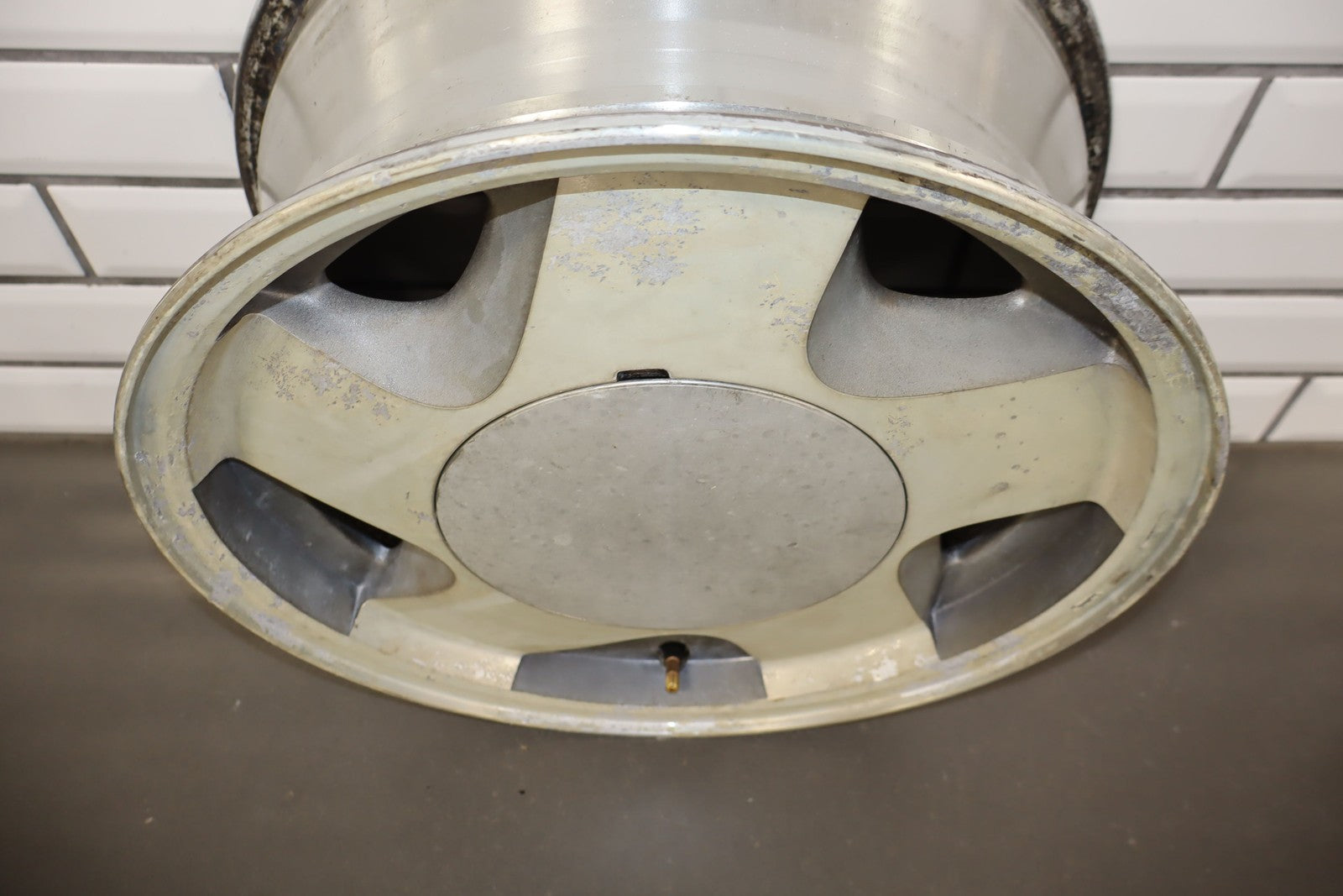 Lh Front, 16x7 Aluminum 5 Spoke Wheel (4x4-6 Lug), Includes Cap, Weathered Finish, Some Corrosion, Spun True