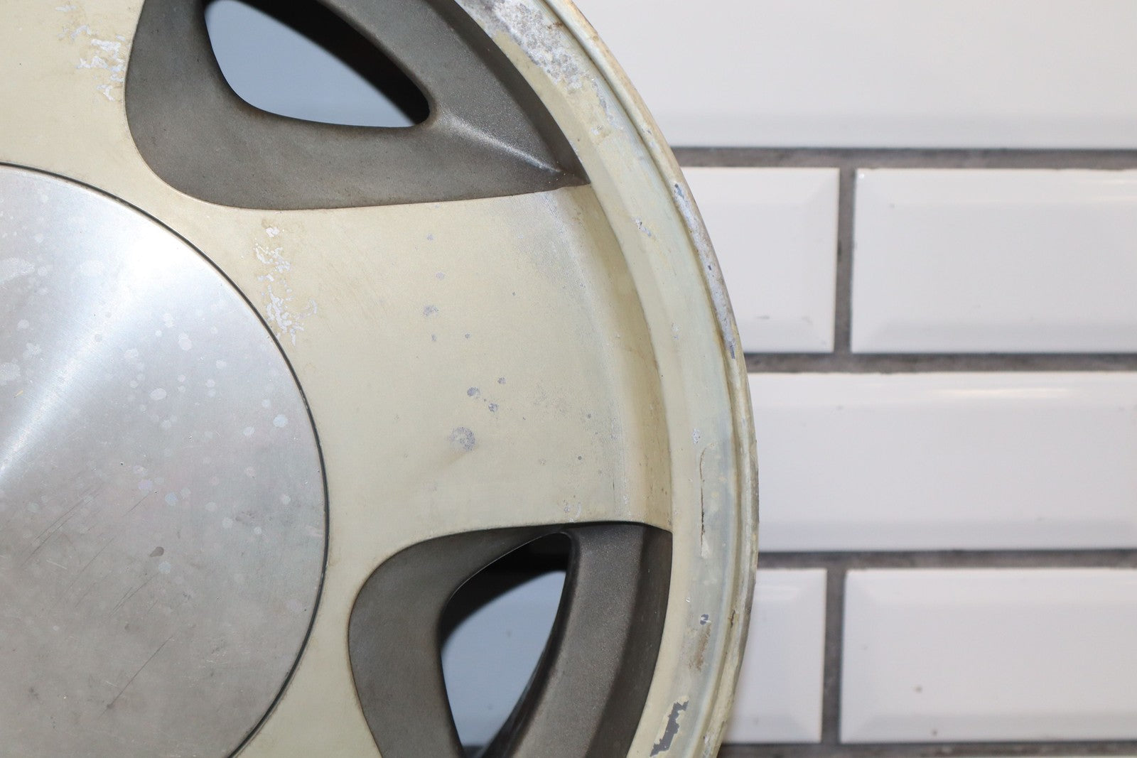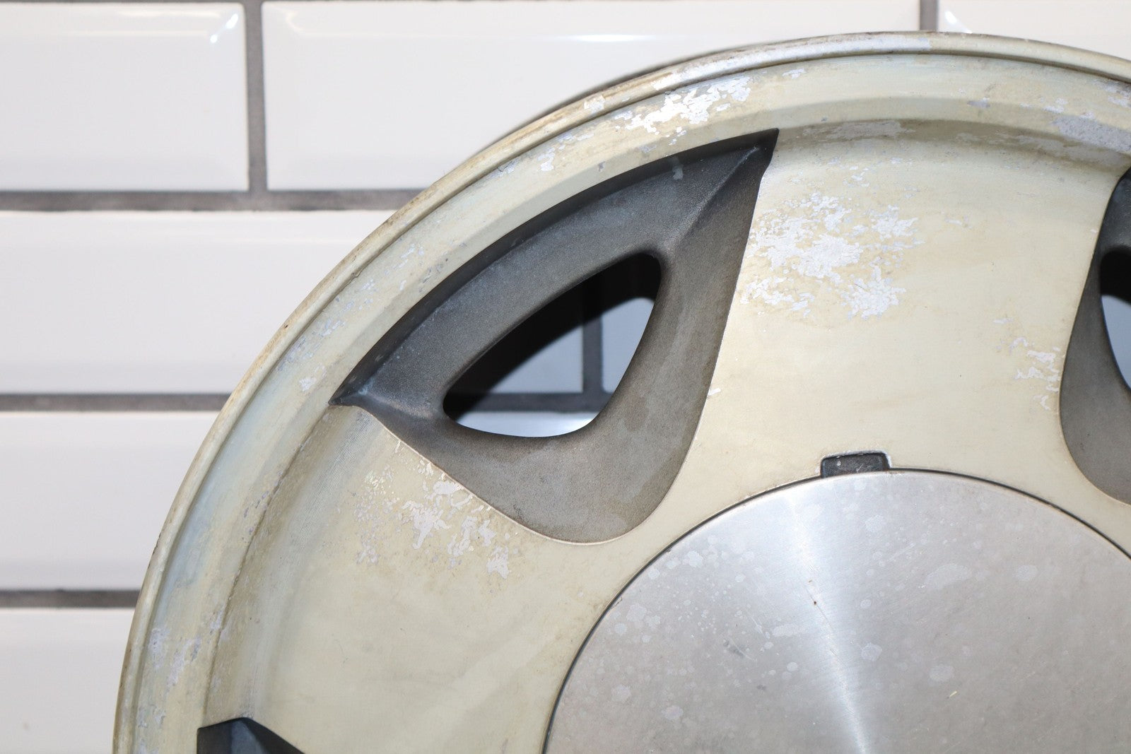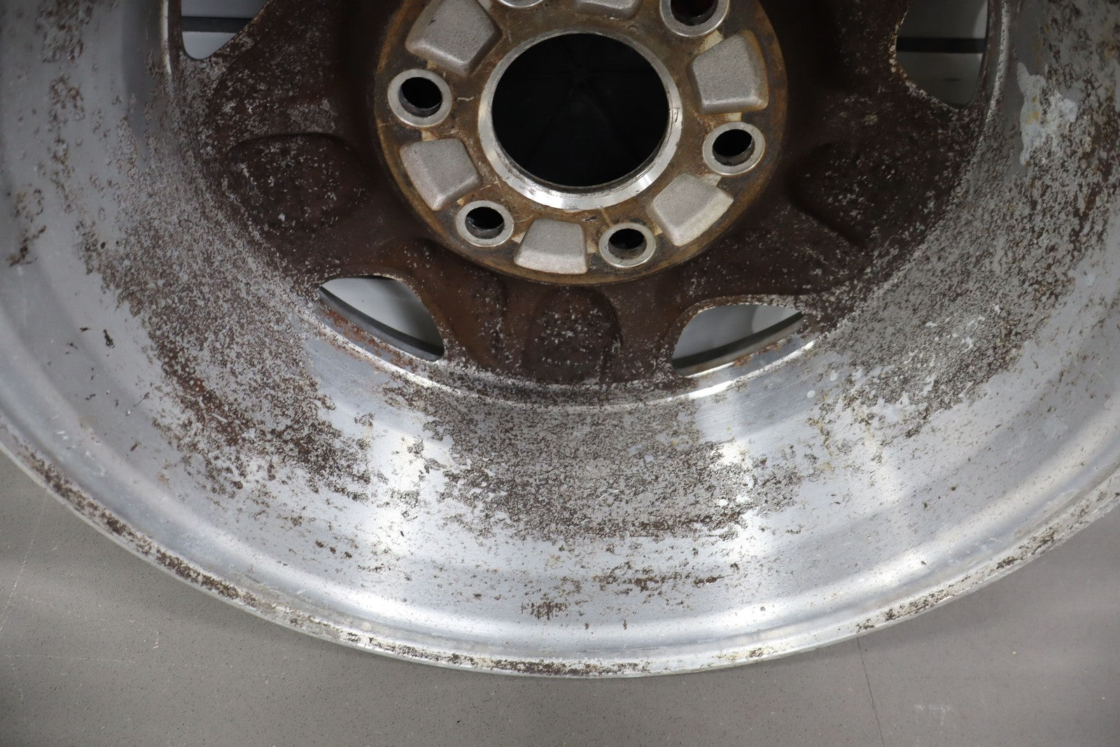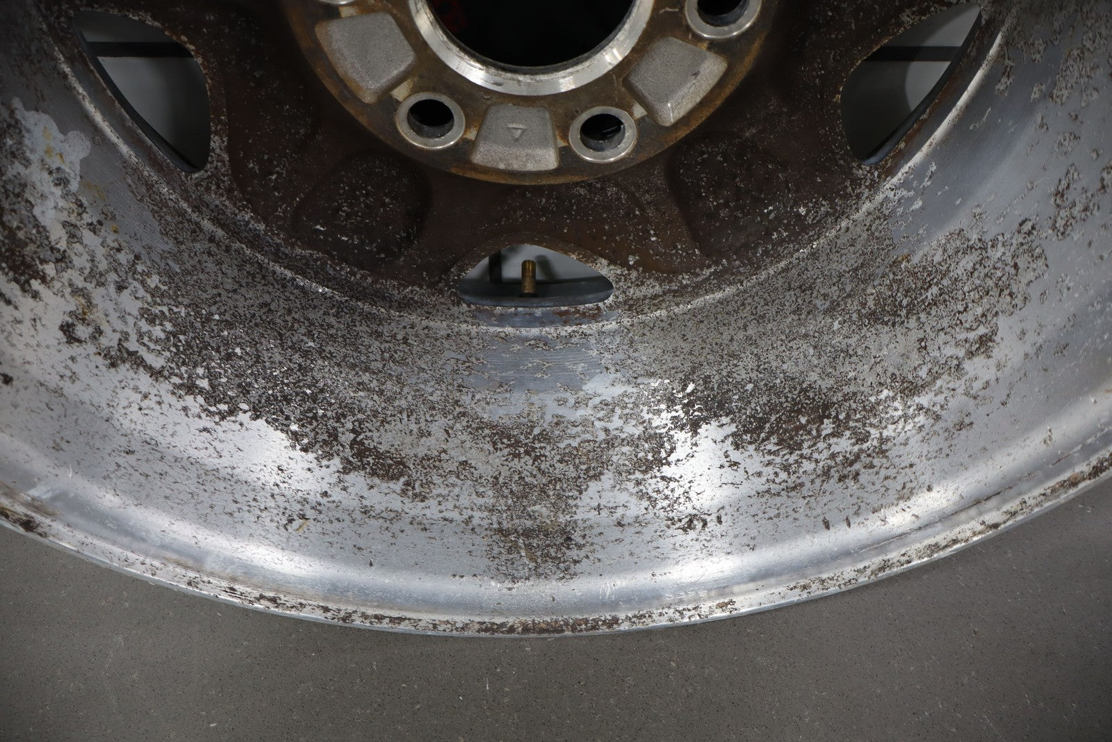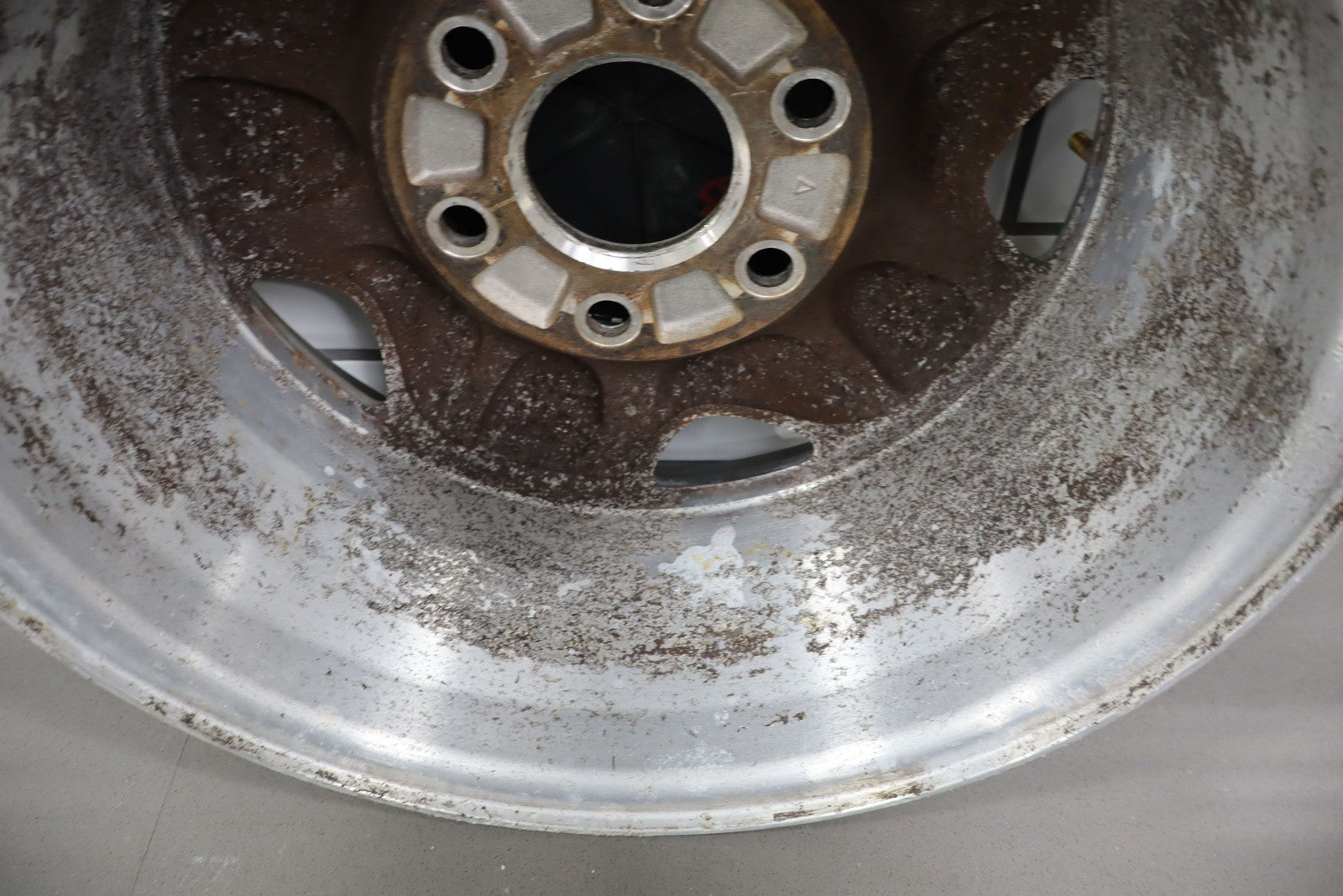 Lh Front, 16x7 Aluminum 5 Spoke Wheel (4x4-6 Lug), Includes Cap, Weathered Finish, Some Corrosion, Spun True