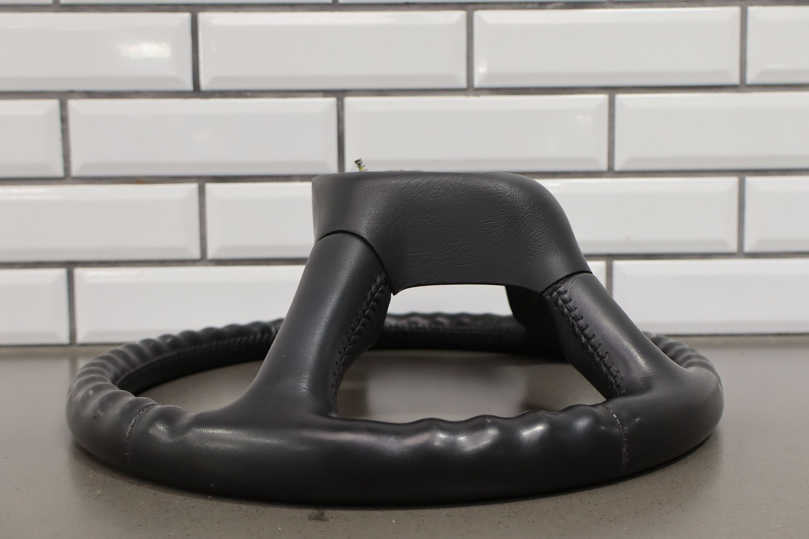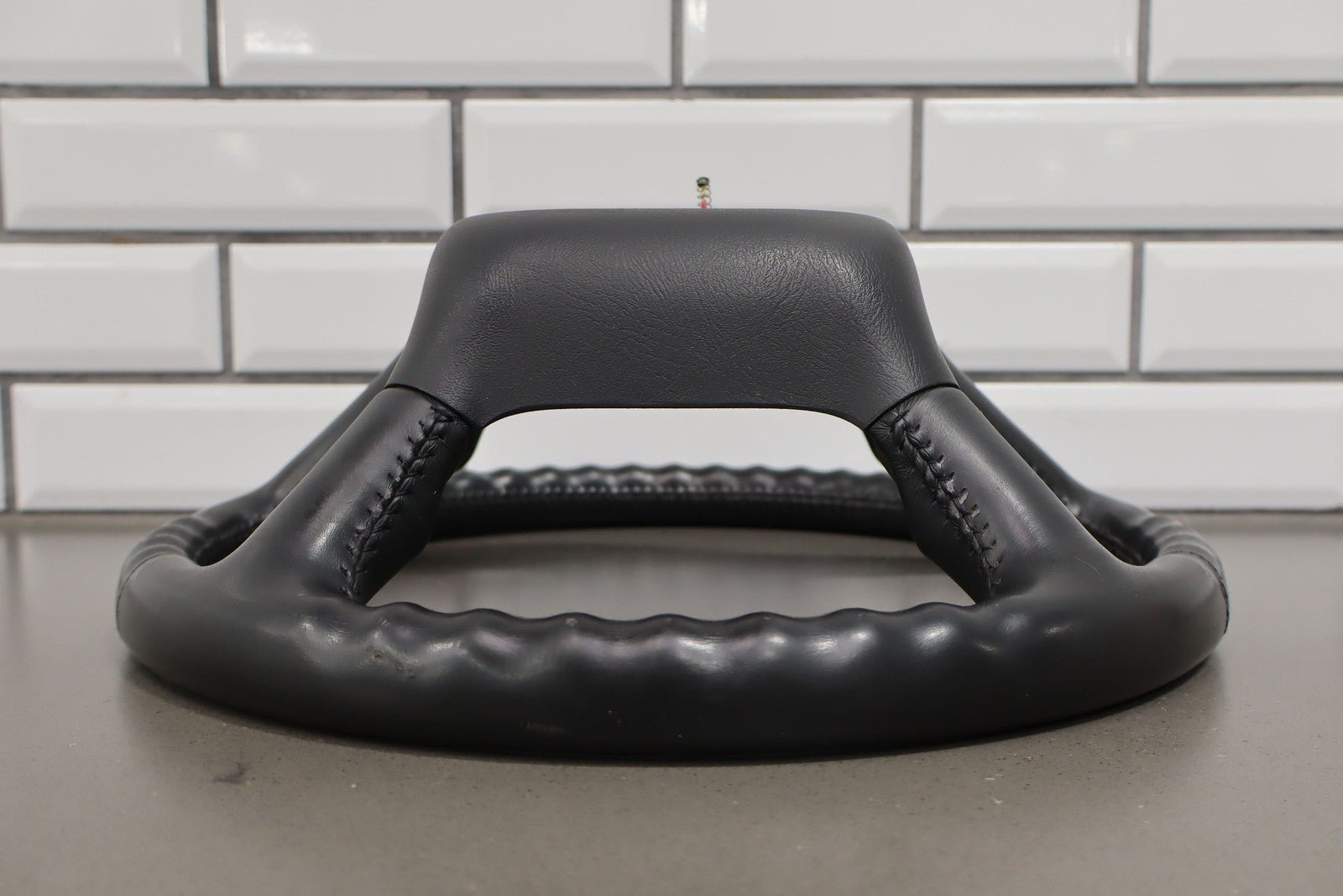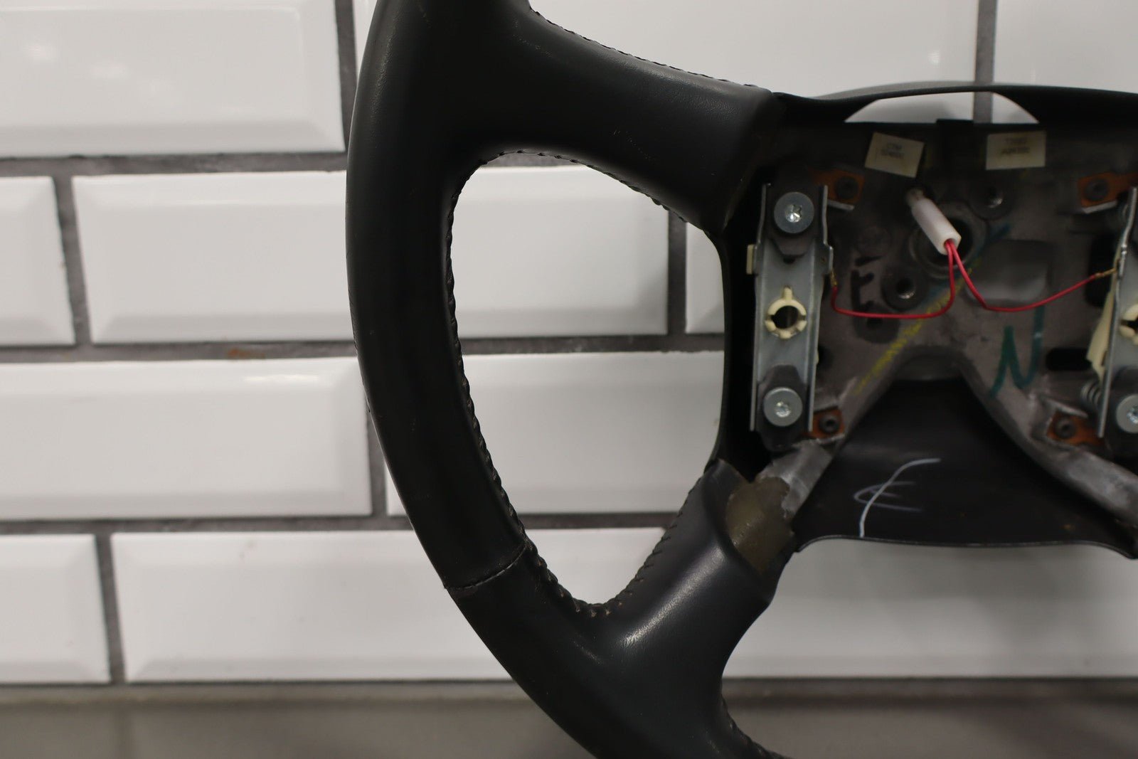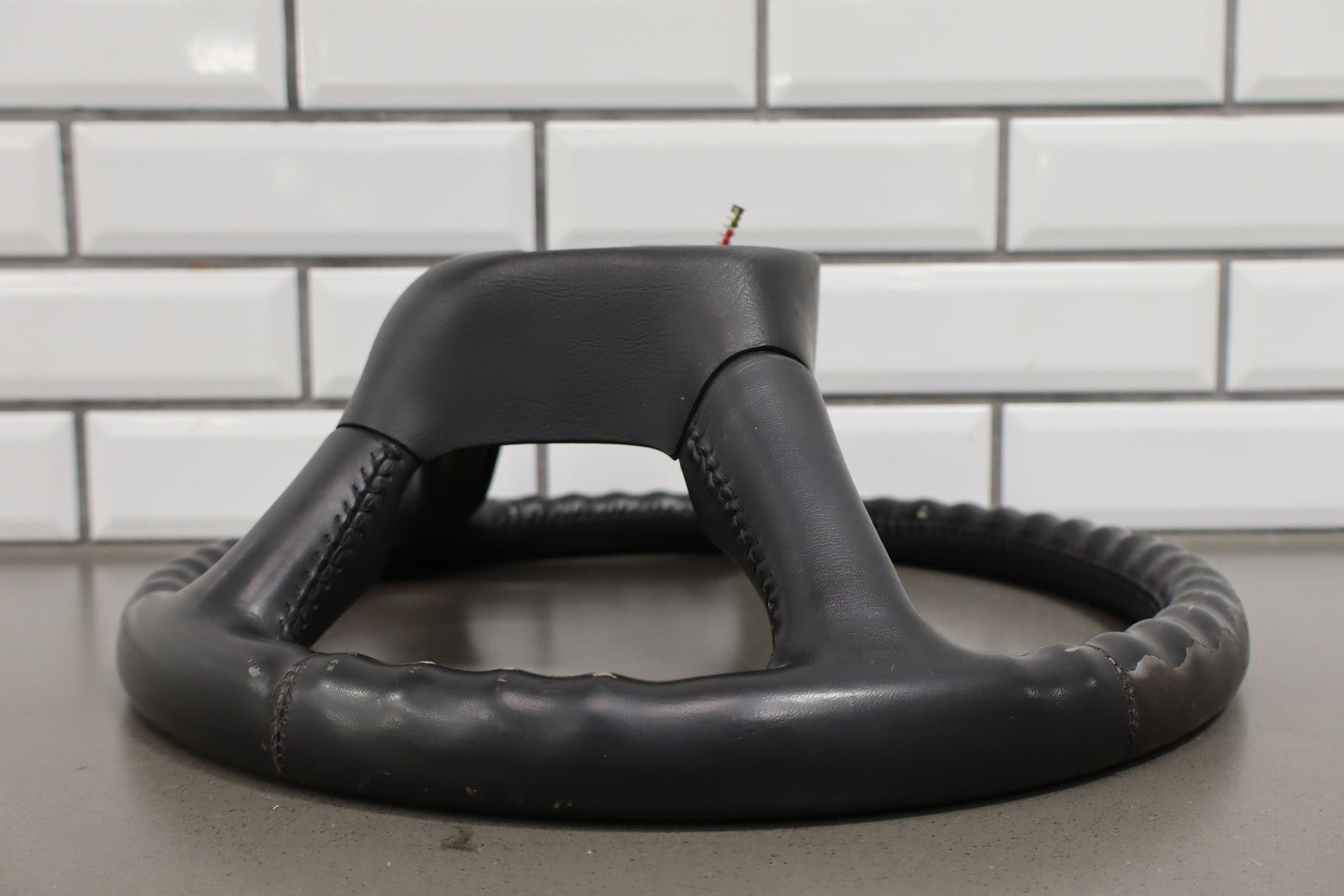 Leather Steering Wheel, Graphite, Heavy Wear On Top
