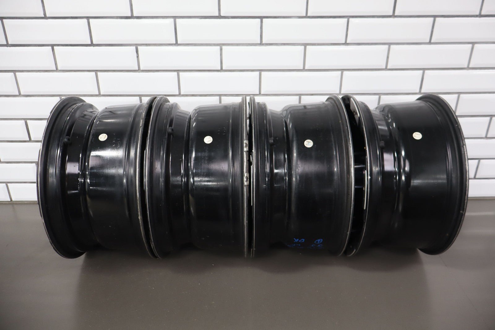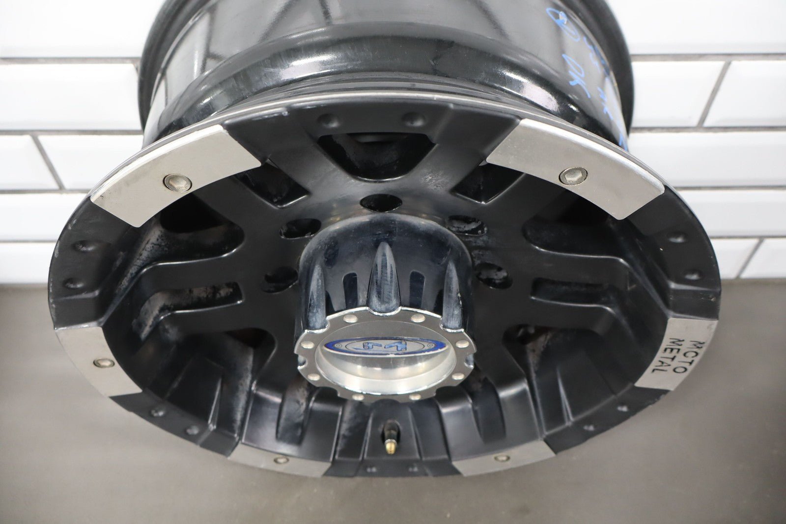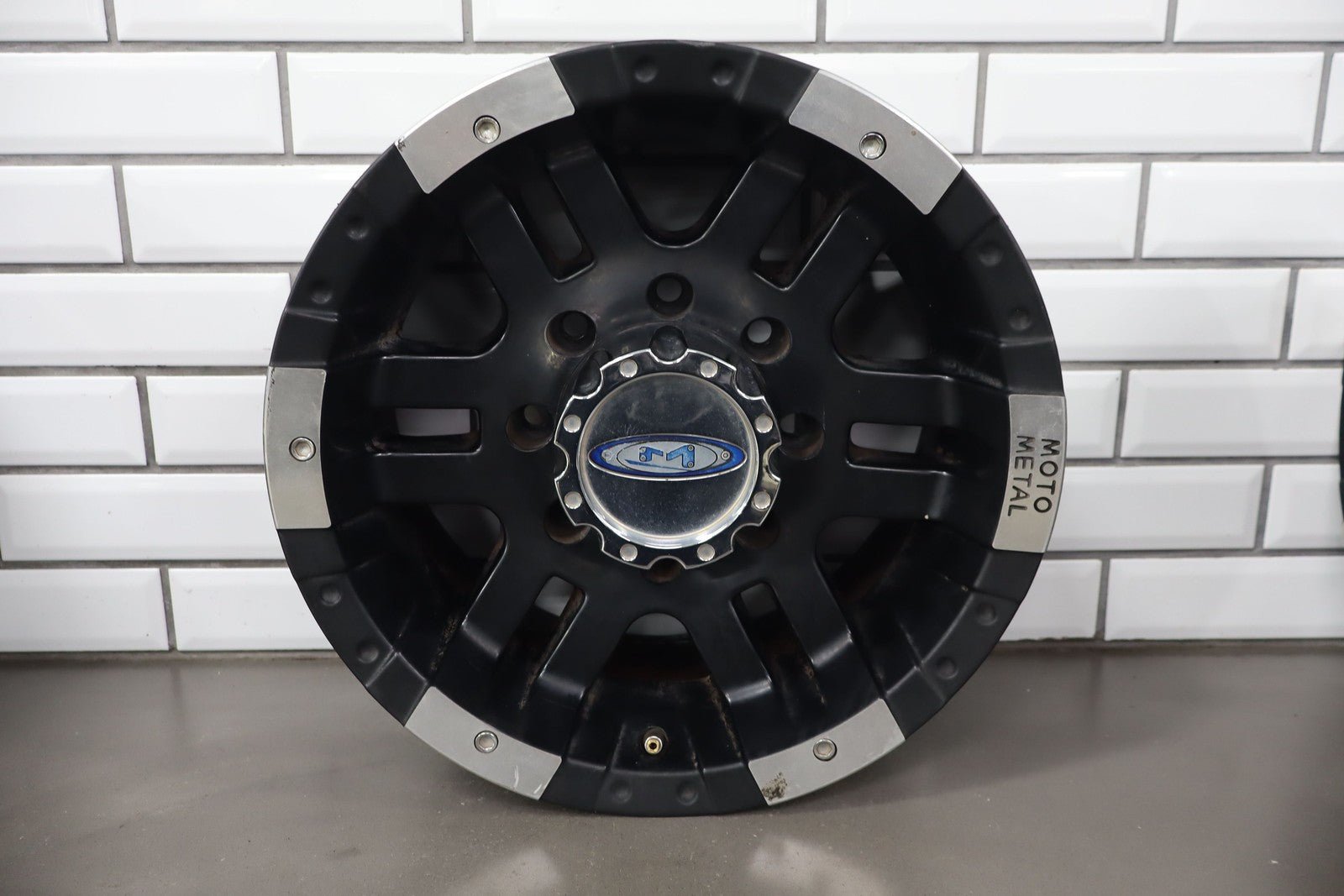 Set Of 4 Aftermarket Wheels, 16x8 Metal Moto M0951, Light Scratches, Mild Weathering, Some Brake Dust Staining, All Spun True