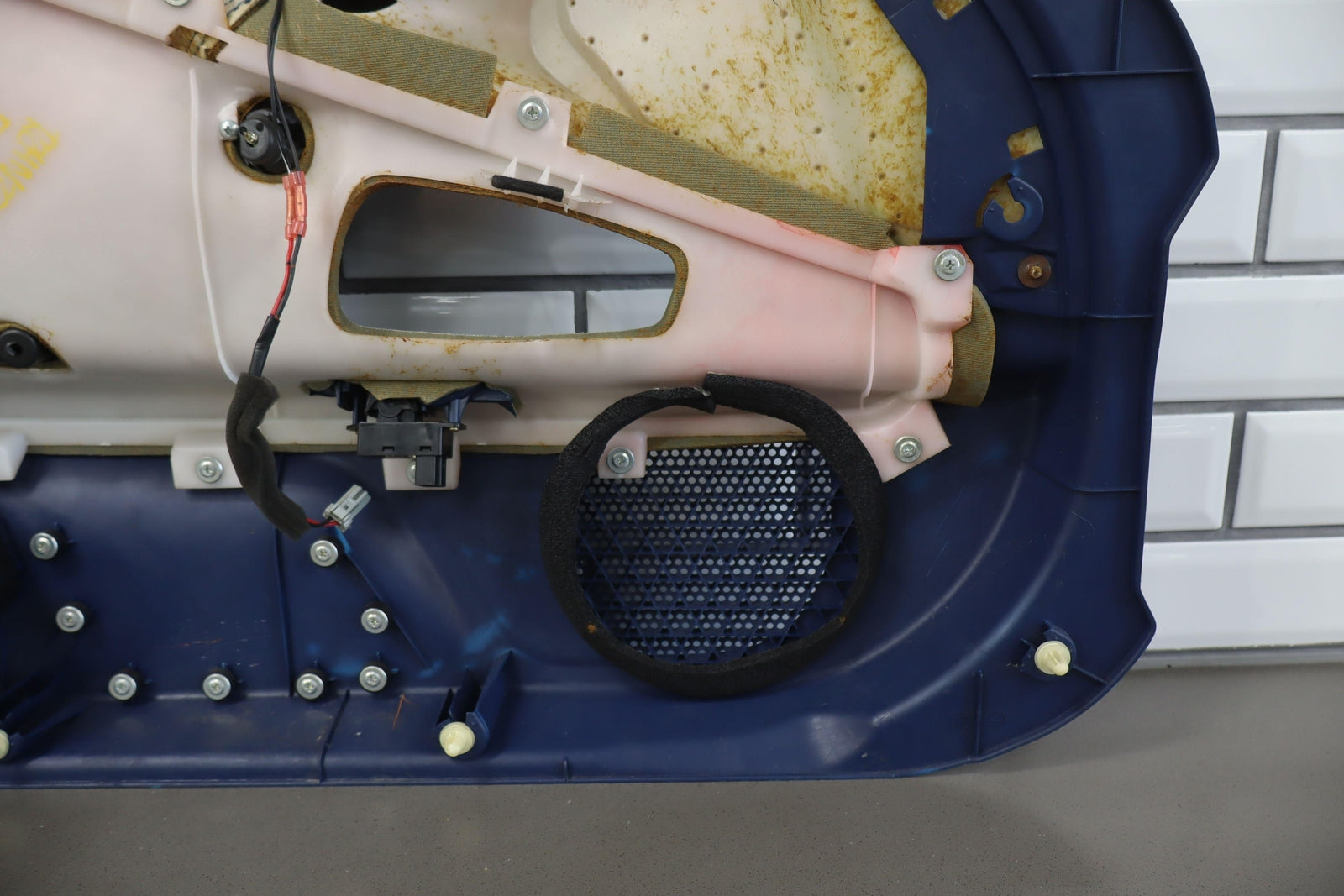 Rh Front Door Trim Panel, Blue(bl), Tear In Leather Under Handle