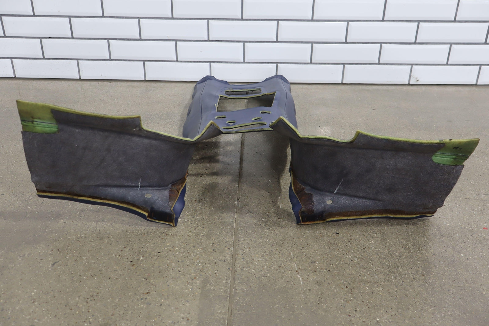 Important notes: Front Console Leather Mat, Blue(bl), Mild Wear Throughout