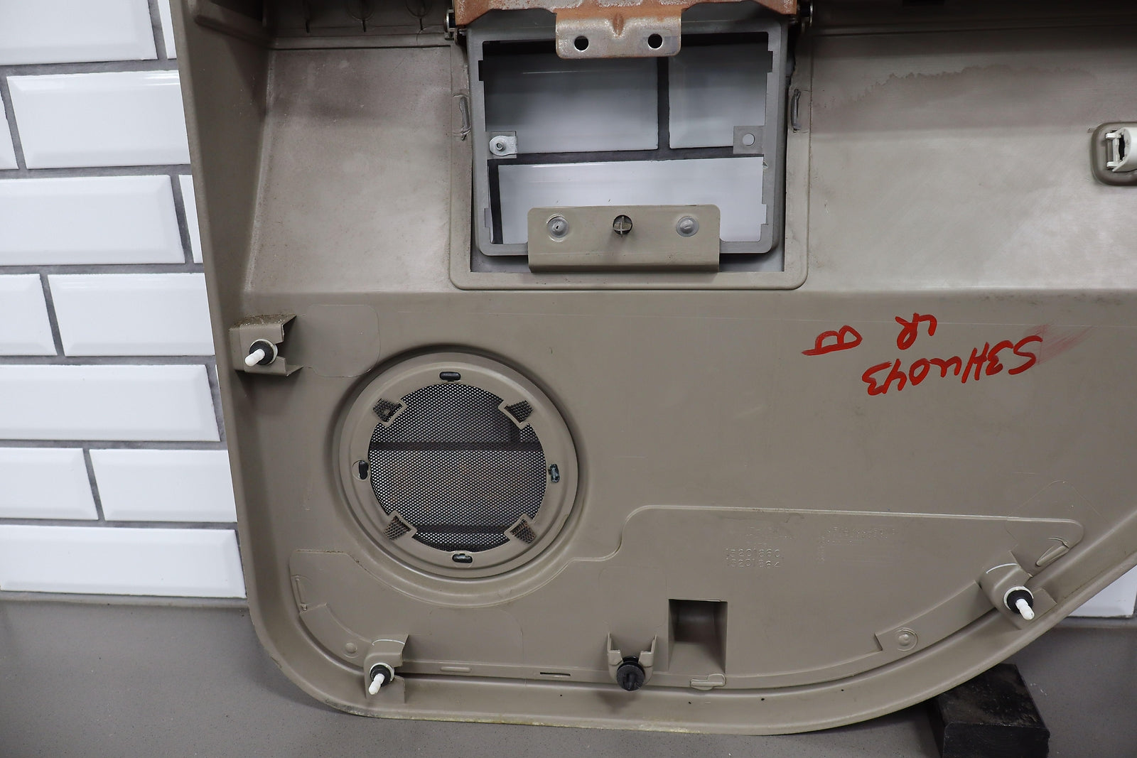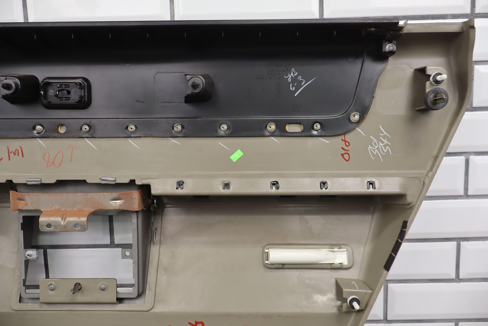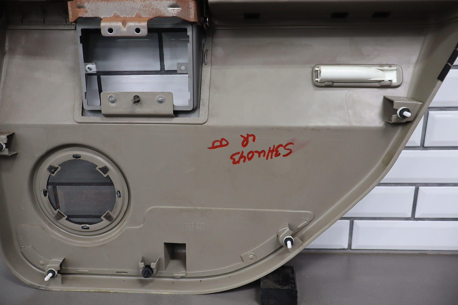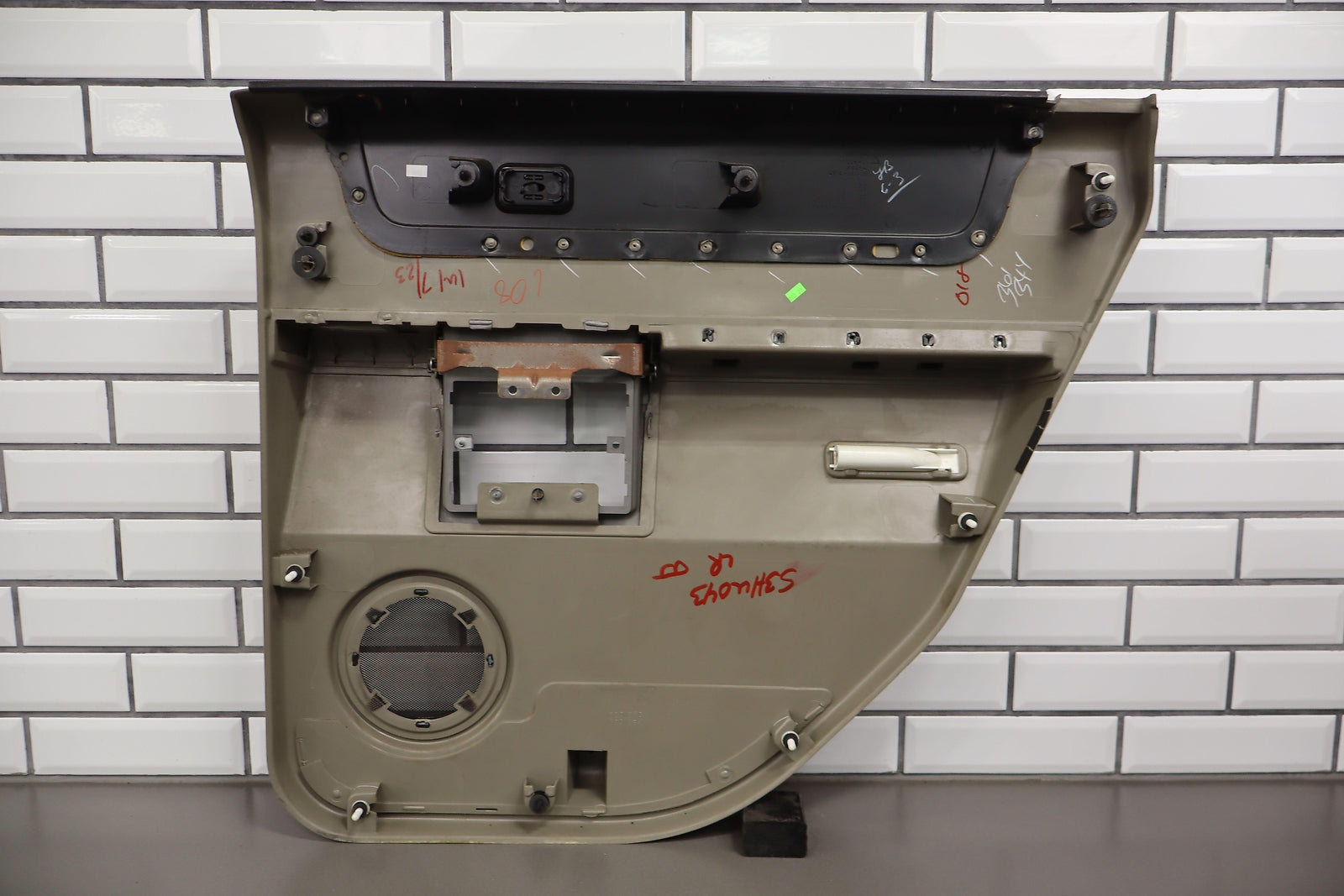 Lh Rear, Light Wheat (502), No Window Switch, Loose Lower Pocket, Couple Scuffs, Mild Signs Of Wear