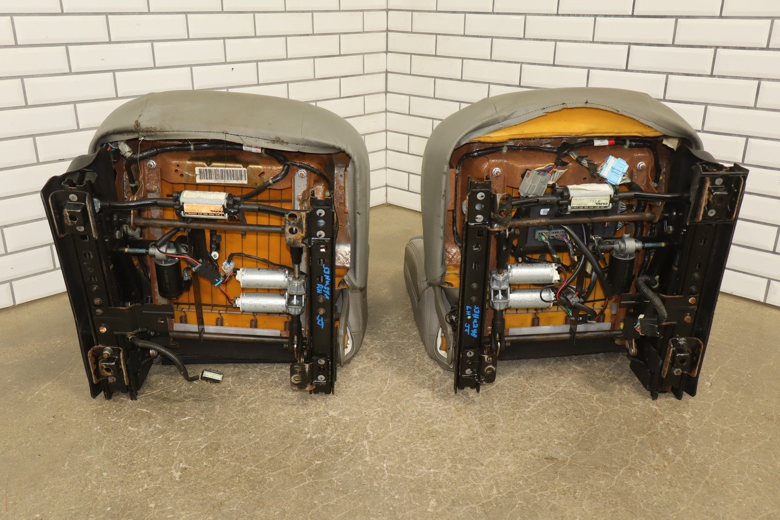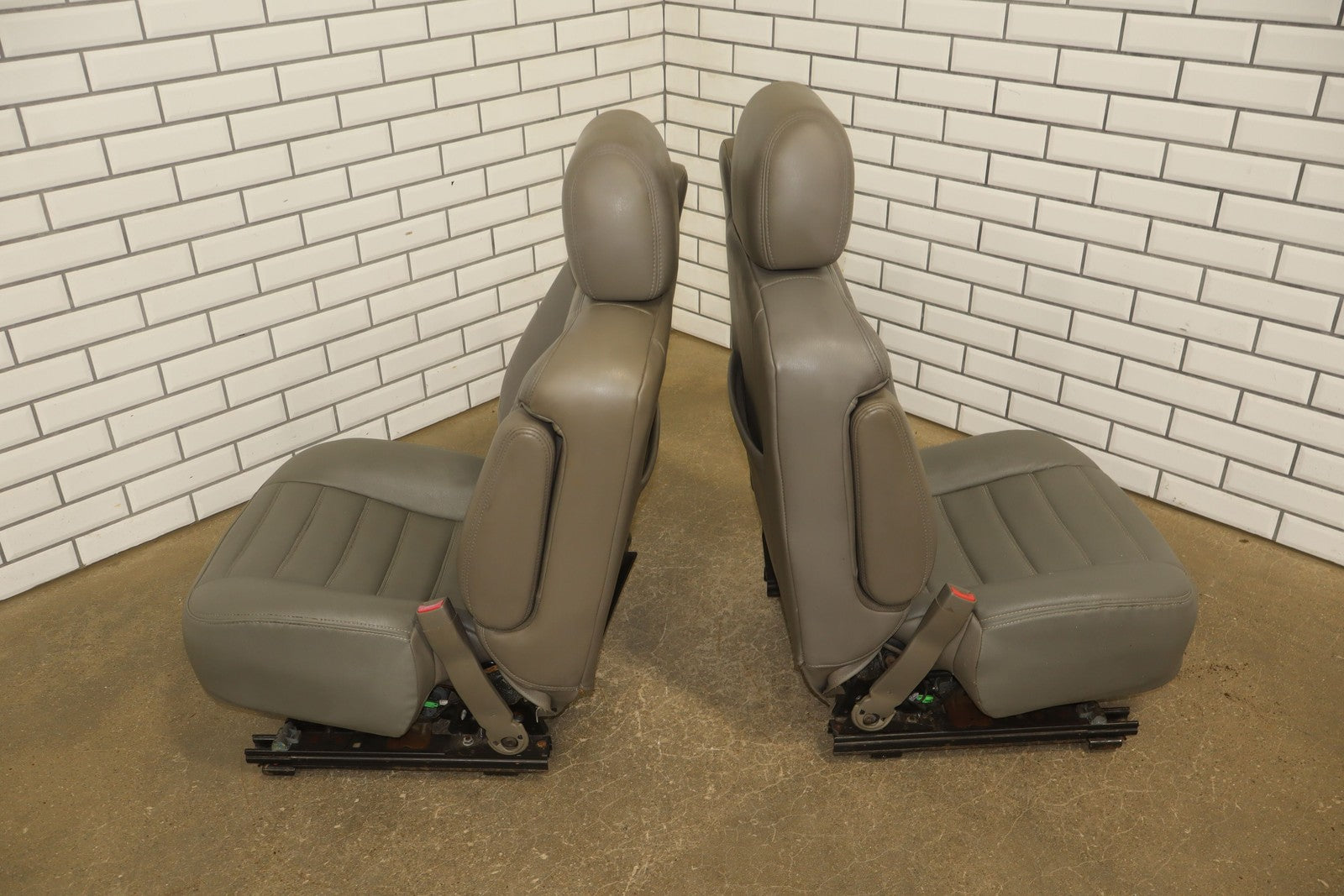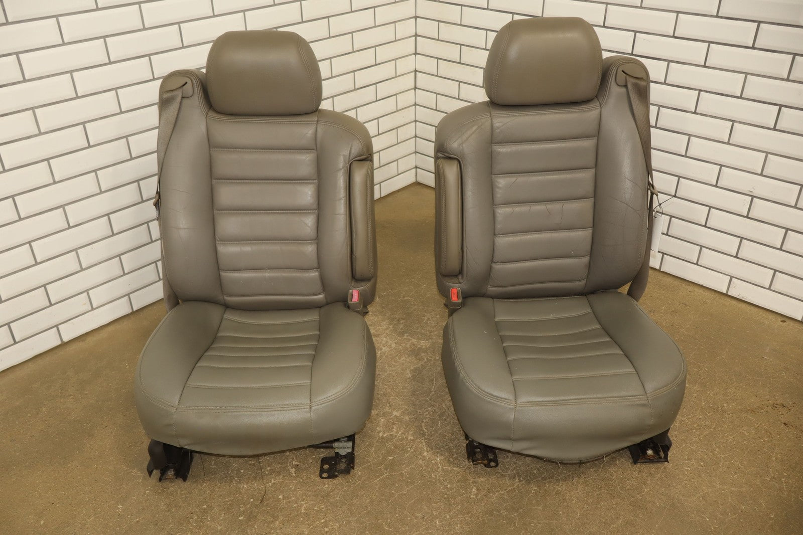 Lh Pair, Front Leather Bucket Seats, Light Wheat (502), Mild Discoloration (replacement Covers), Wear, Couple Tears (lh), Stains