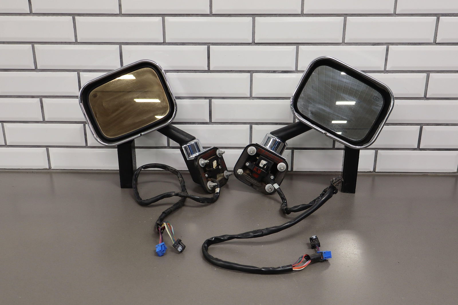 Lh Pair, Black Textured Plastic Mirrors W/aftermarket Chrome Trim, Power Fold Inoperative, Both Function Properly Otherwise
