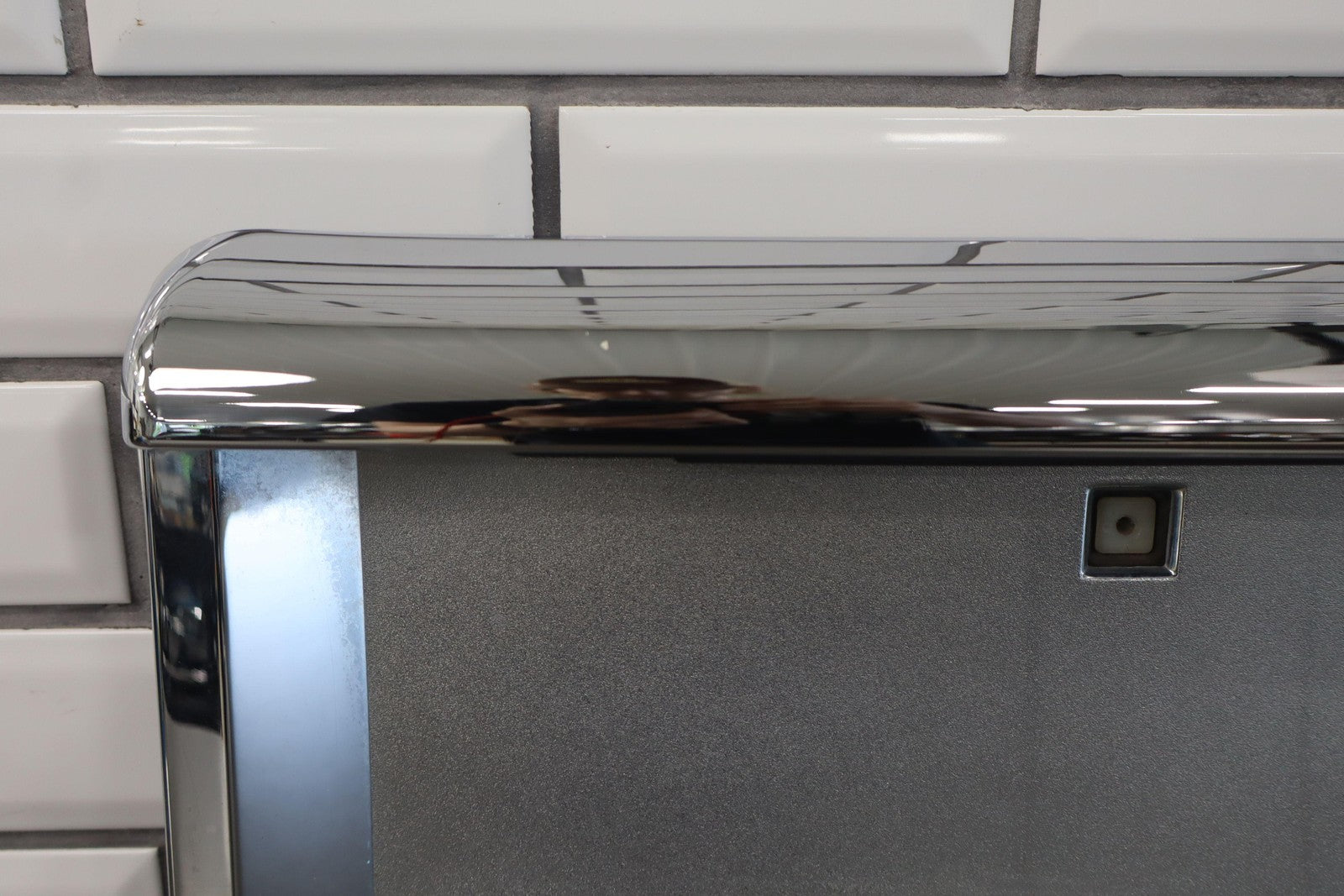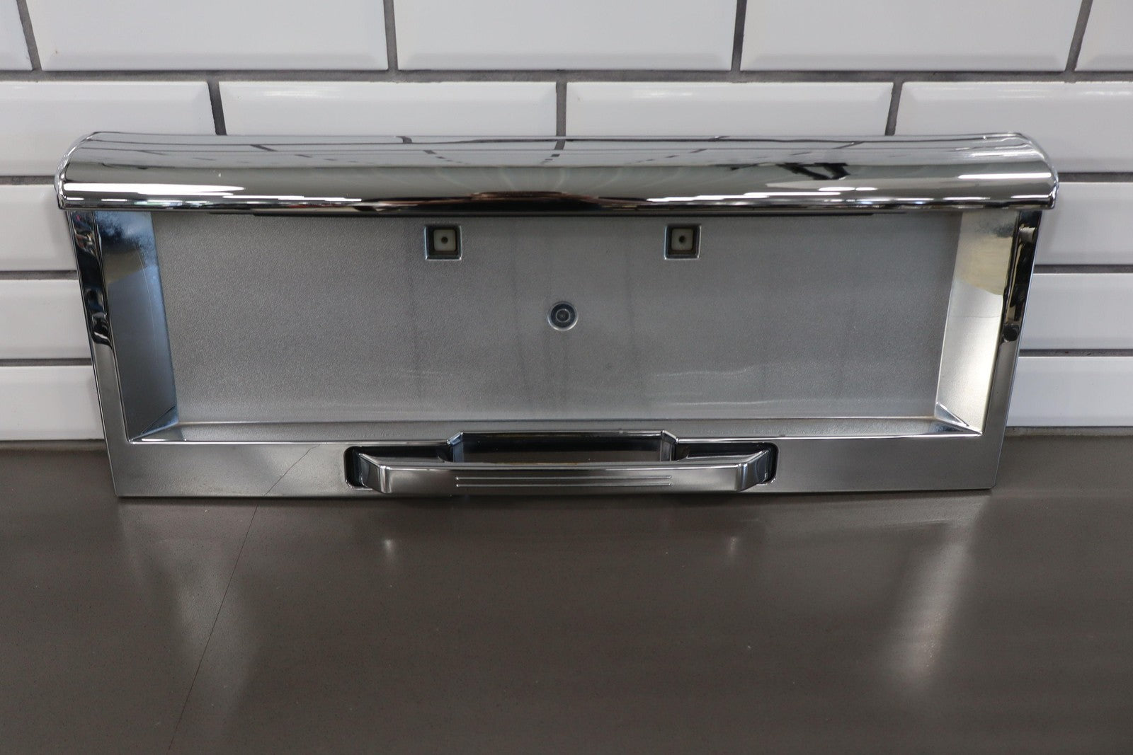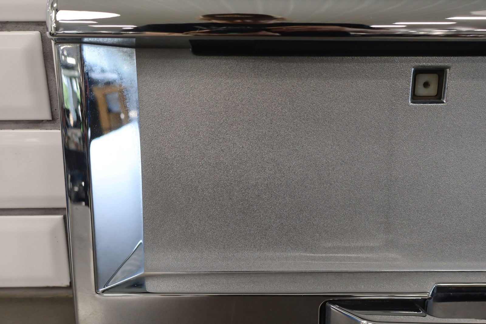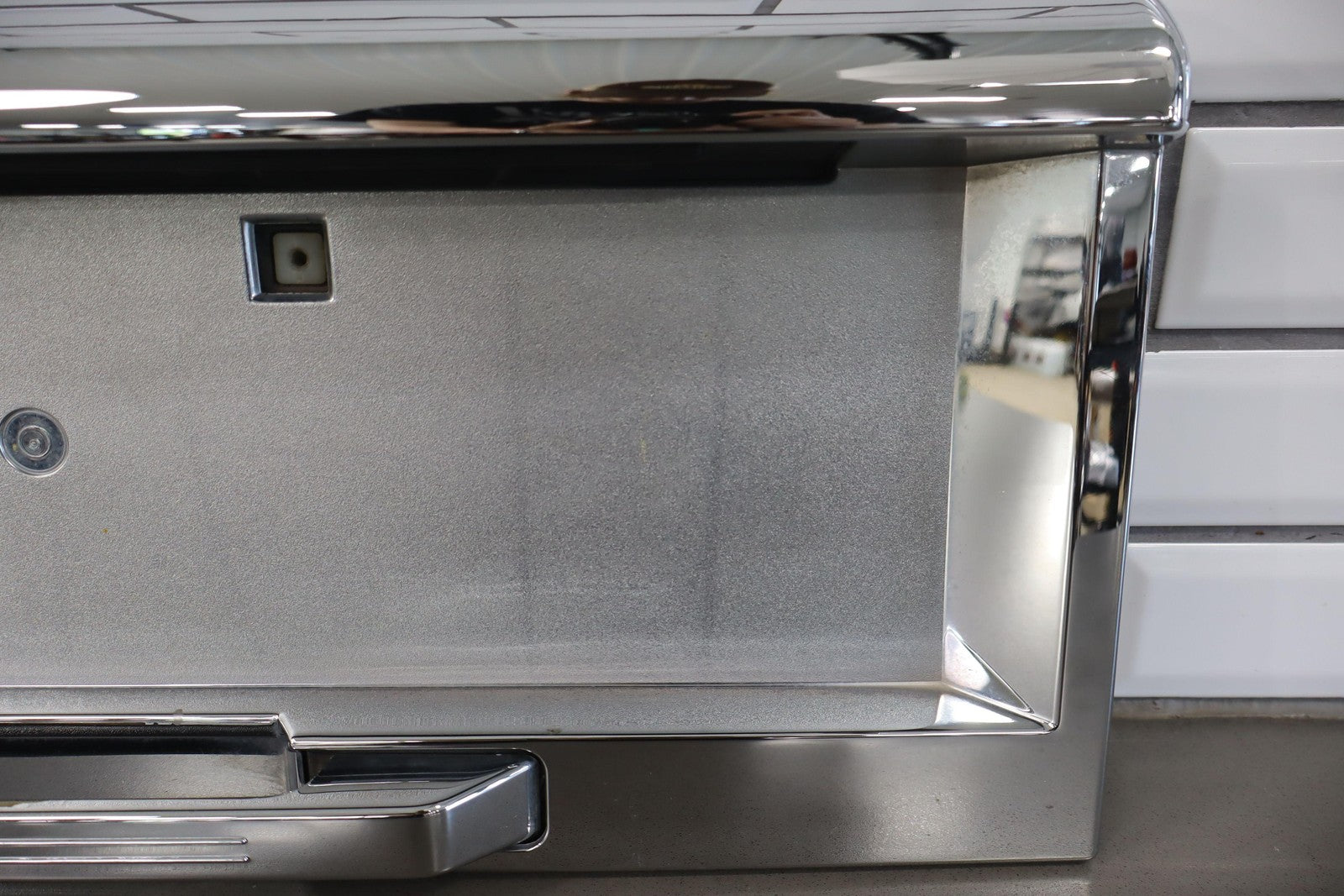 Aftermarket Chrome Tail Finish Panel, Minor Weathering, 1 Missing Tab (red)