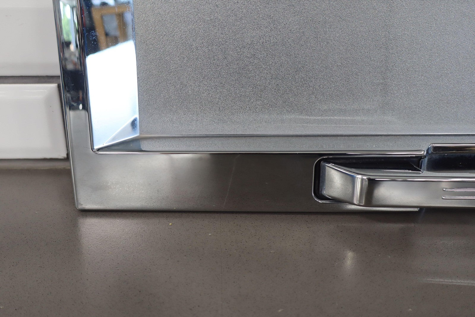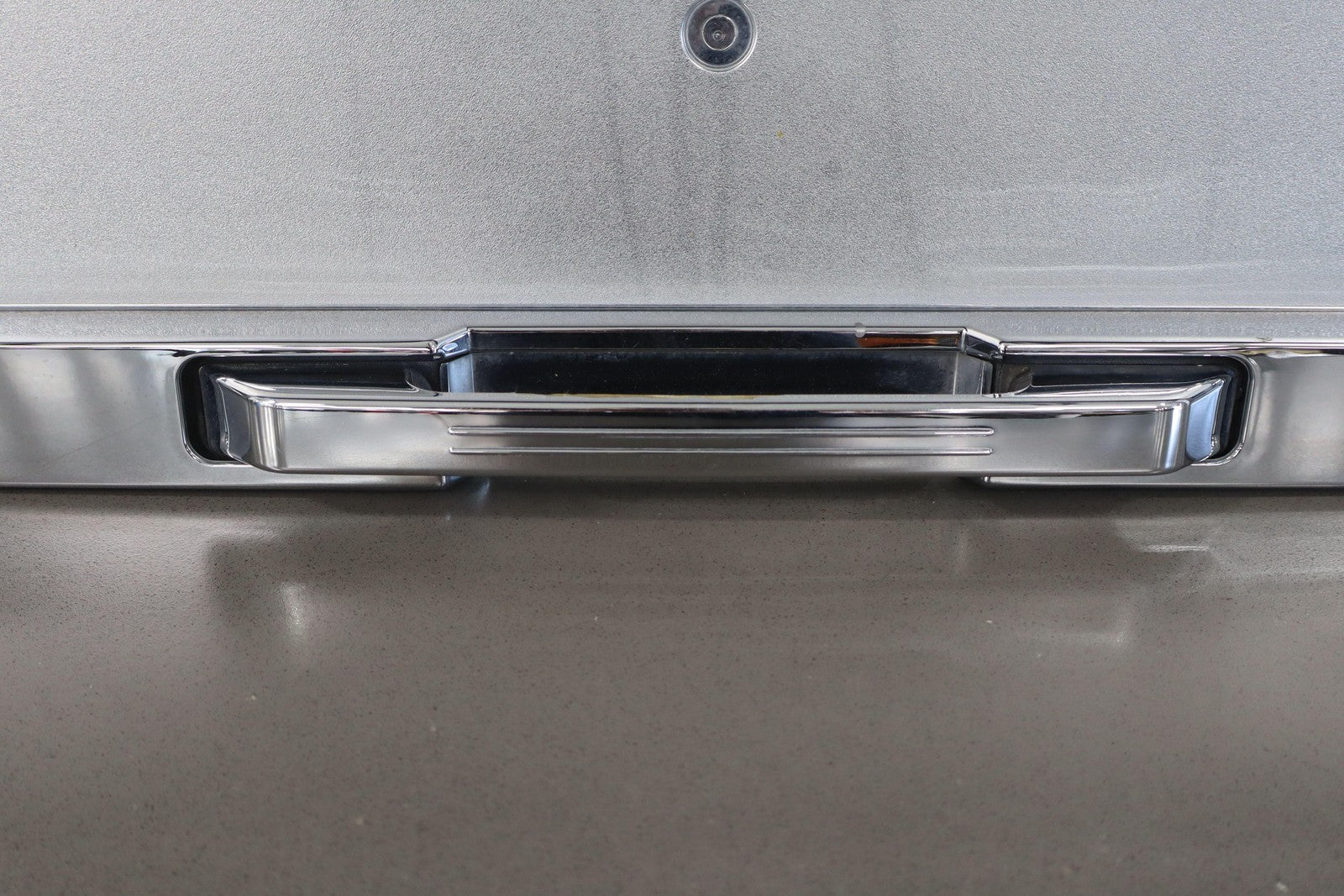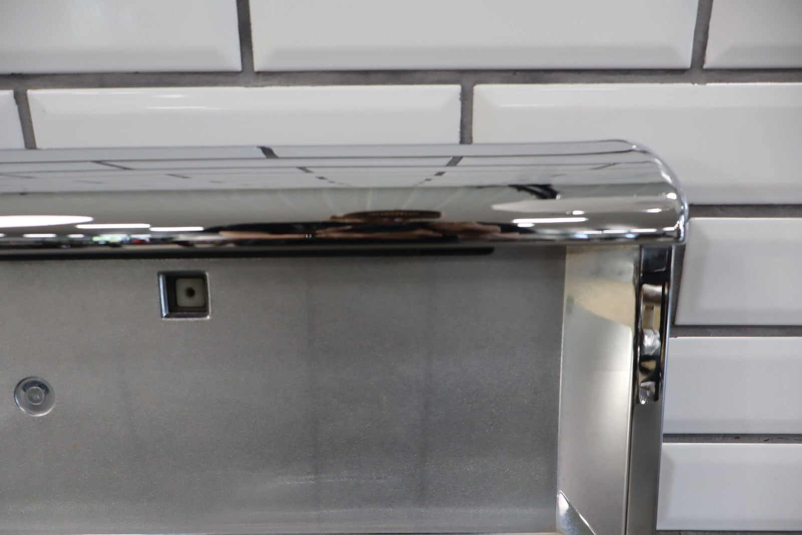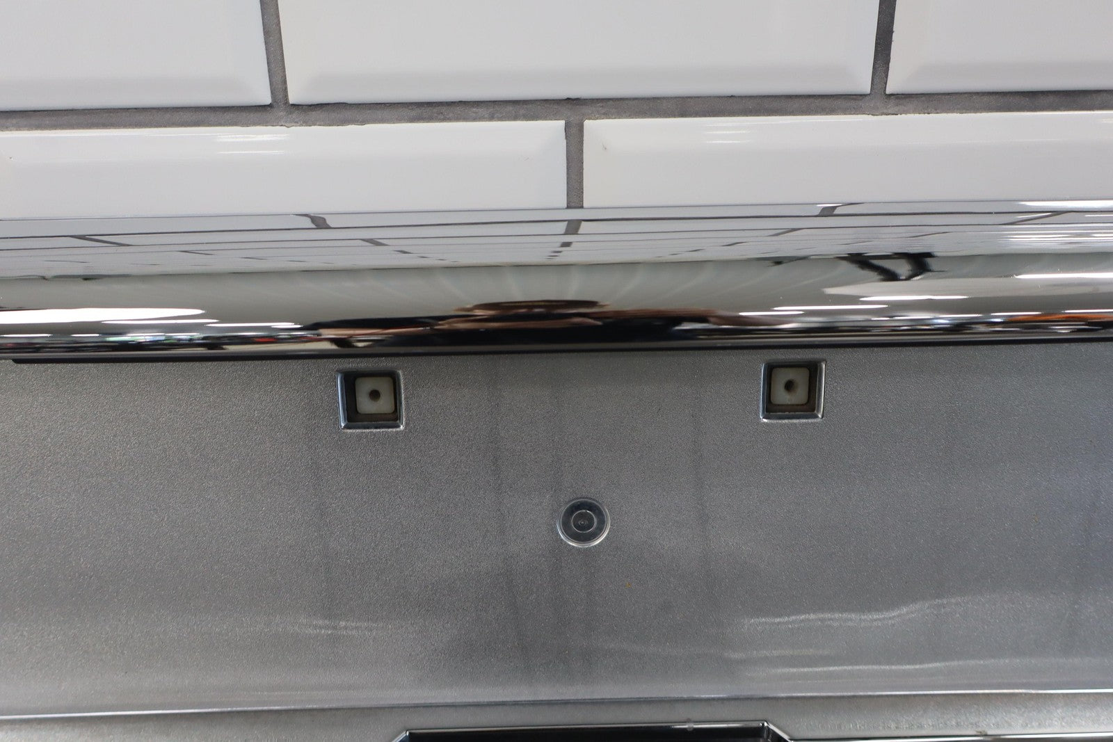 Aftermarket Chrome Tail Finish Panel, Minor Weathering, 1 Missing Tab (red)