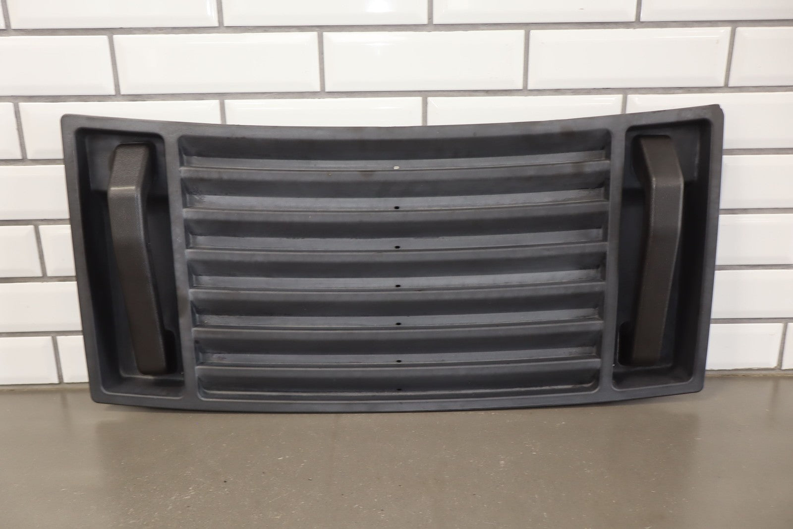 Oem Upper Hood Grill, Black Textured Plastic, Includes Handles, Mild Sun Fade, Chipped Corner (red)