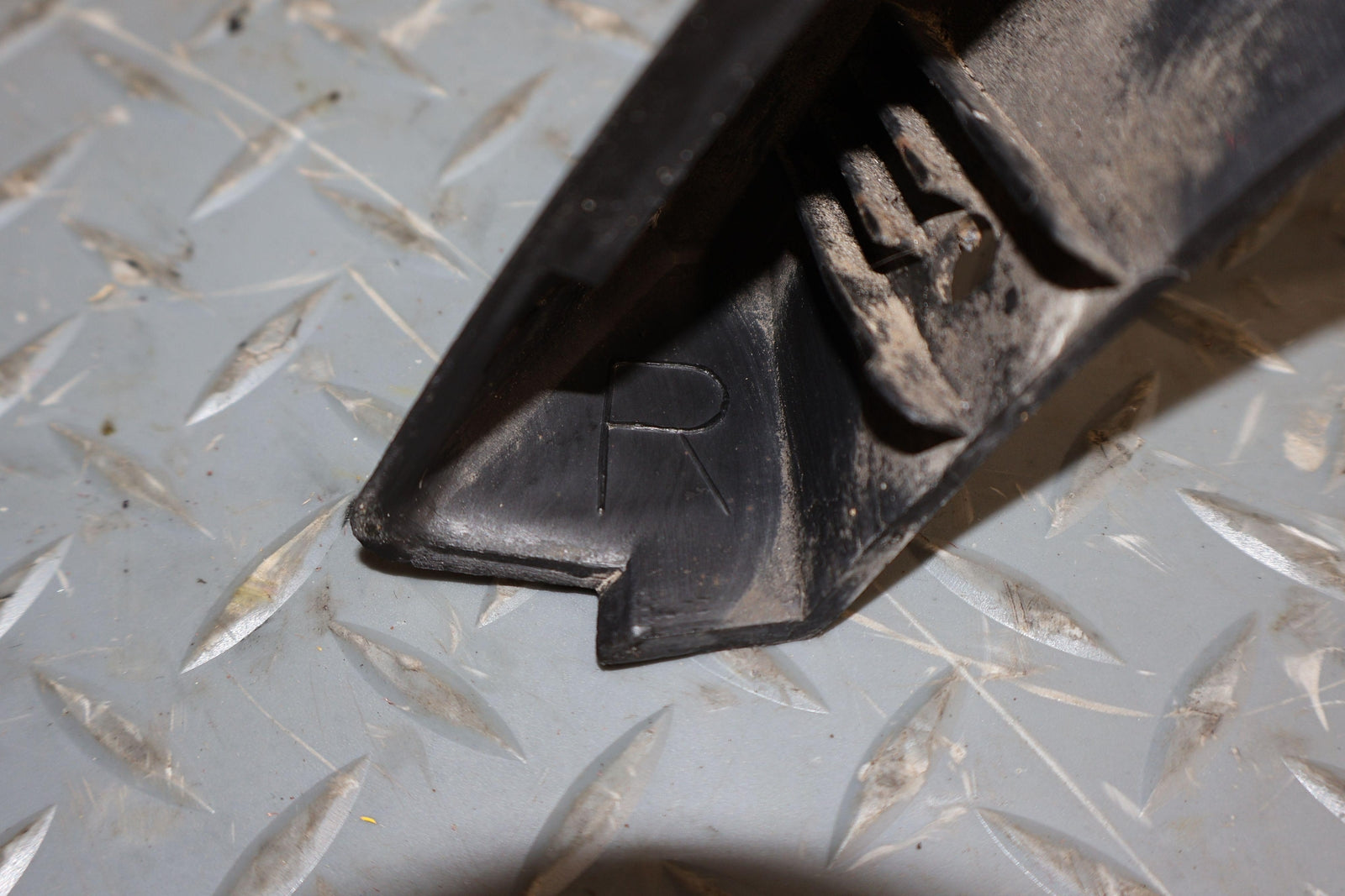 Rh Front Flare (hood Mounted), Black Textured Plastic, Mild Sun Fade, Light Scuffs/scratches, Mounted Solid