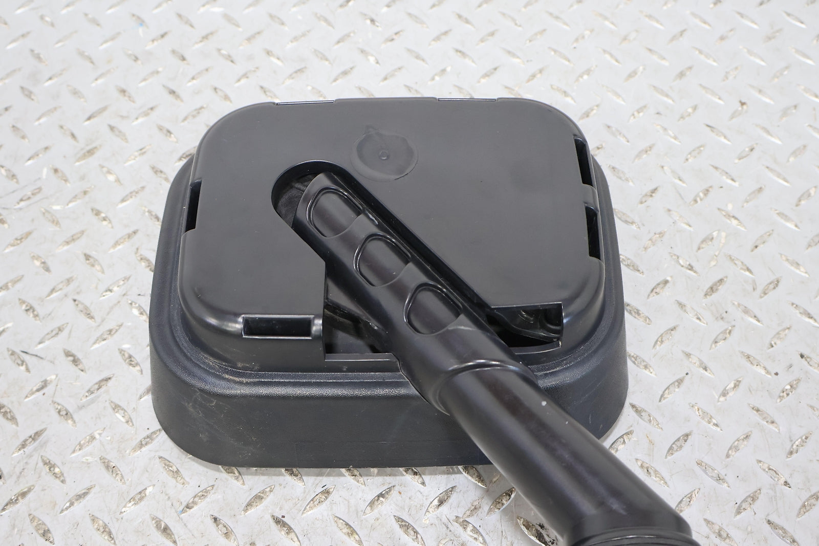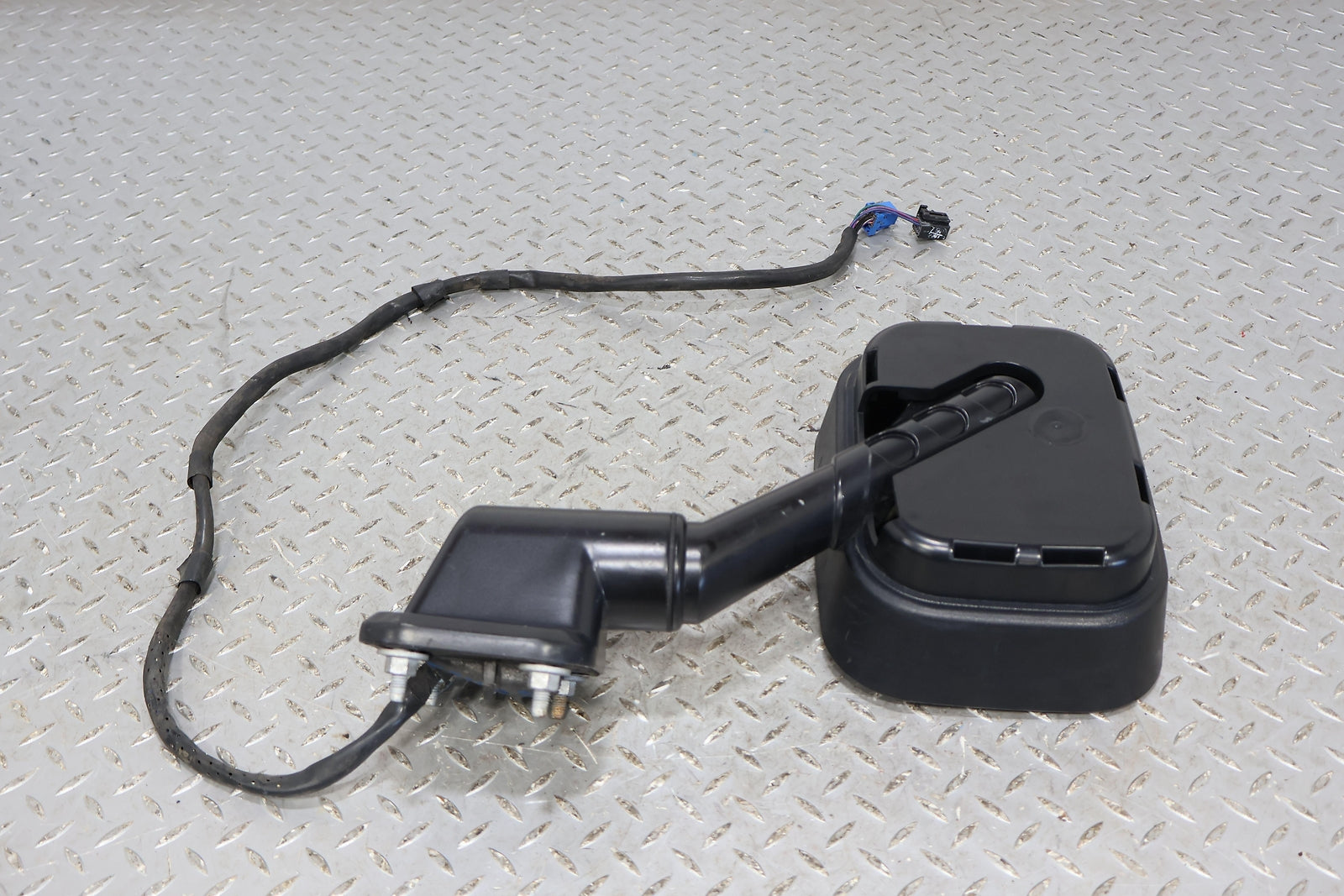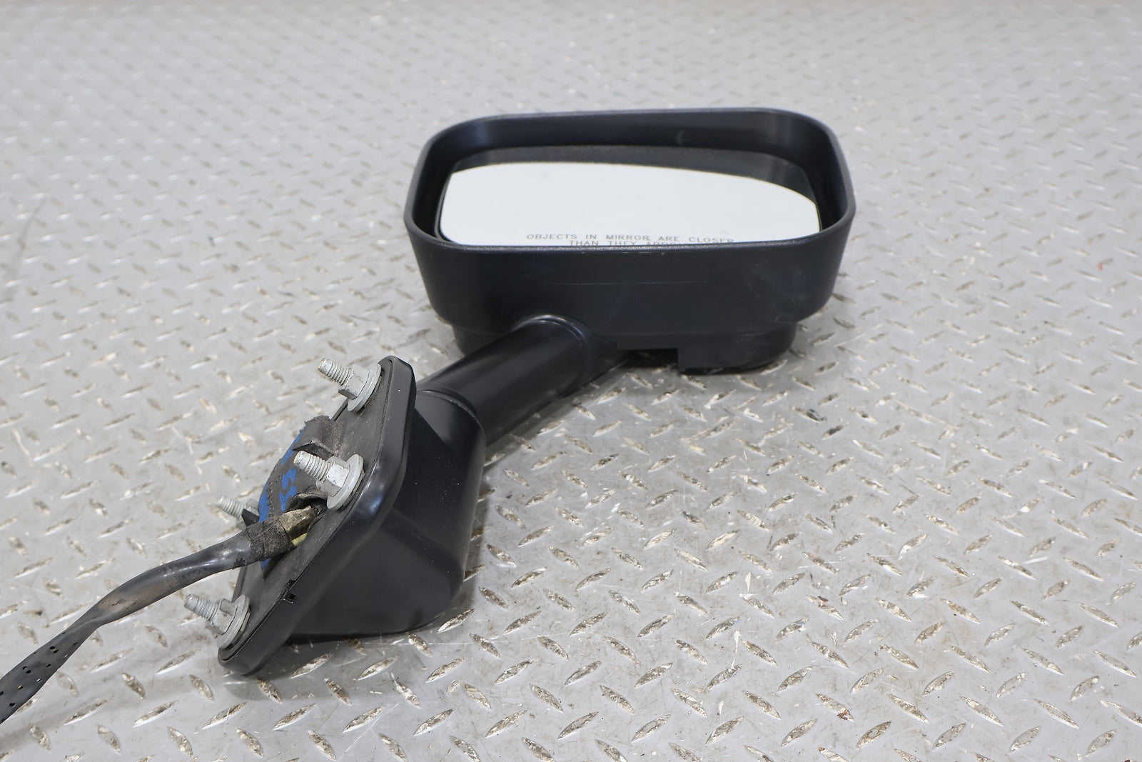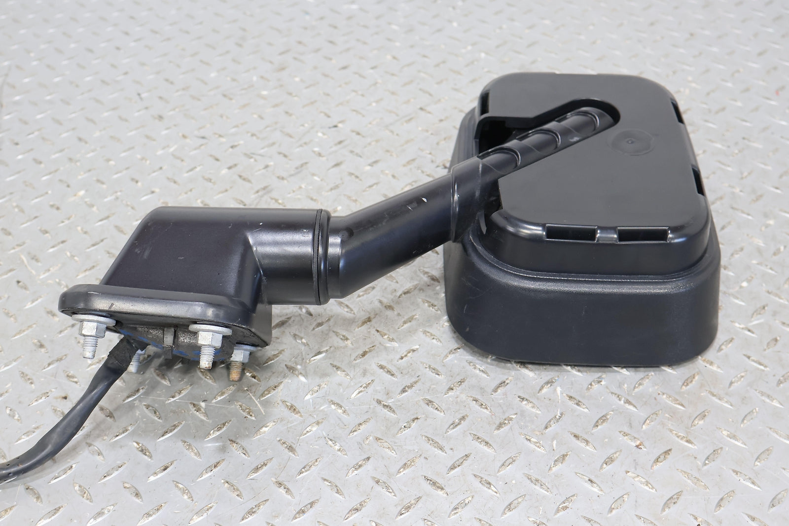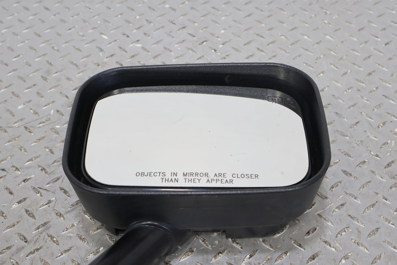 Rh, Black Textured Plastic, Missing Cap, Clean Mirror Glass, Functions Properly, Mounted Solid