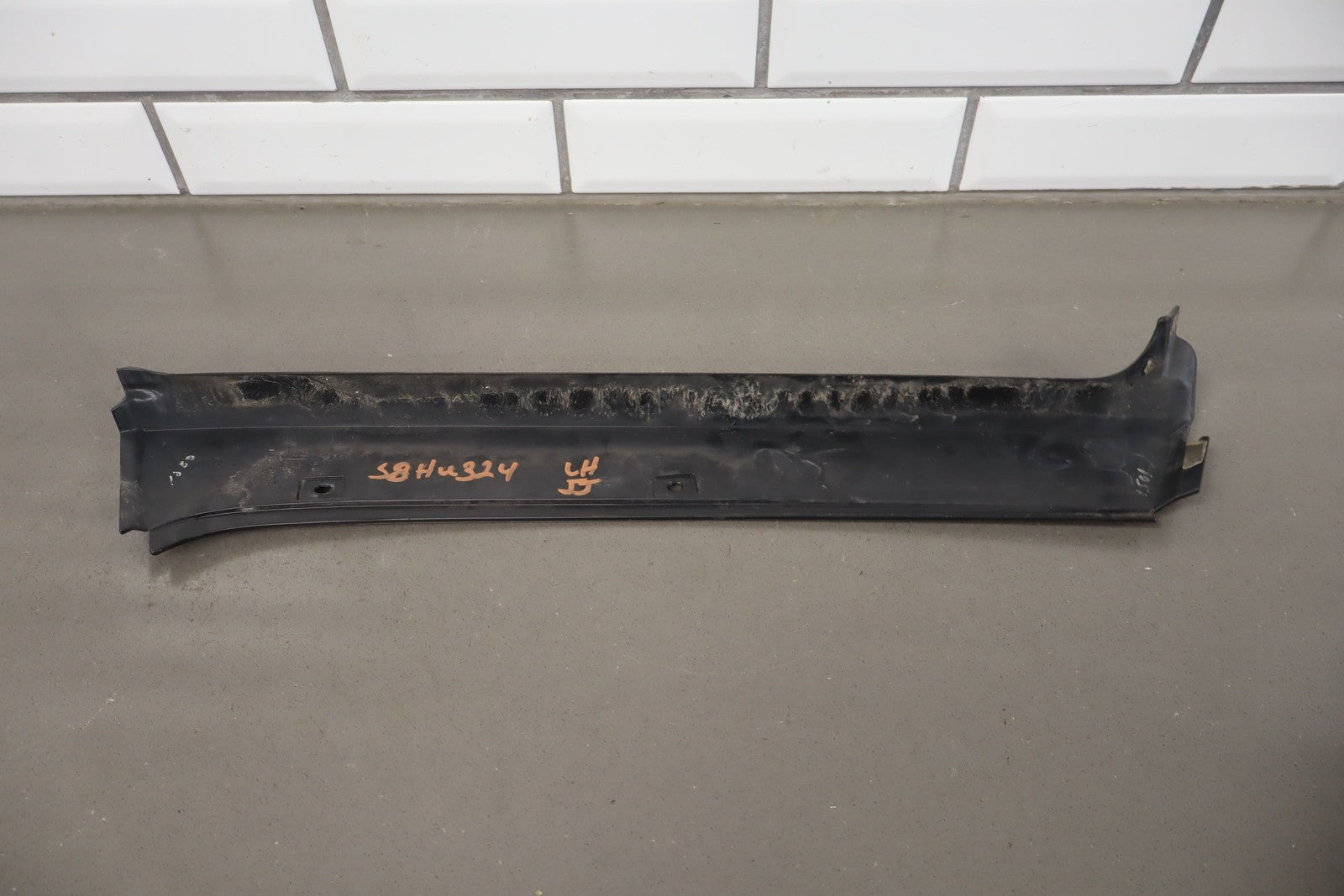 Lh Exterior A Pillar Trim, Black Textured Plastic, Mild Sun Fade, 25869091