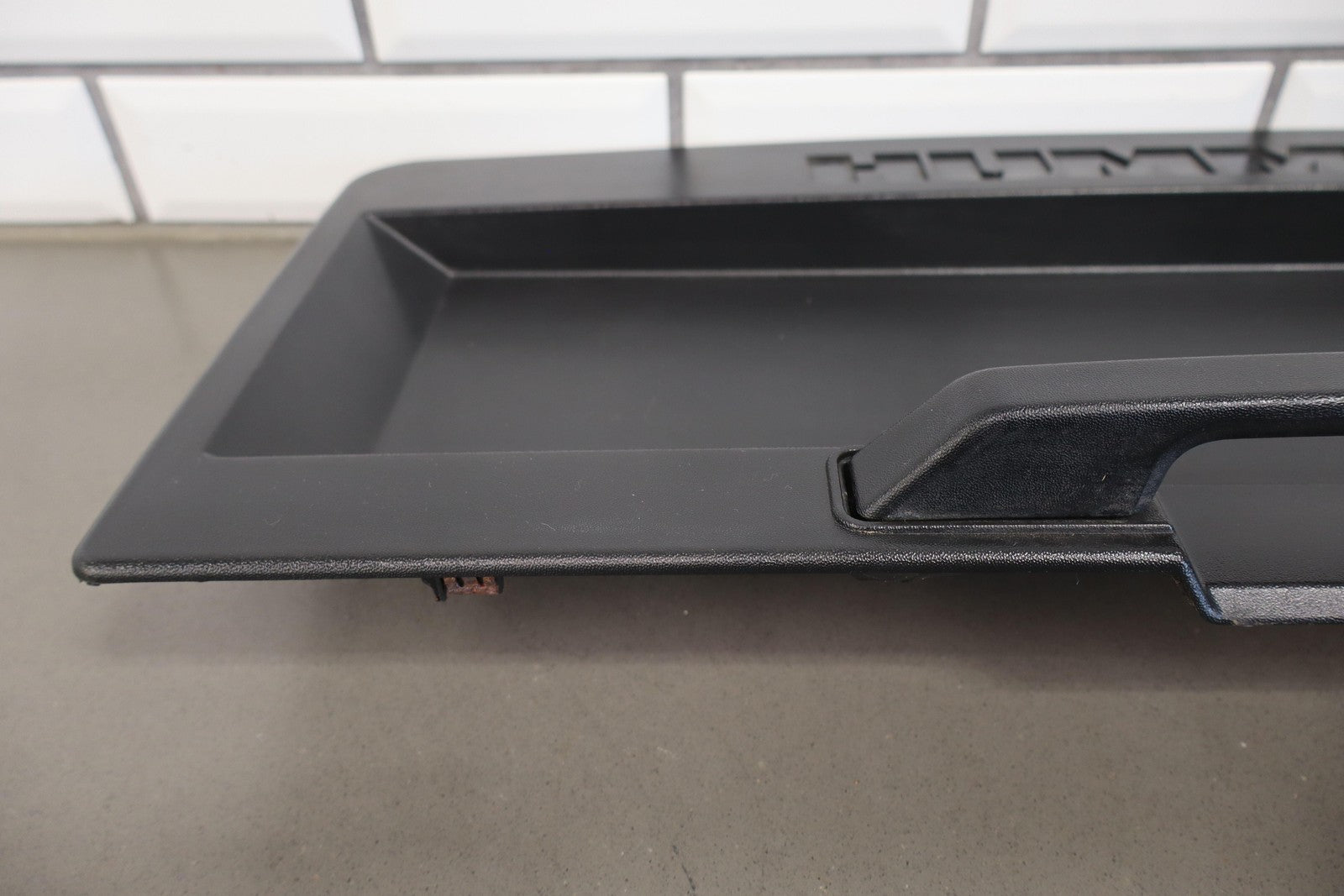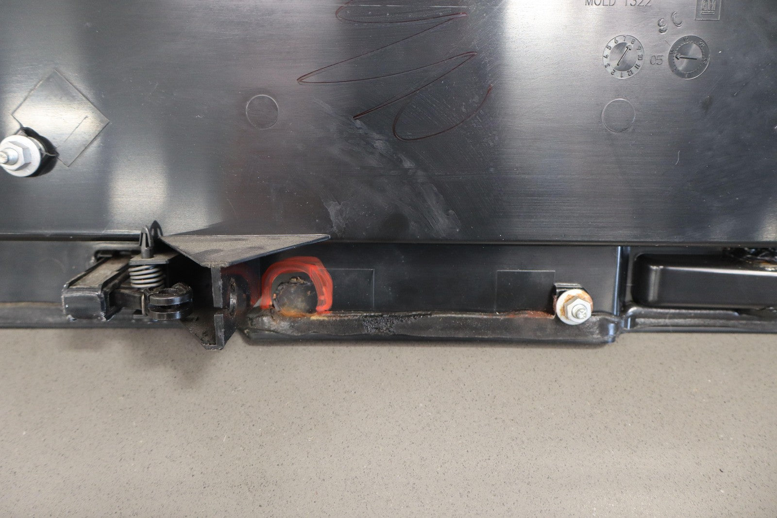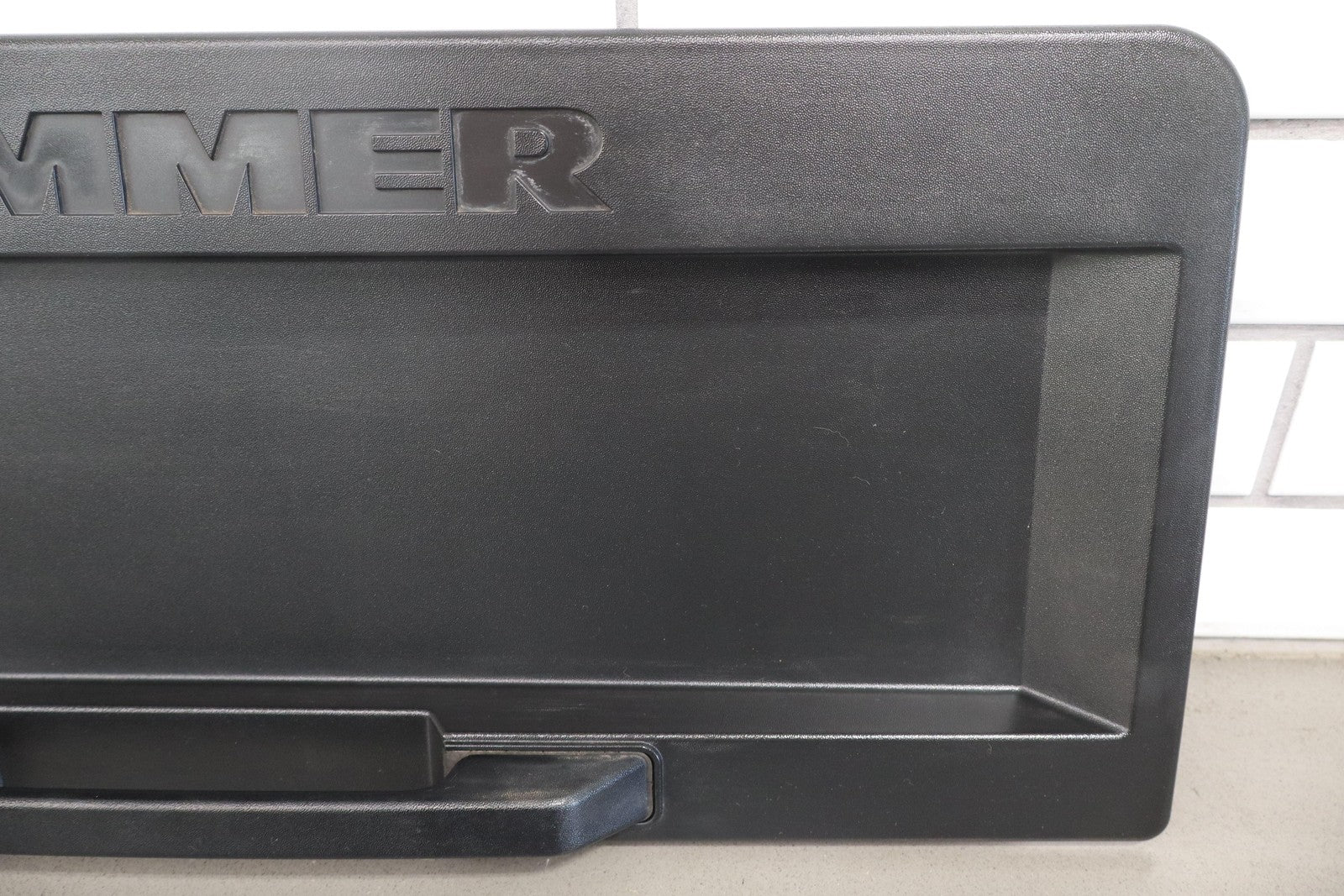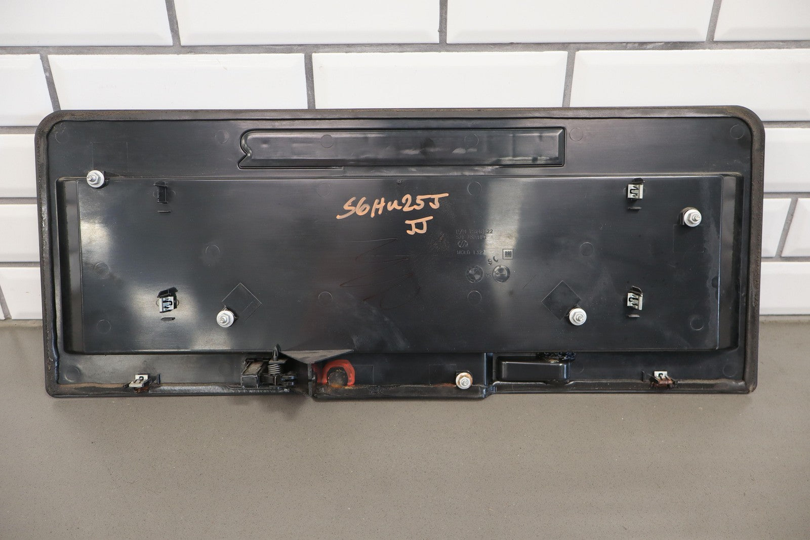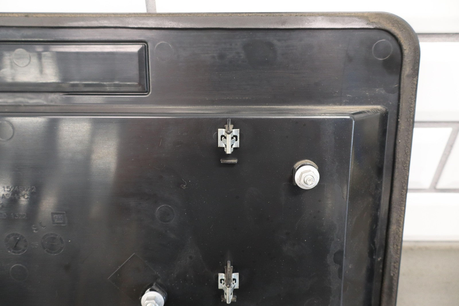 Black Textured Plastic, No License Place Mounts, Light Sun Fade, 1 Missing Tab (red)
