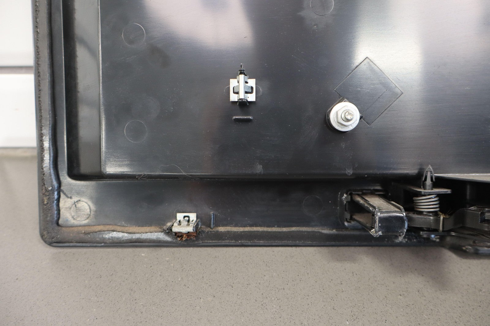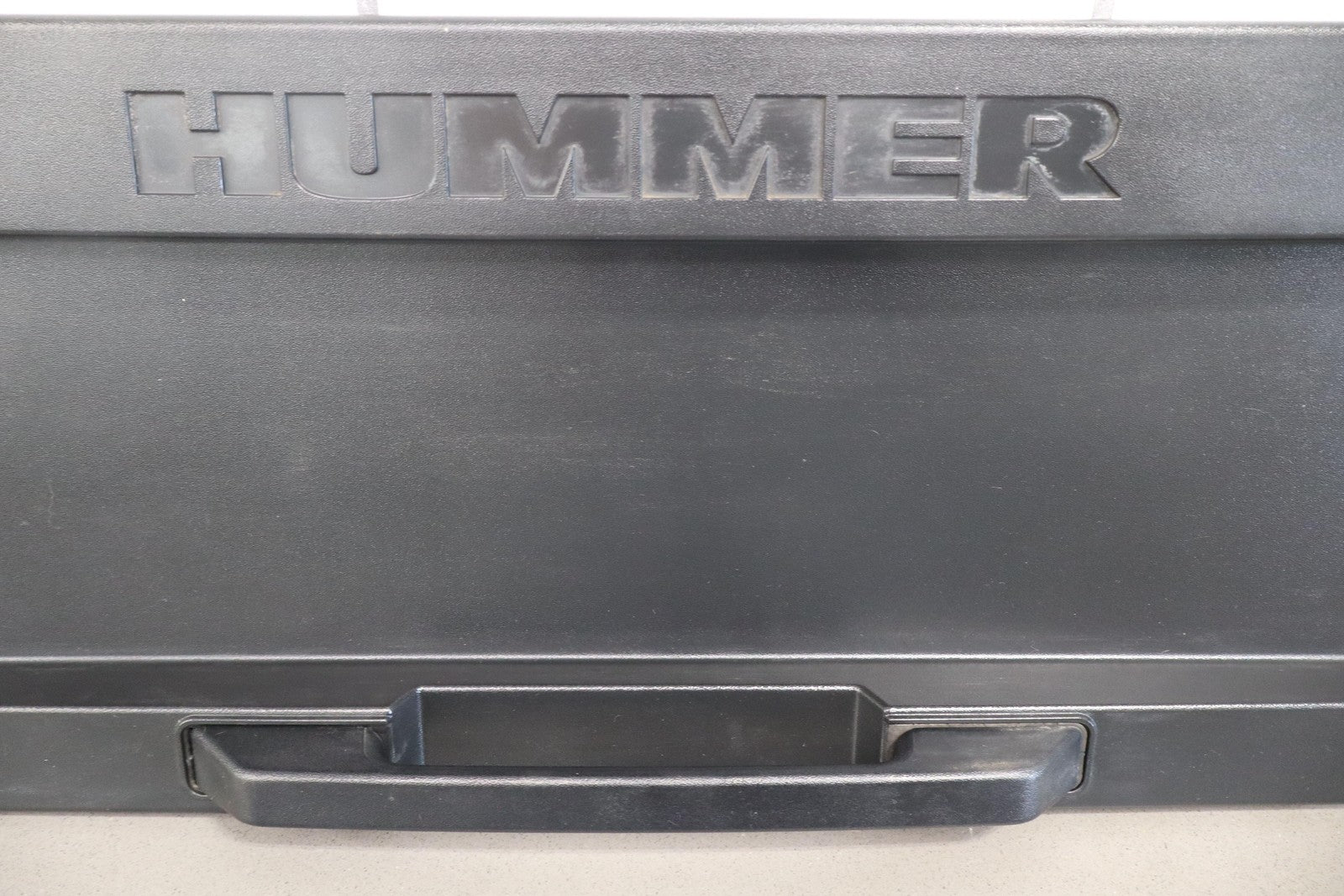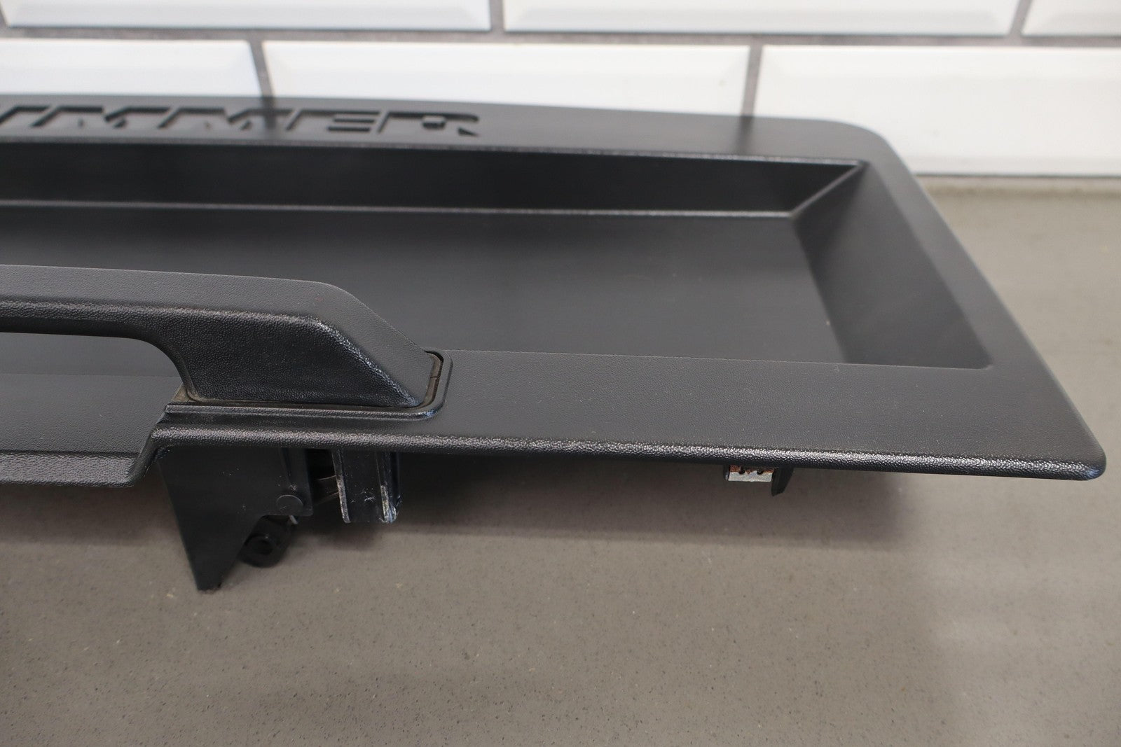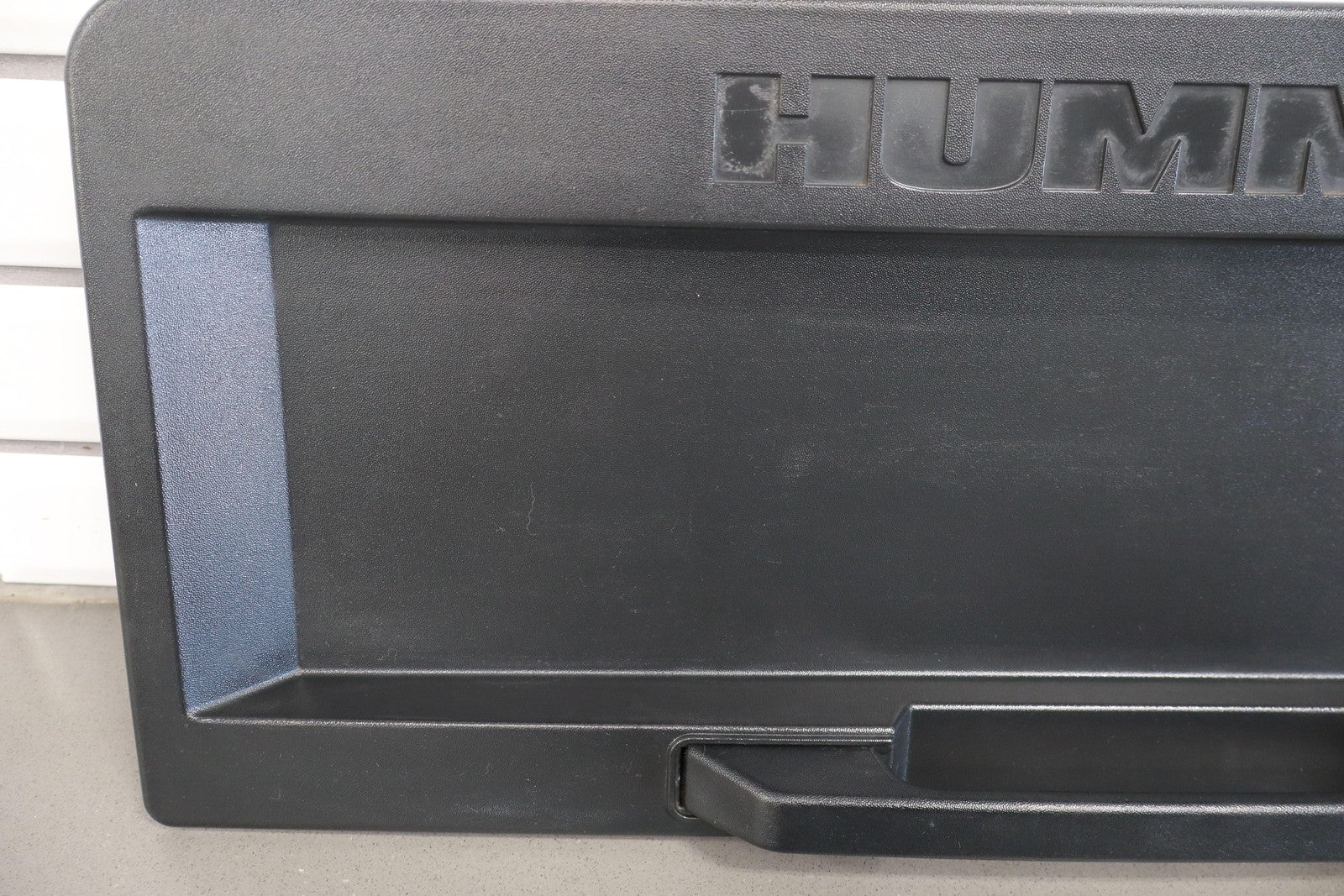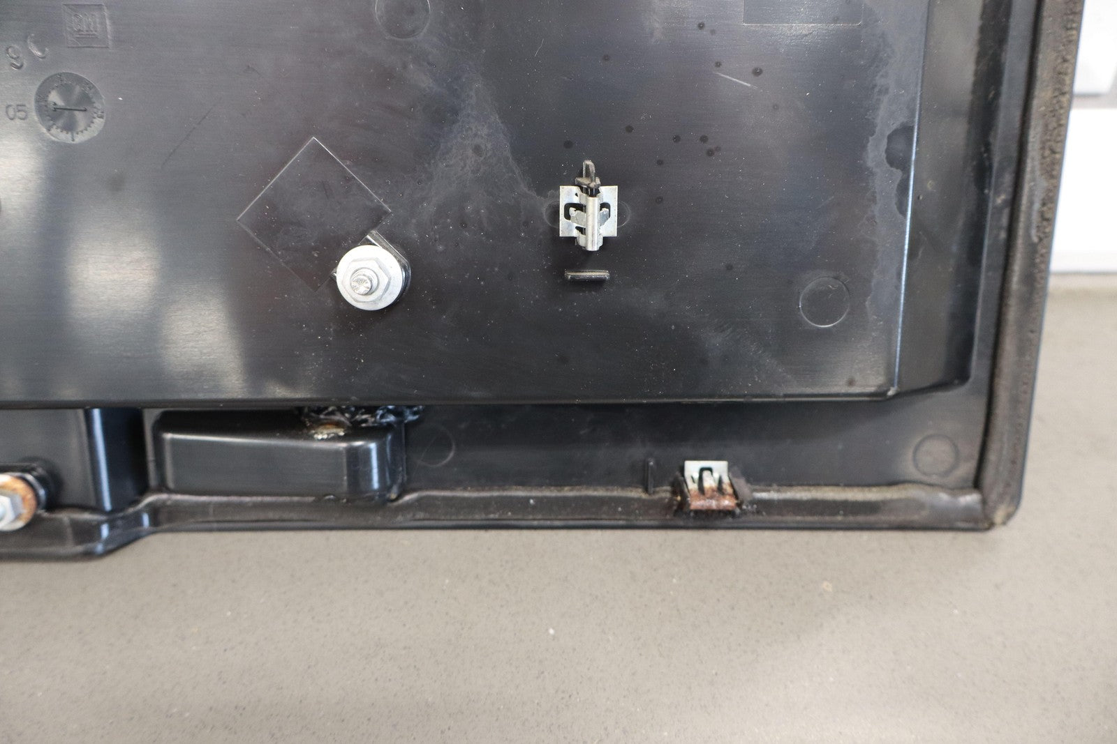 Black Textured Plastic, No License Place Mounts, Light Sun Fade, 1 Missing Tab (red)