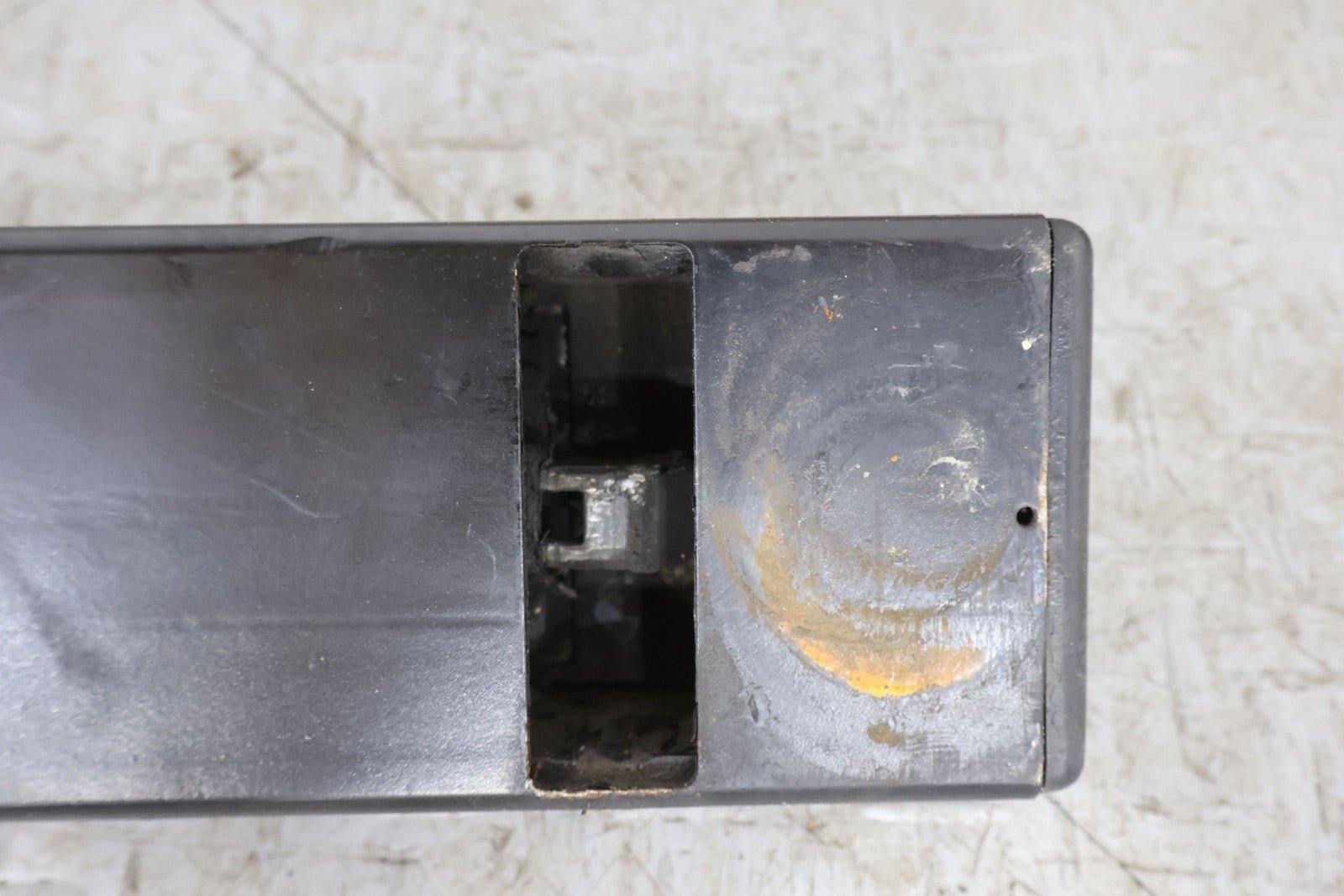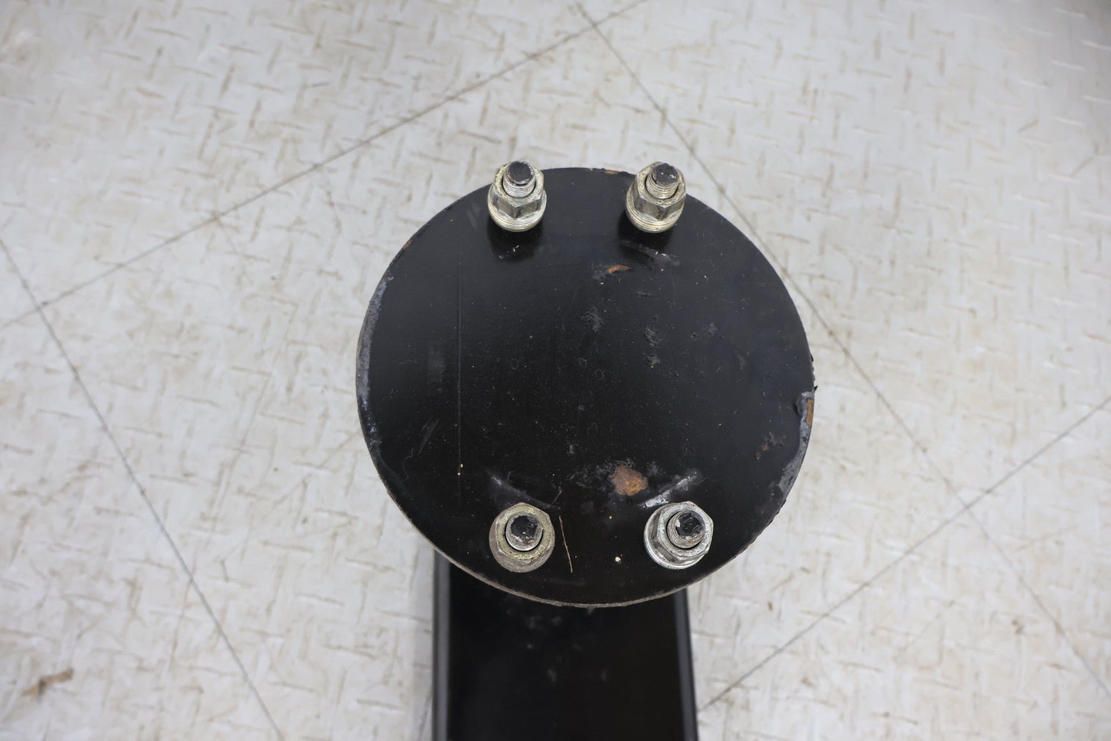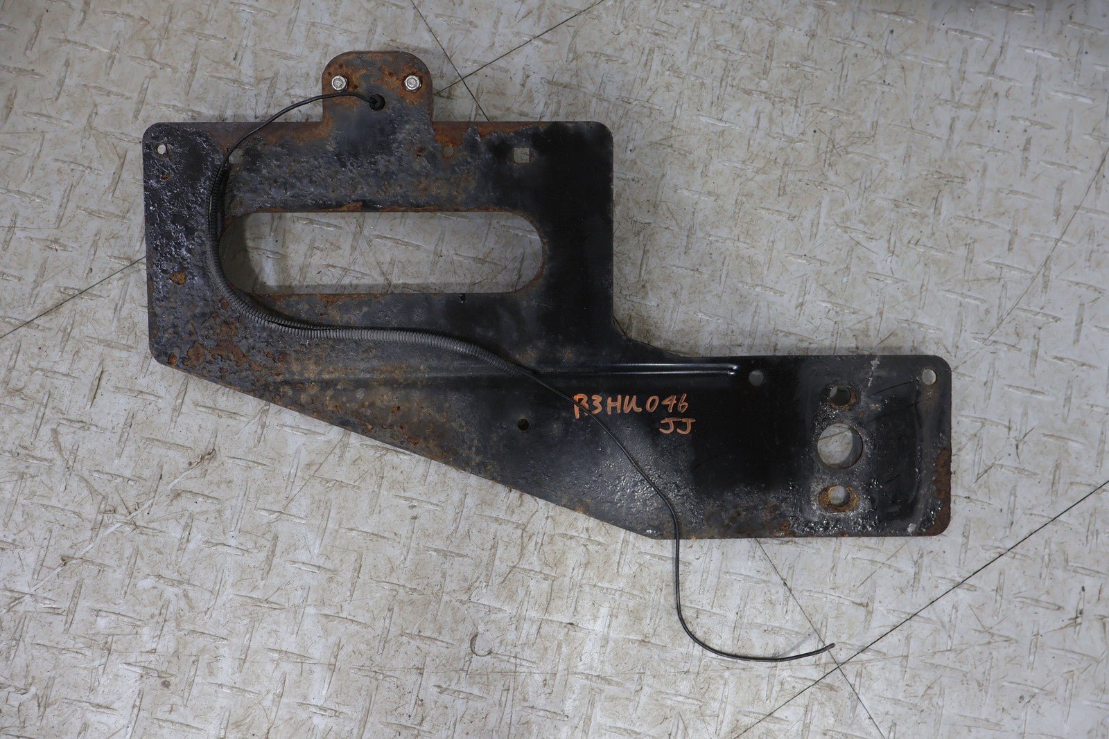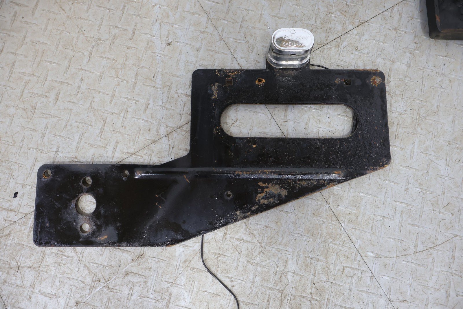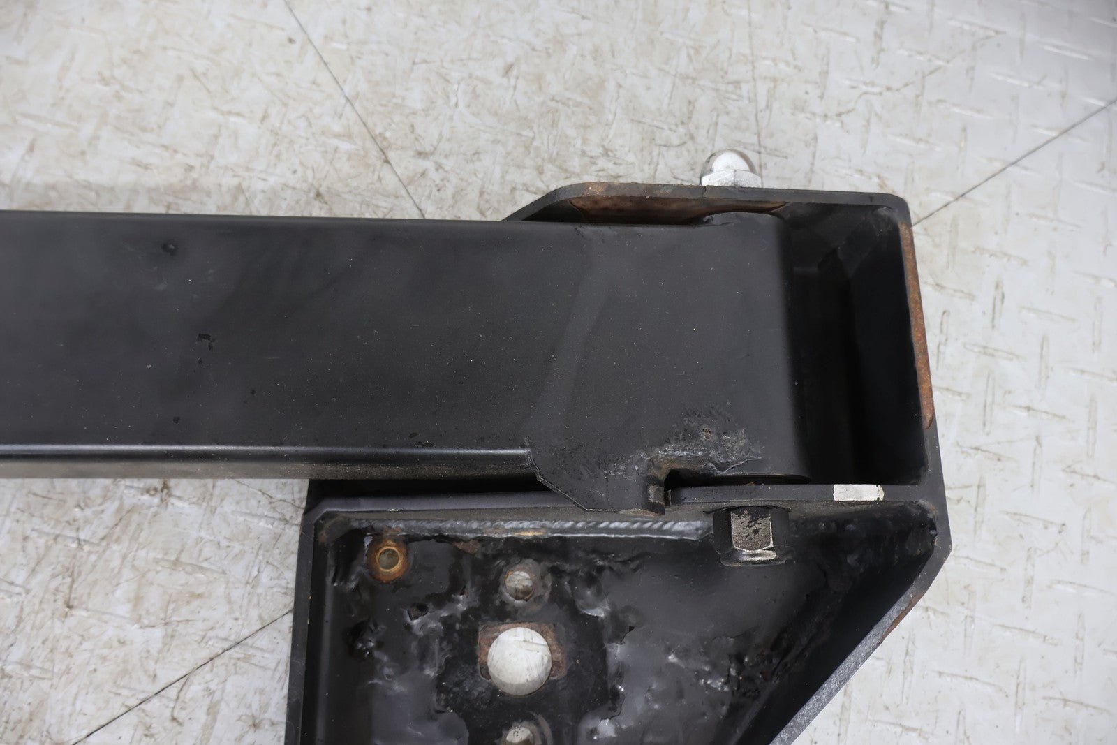 Aftermarket Exterior Spare Tire Carrier, Lightly Weathered Finish, Minimal Surface Rust, Functions Properly, Mounted Solid