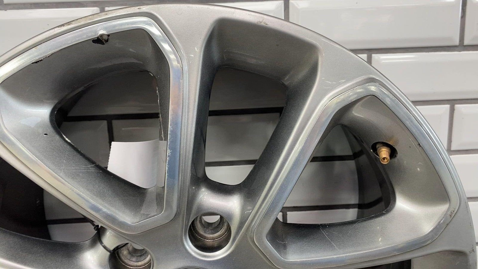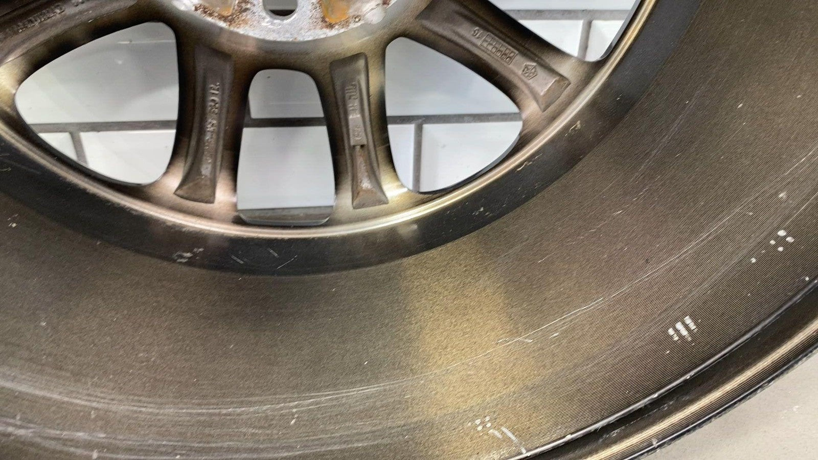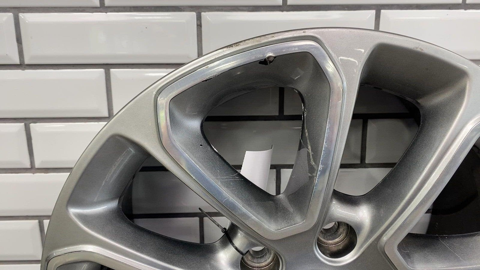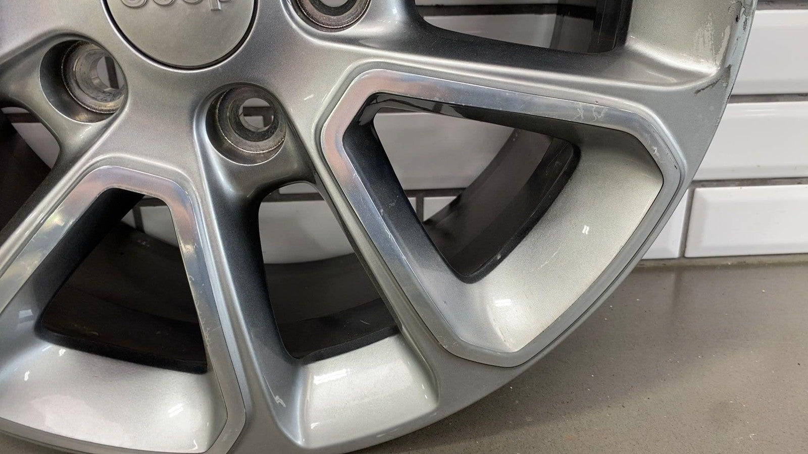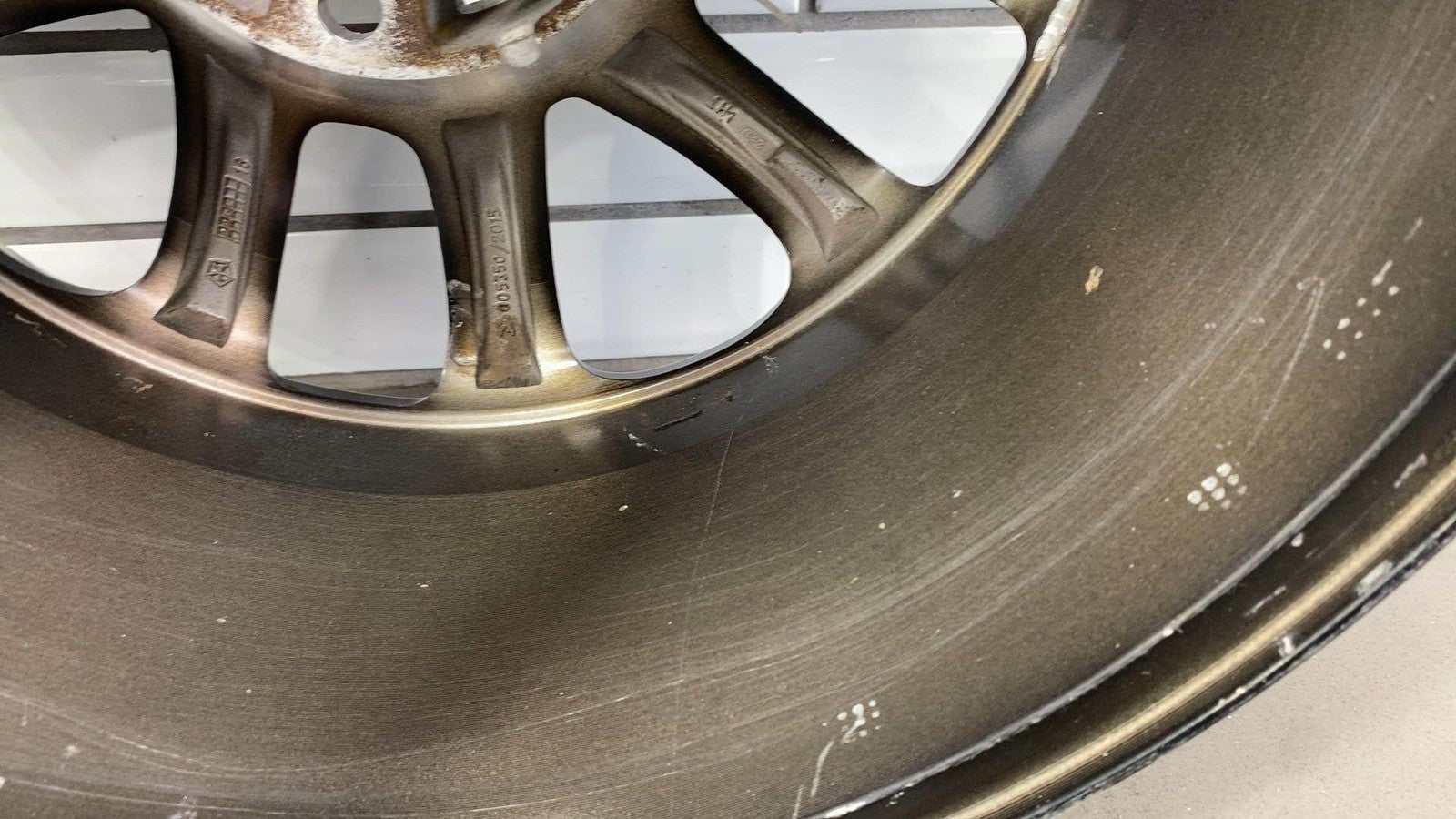 Important notes: Lh Front, 18x8 Aluminum, Polished W/painted Pockets, W/o 75th Pkg, Clearcoat Issues, Decent Knicks & Chipping