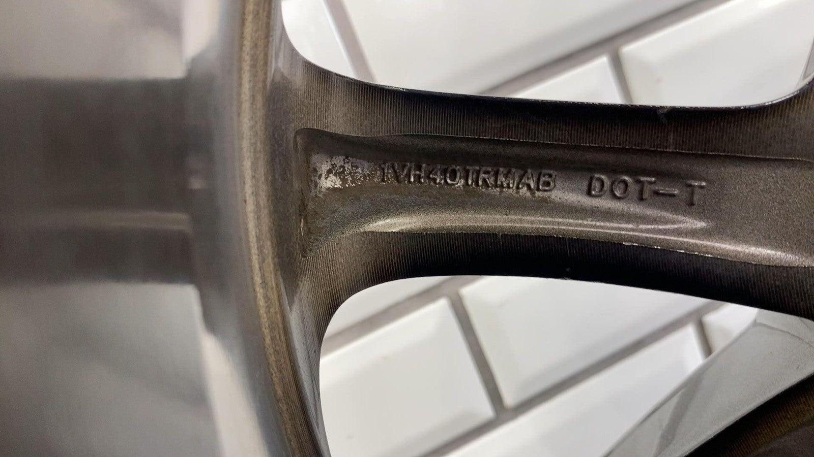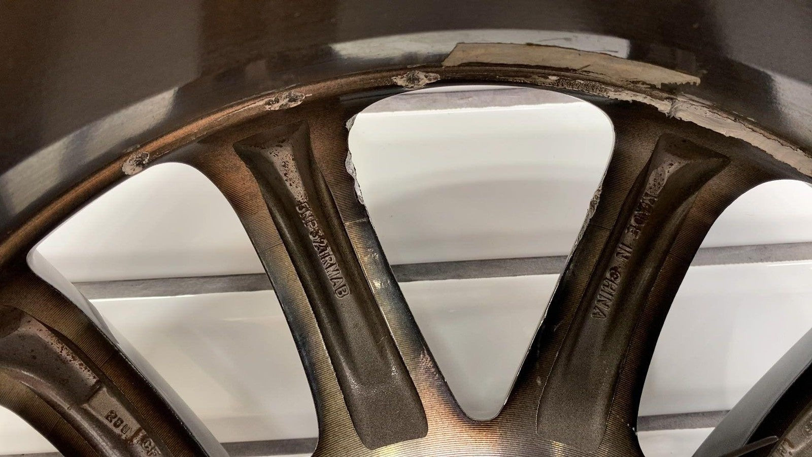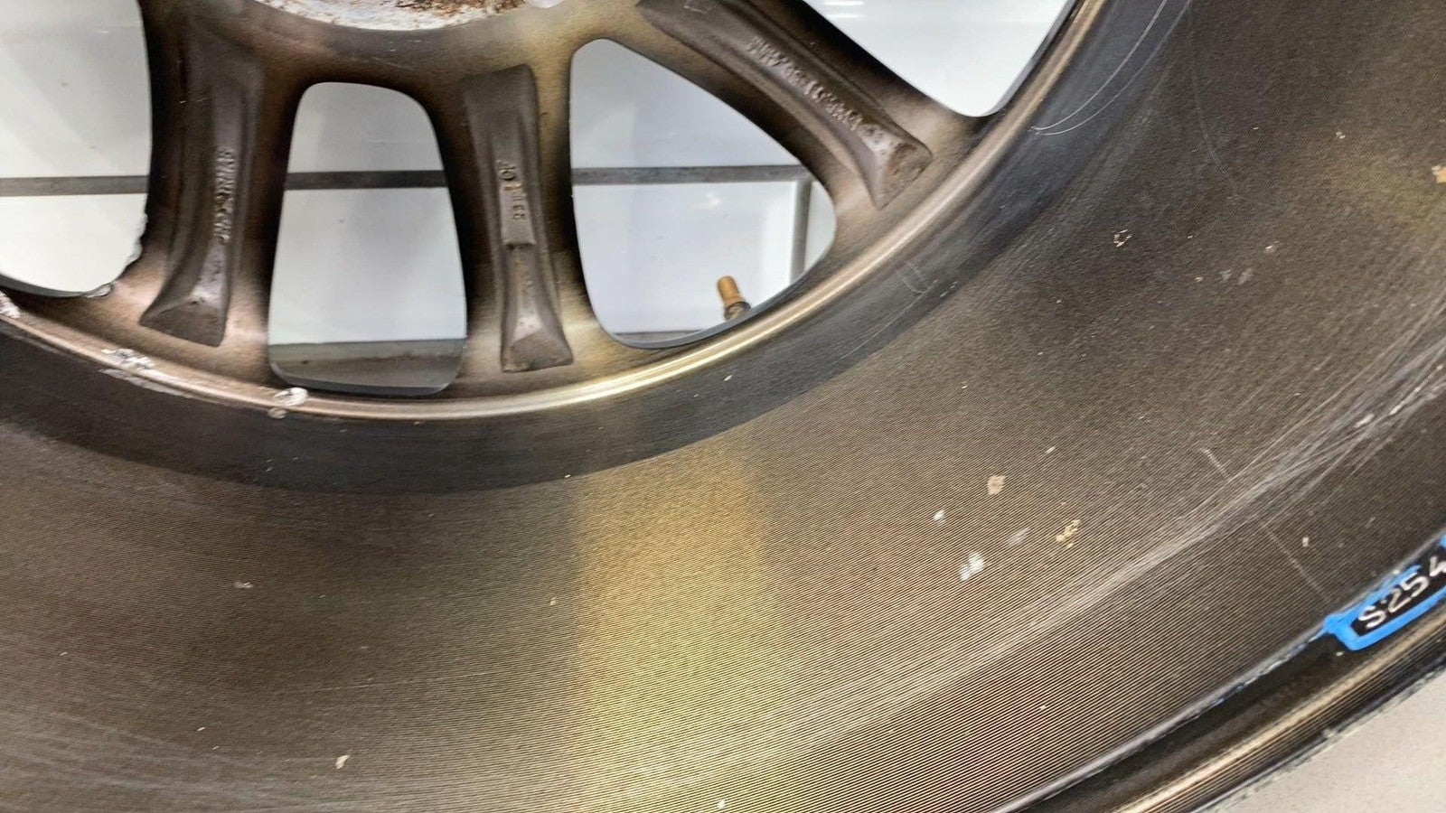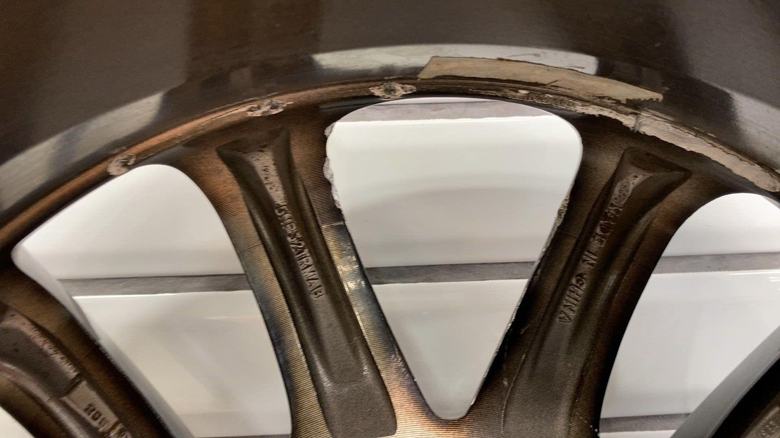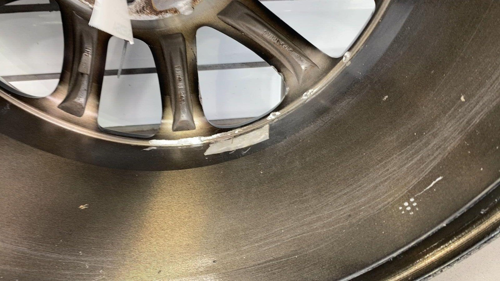 Important notes: Lh Front, 18x8 Aluminum, Polished W/painted Pockets, W/o 75th Pkg, Clearcoat Issues, Decent Knicks & Chipping