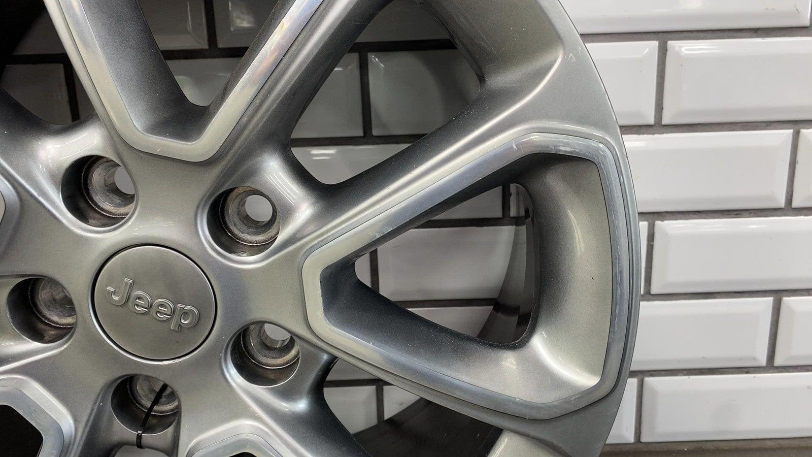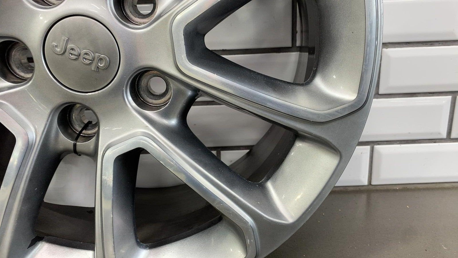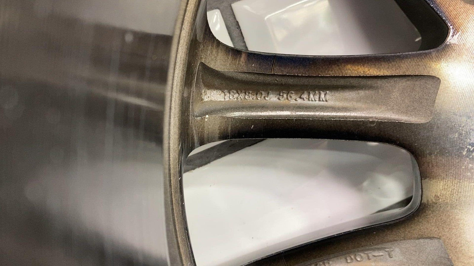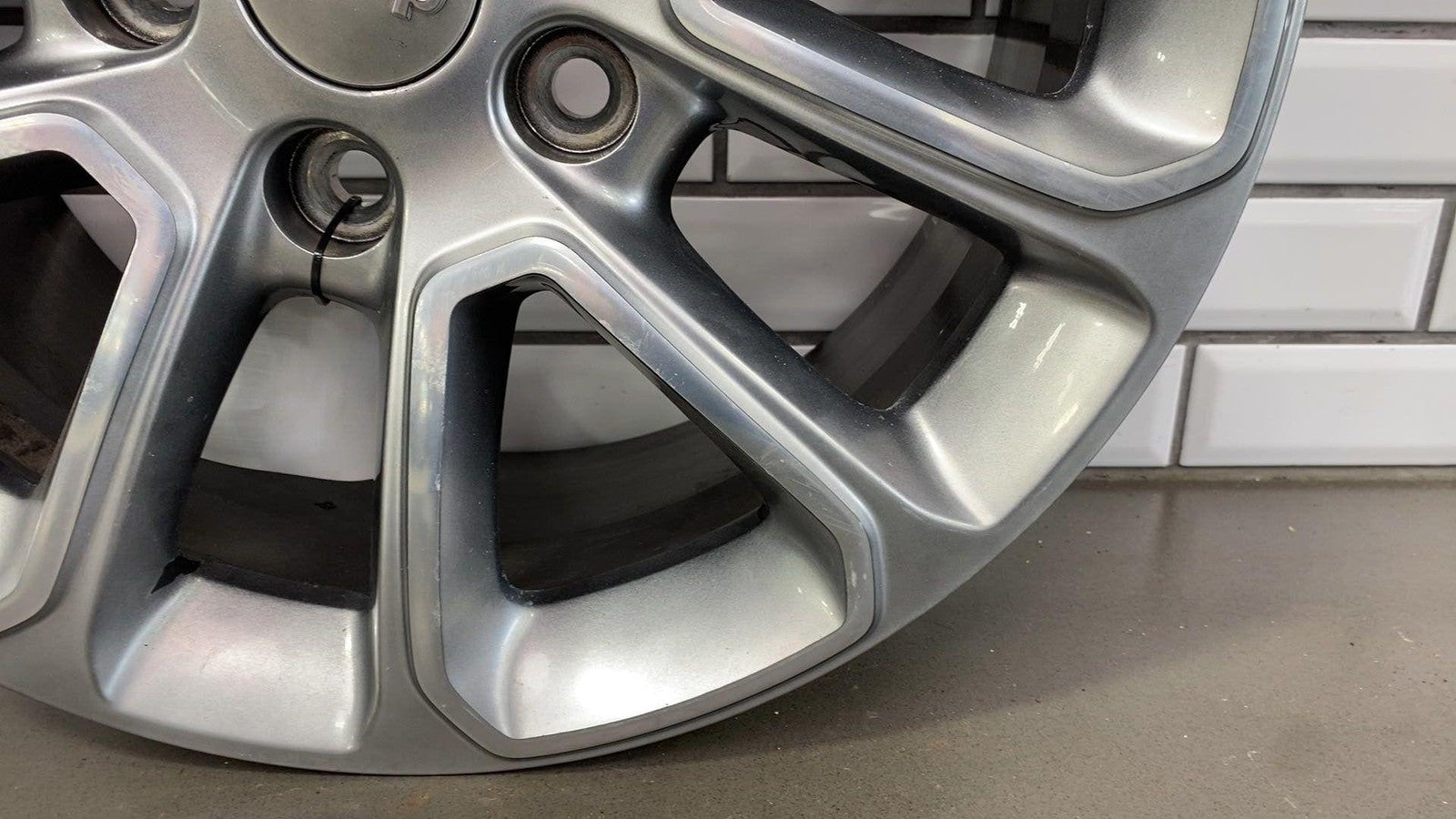 Lh Rear, 18x8 Aluminum, Polished W/painted Pockets, W/o 75th Pkg,clearcoat Issues To Face, Couple Powder Coat Chips, Mild Scuffs