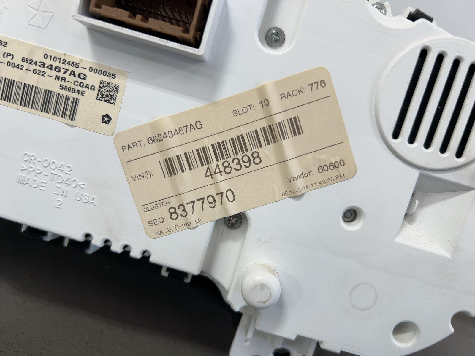 Important notes: Cluster, 7' Display, Us Market Mph, 5.7l, Id 68243467ag, (untested)