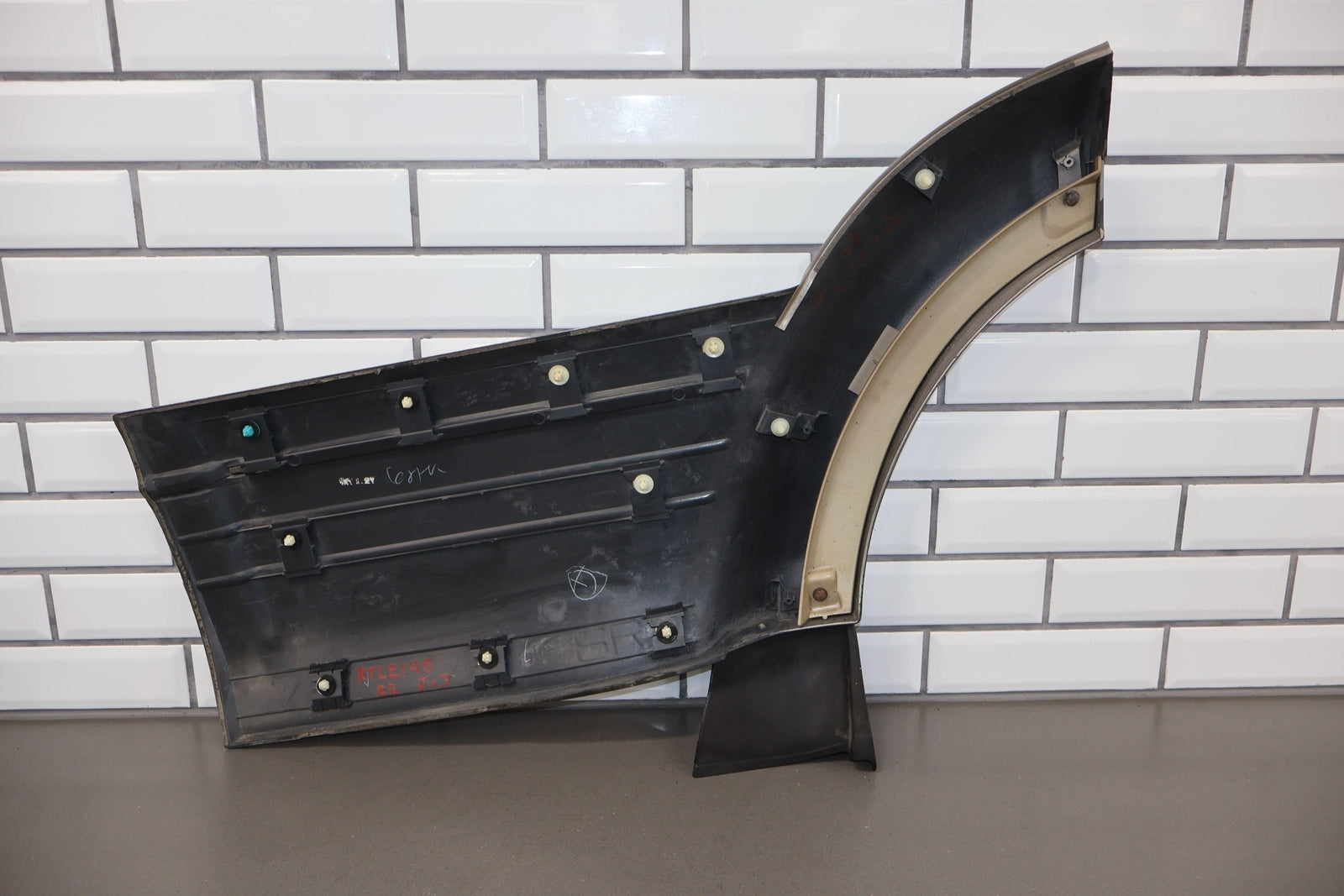 Rh Rear Door Moulding, Beige (4m9), Poor Respray, Multiple Knicks/paint Chips, Mild Scuffs/scratches, Mounted Solid