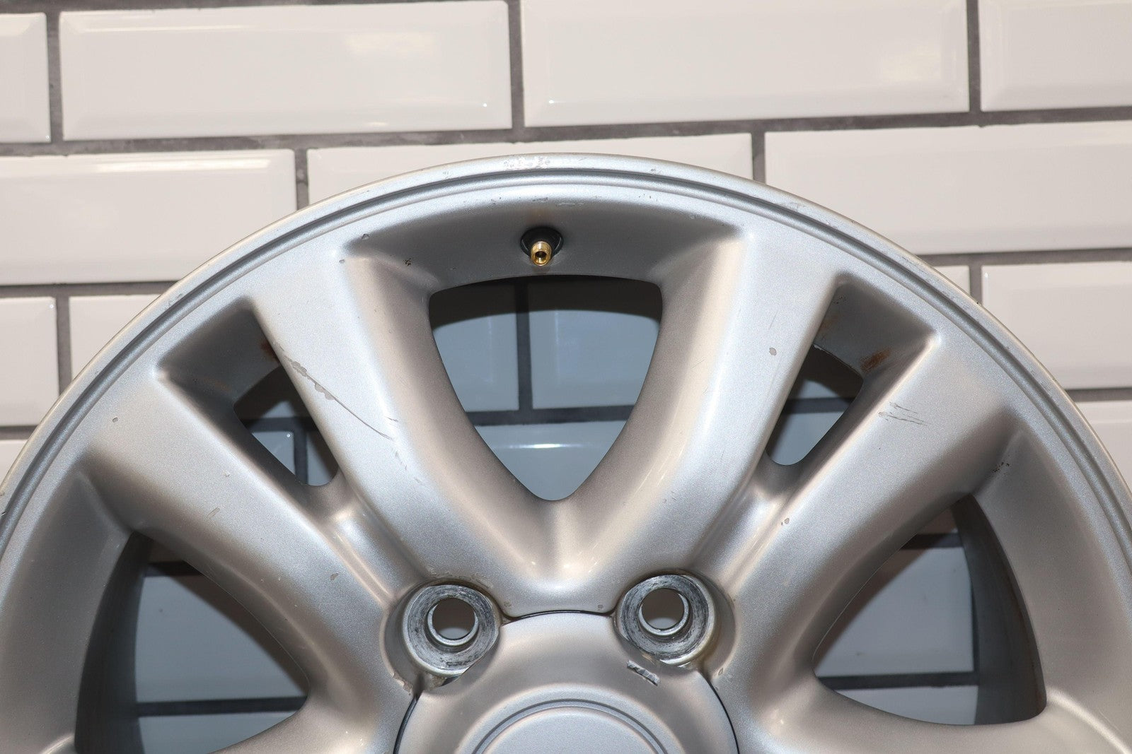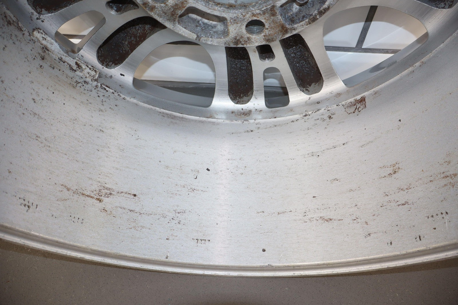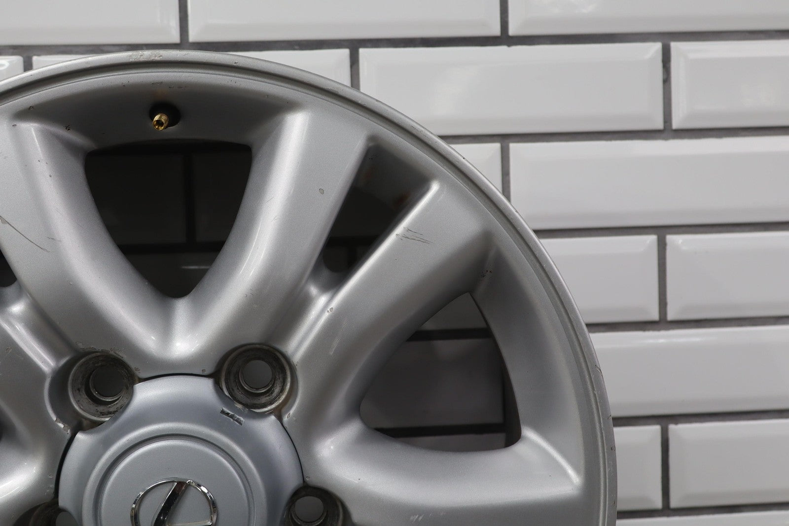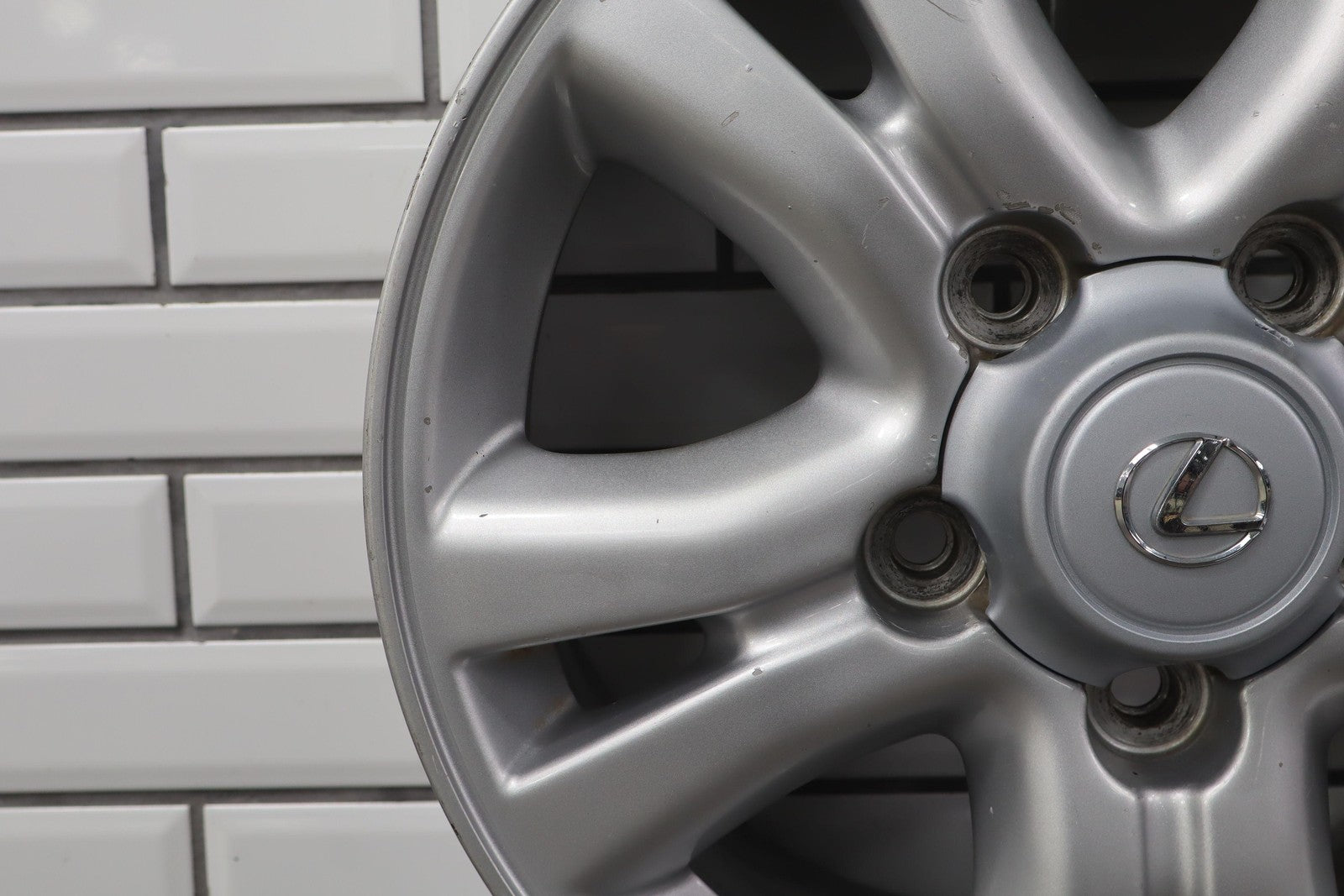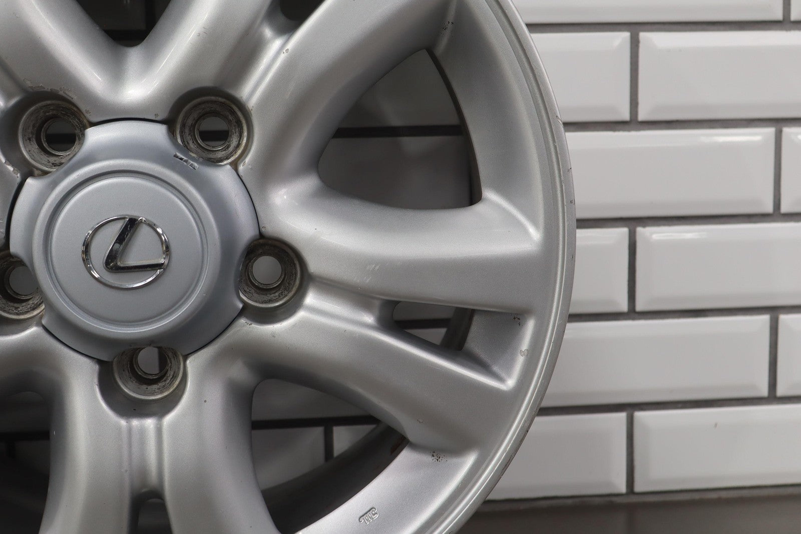 Rh Front, 18x8 Split 5 Spoke Wheel, Multiple Knicks To Face, Light Curb Rash, Spun True