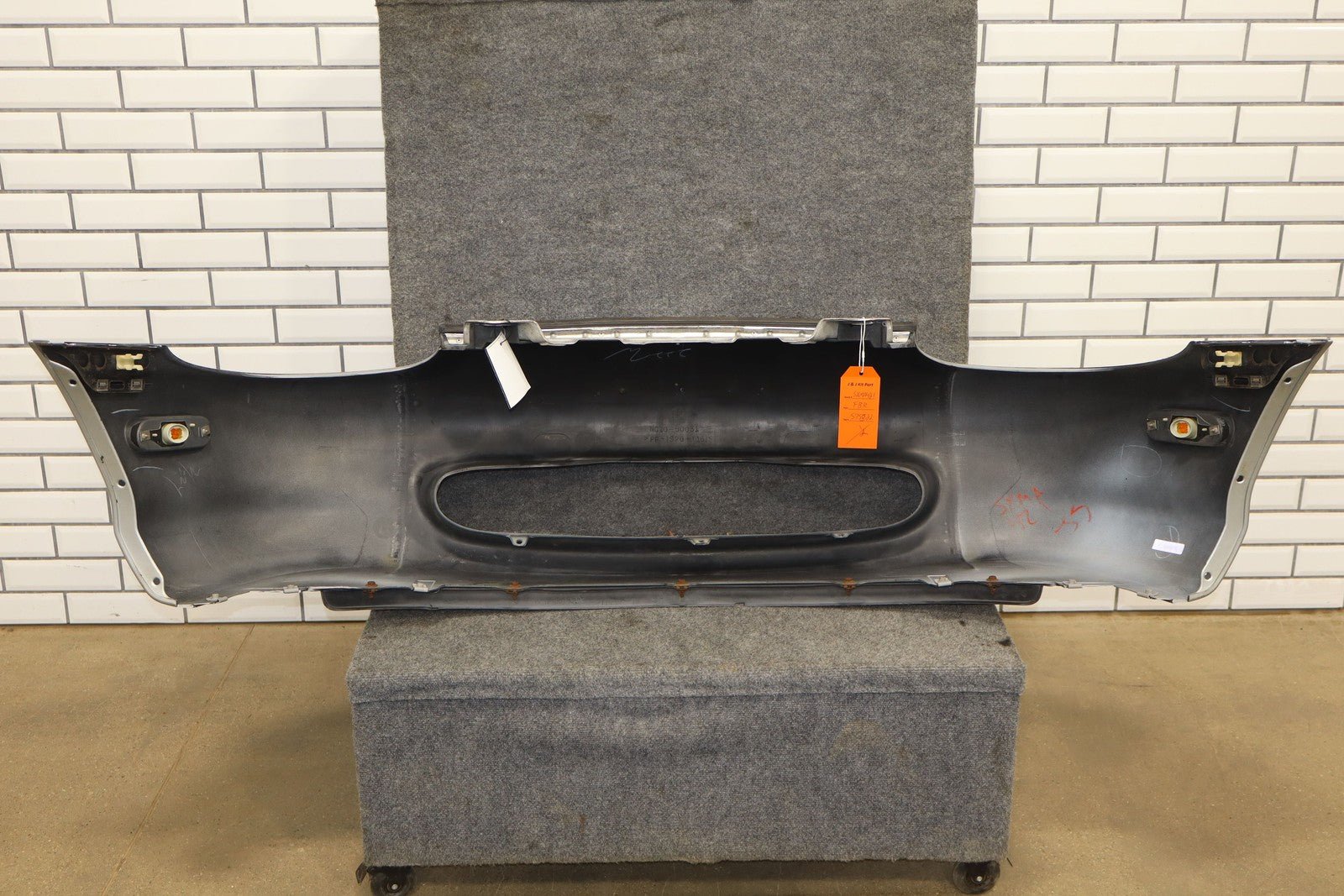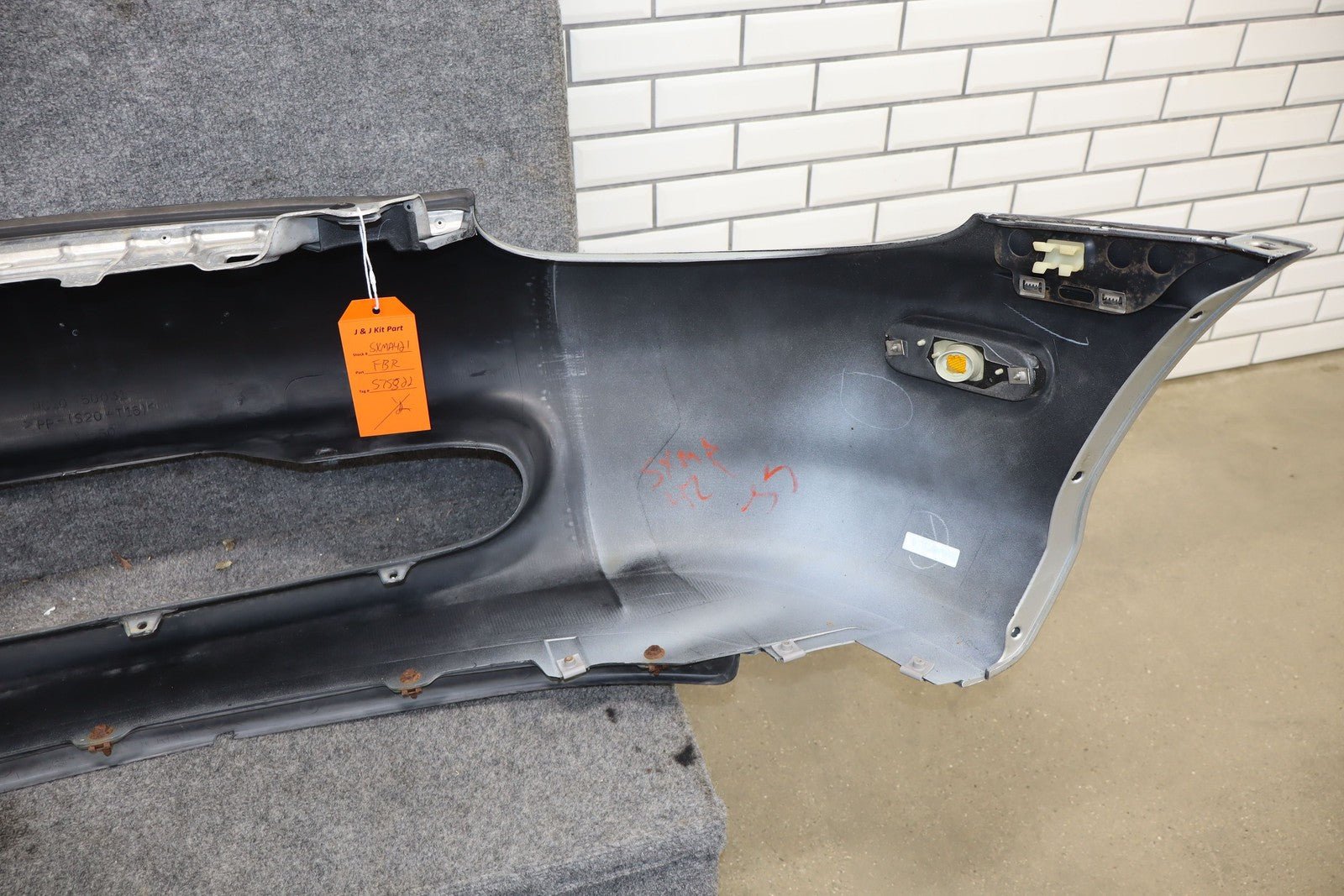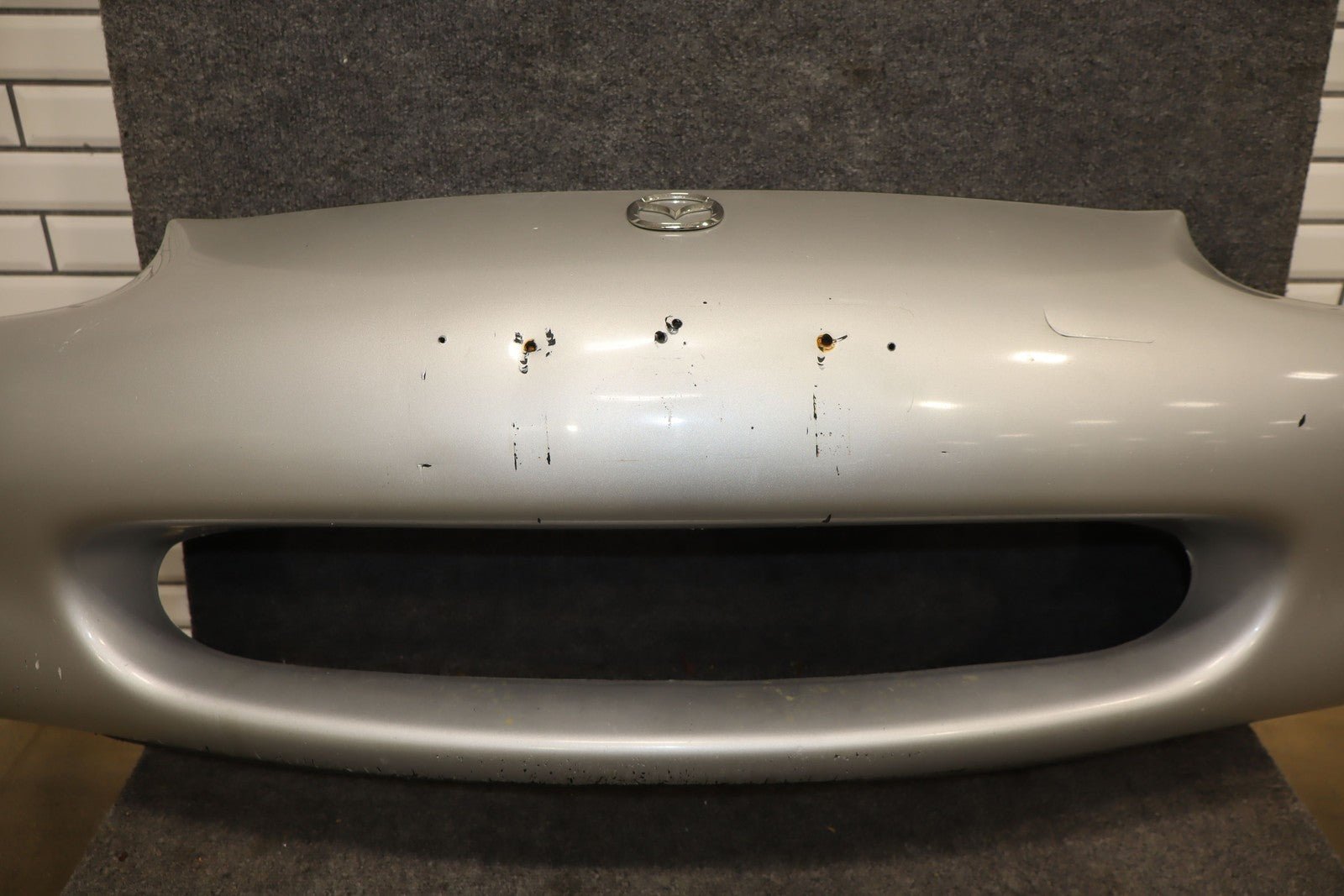 W/o Fog Lamps, Silver (18g), Possible Respray, Heavy Scrapes Across Lip, Plate Mount Holes Drilled, Minor Impact Mark (center),