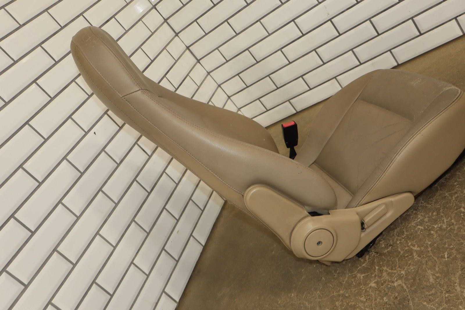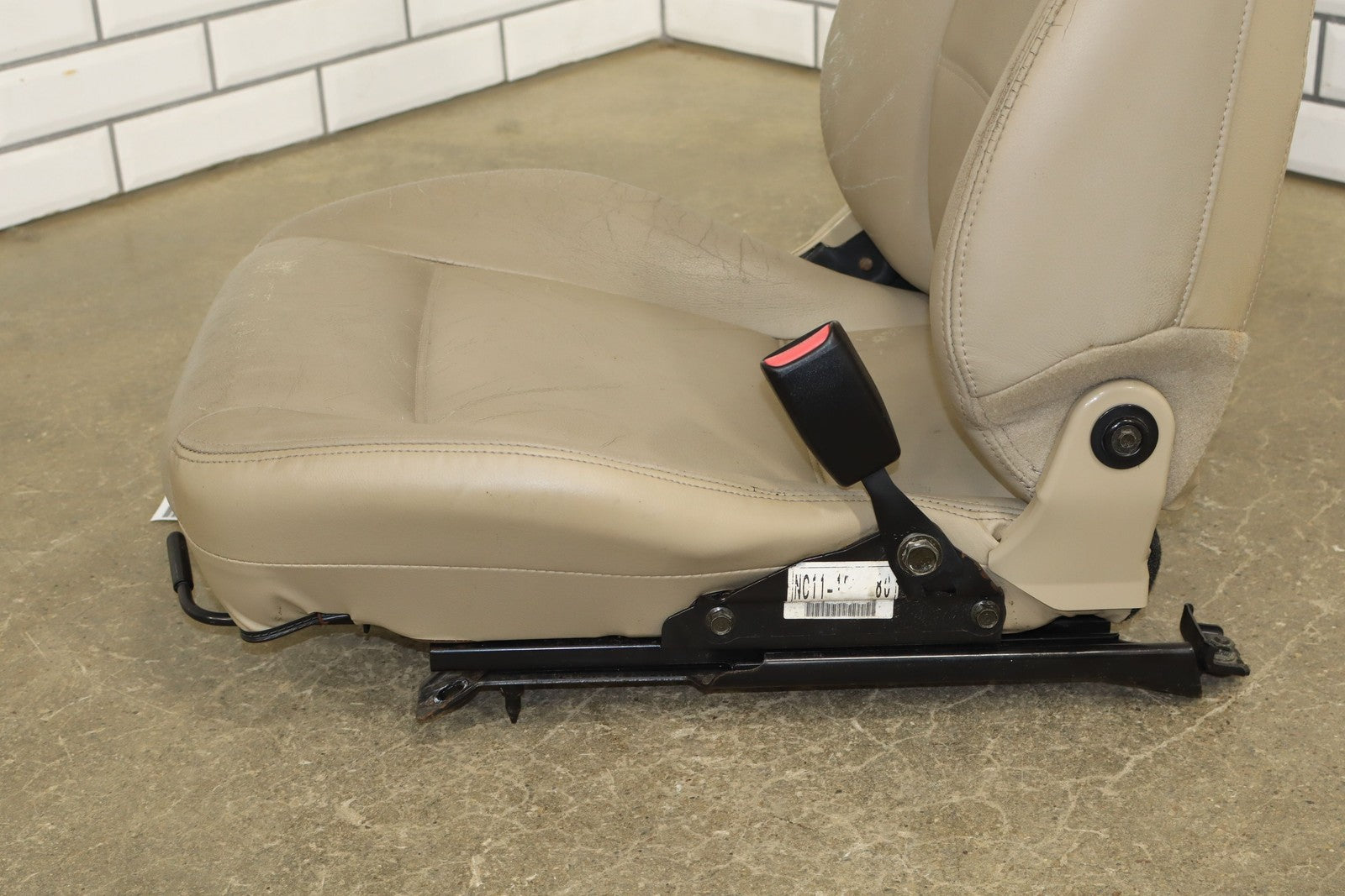 Rh Leather Bucket Seat, Beige (nb6), Mild Wear, Decent Aging/cracking, Manual Adjustment