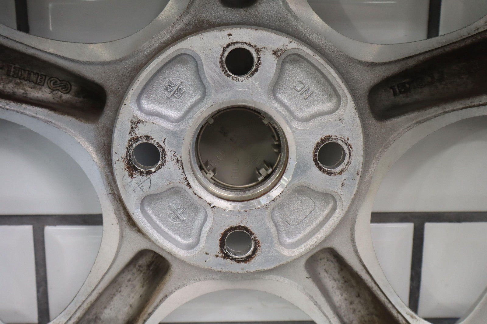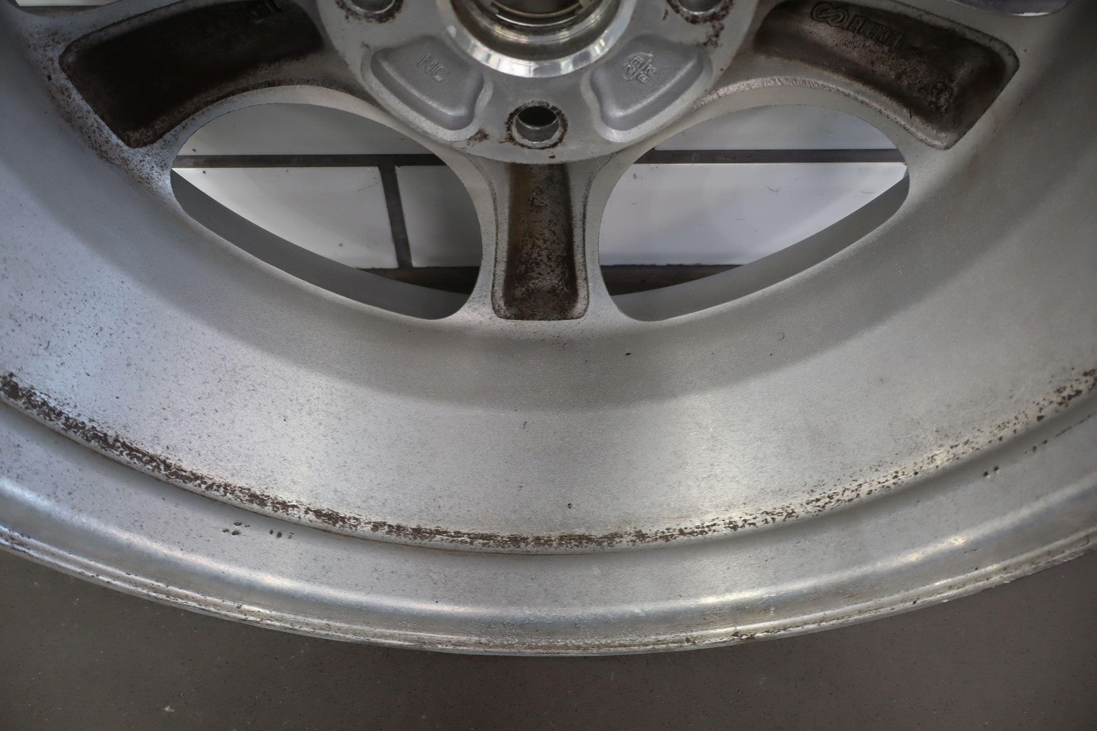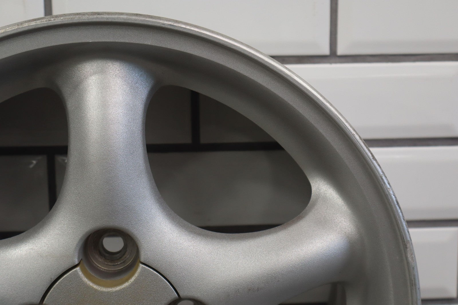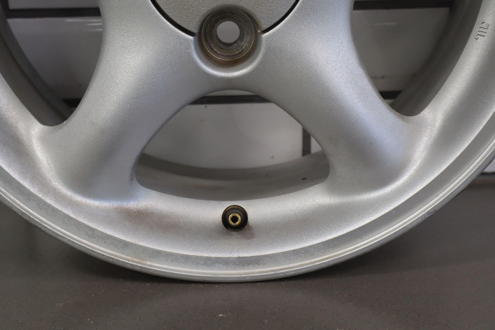 Rh Front, 15x6 Silver 5 Spoke Wheel, Decent Fade Throughout, Minor Curb Rash, Spun True