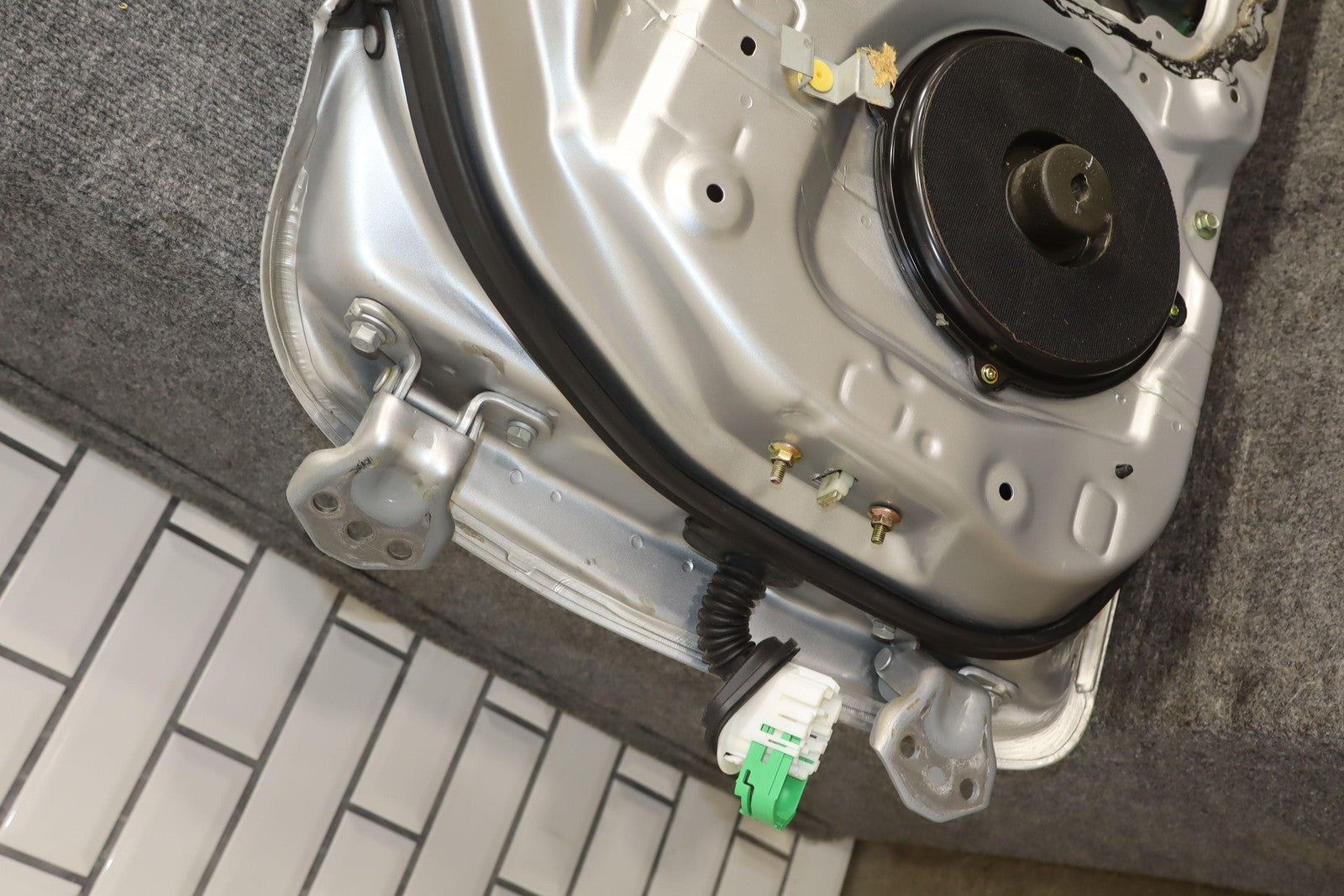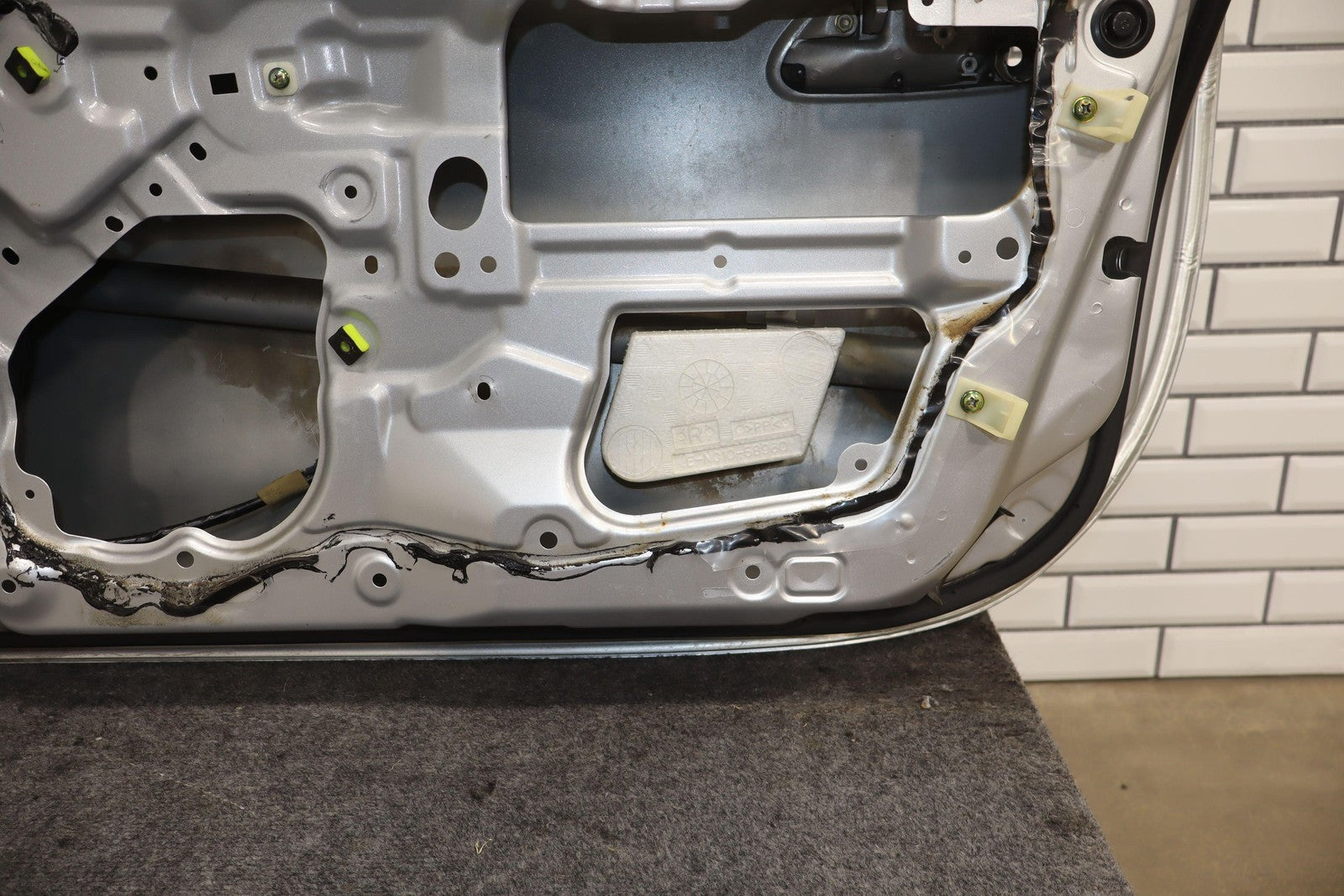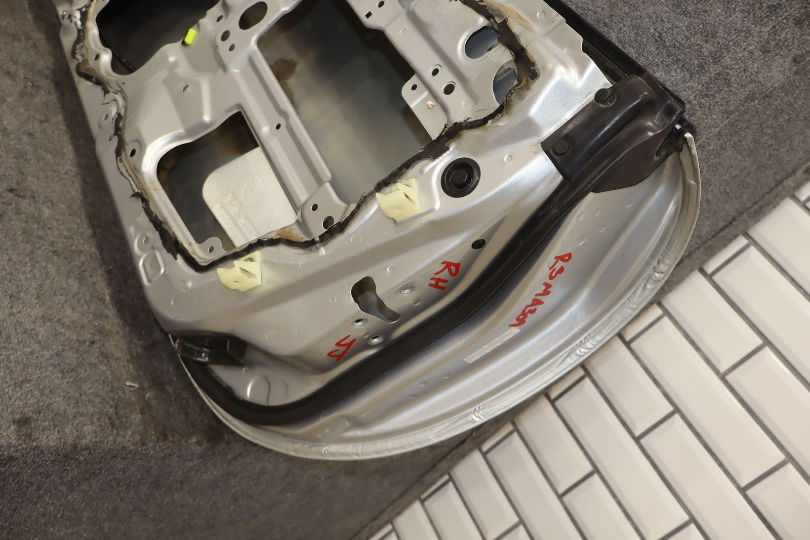 Rh Door Shell, Sunlight Silver Metallic (22v), Sold Less Mirror-trim Panel-glass-regulator, Small Dents Near Handle (red Arrows)