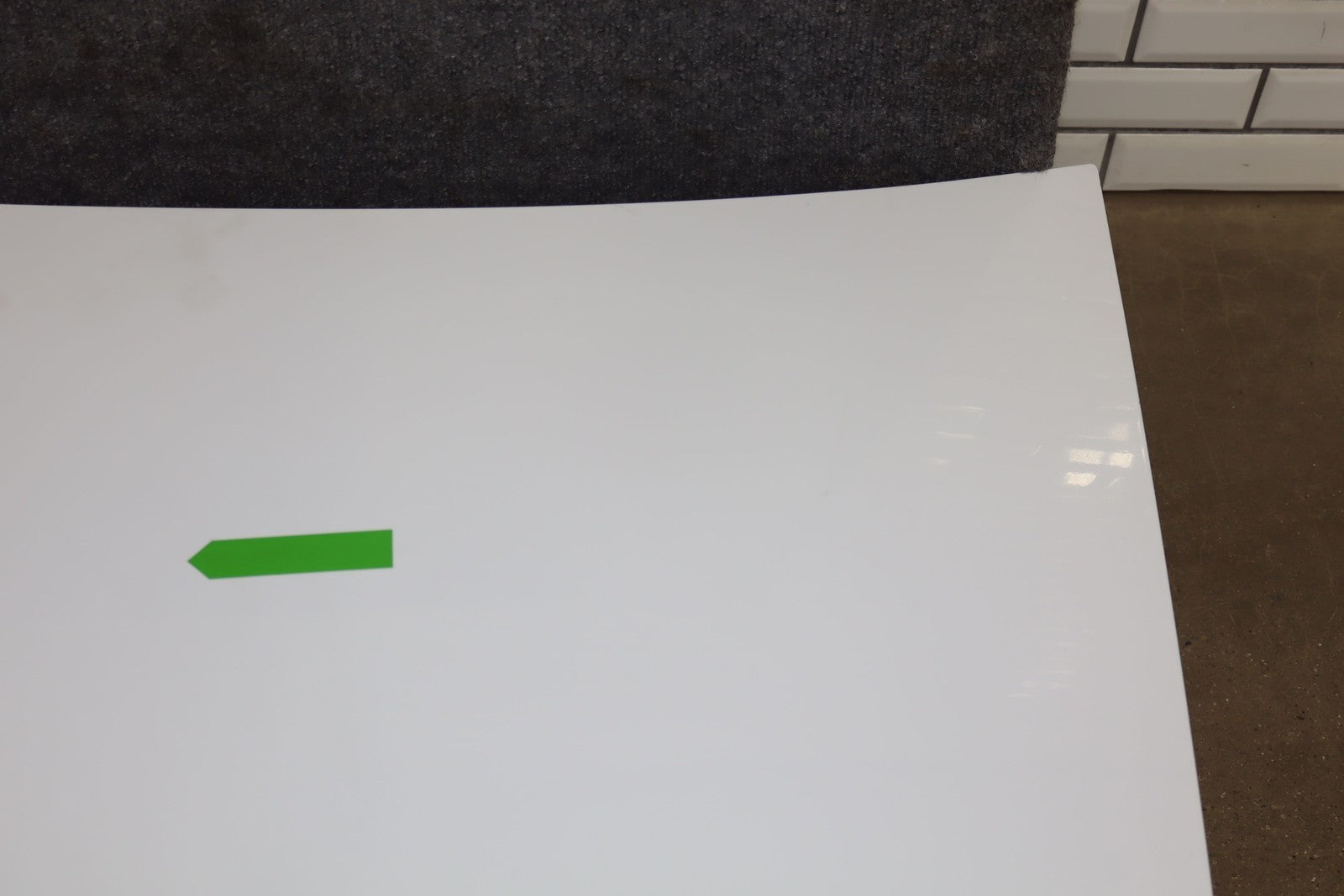 Pure White (a3d), 1 Visible Outward Dent (green), Minor Fade, Light Scuffs/scratches