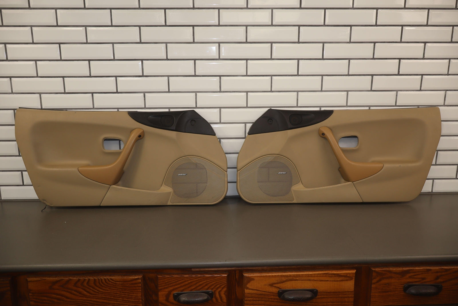 Lh Pair, Black/beige (nb6), 4 Speakers W/bose, Multiple Knicks/indents To Lower Sections, Mild Staining