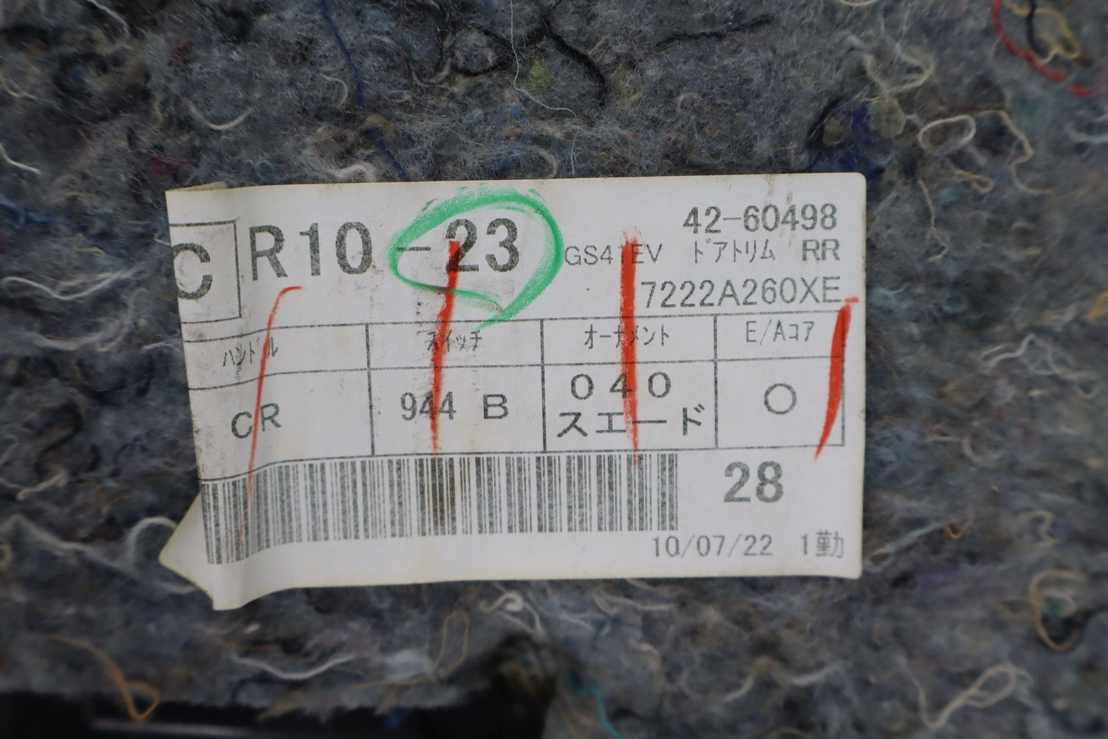 Rh Rear (evolution), Black (40j) W/suede Insert, Includes Window Switch, Mild Scuffs, Light Signs Of Wear