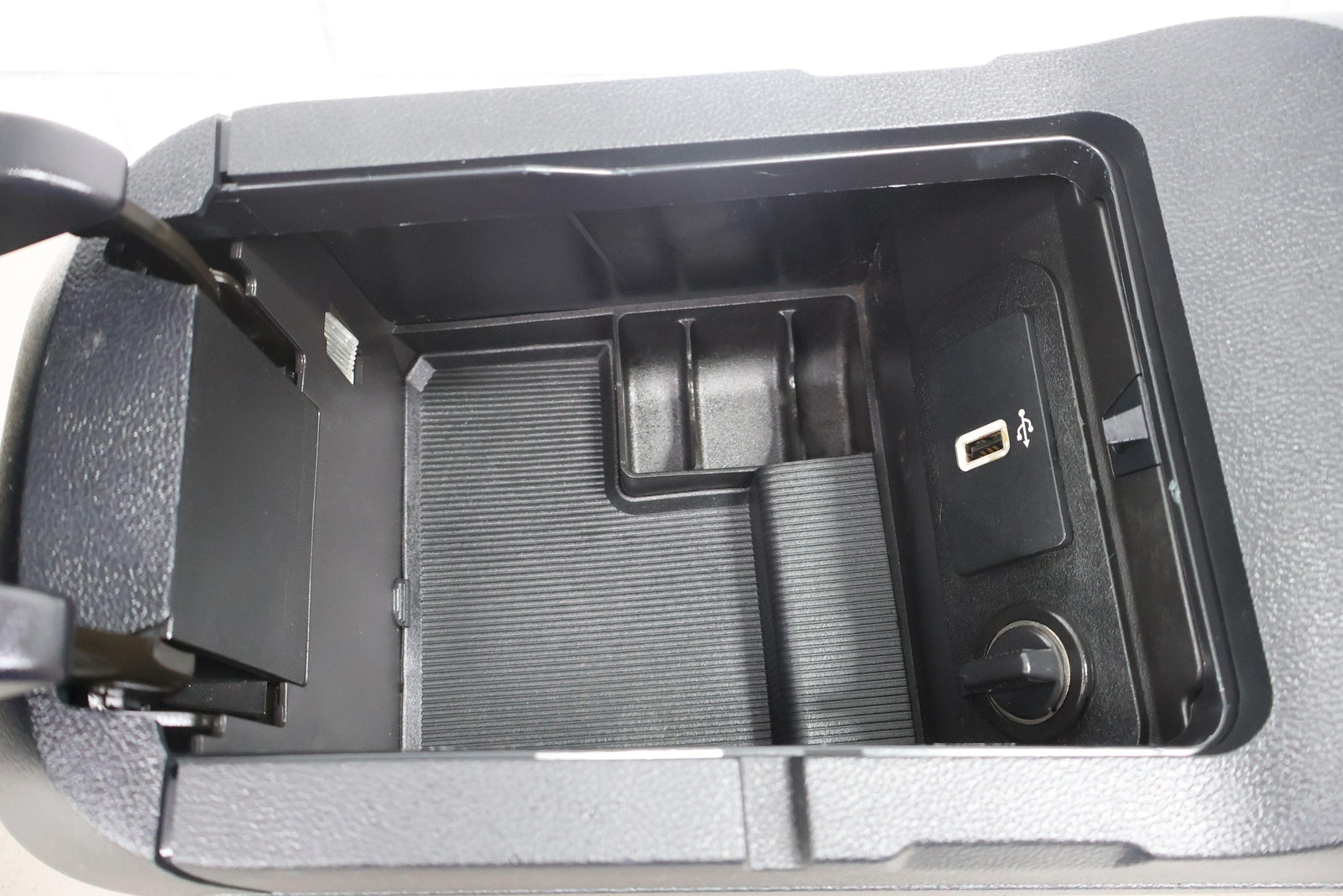 Floor Console, Ebony (41), Ambient Interior Lighting, Electronic Locking Console, Includes Lid, Light Scuffs, Mounted Solid