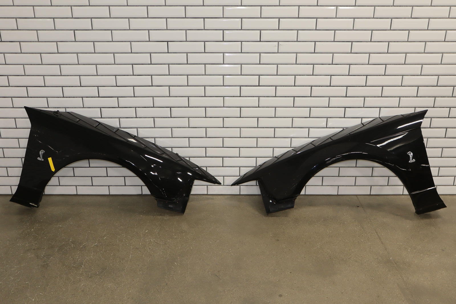 Lh Pair Of Fenders, Black (ua), Cobra Emblems, Touch Up Paint-dents-scratches
